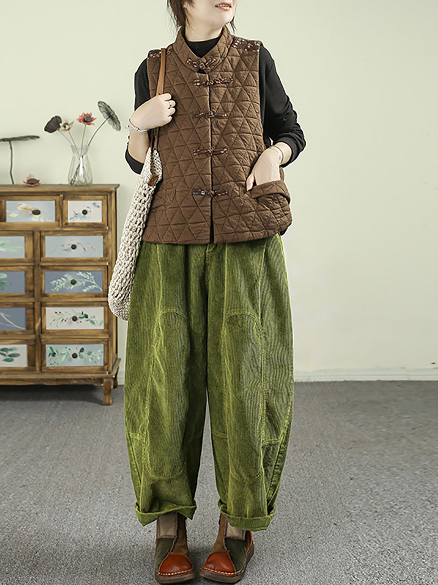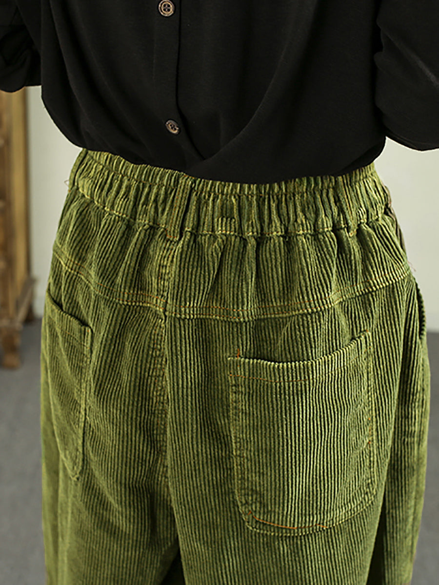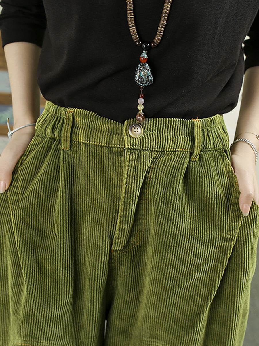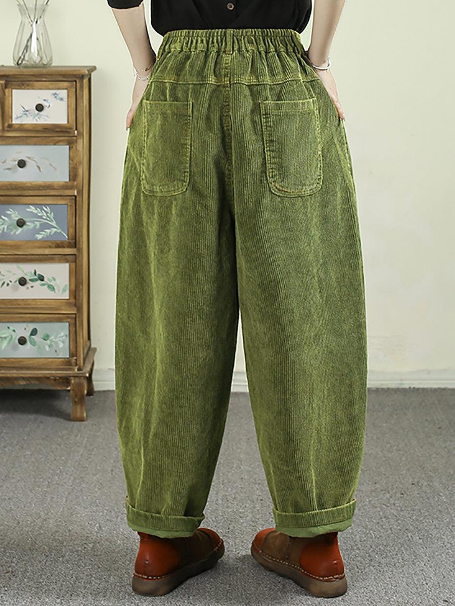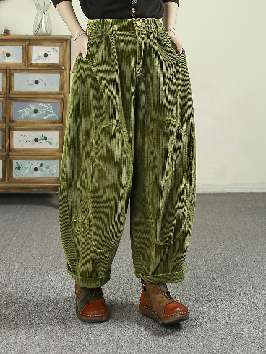 Ženske jesenske retro harem hlače od čistog korduroja u čistoj boji