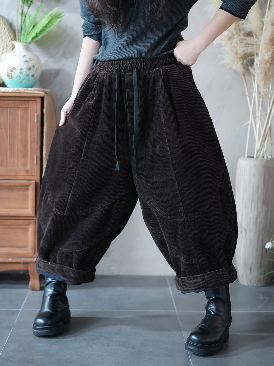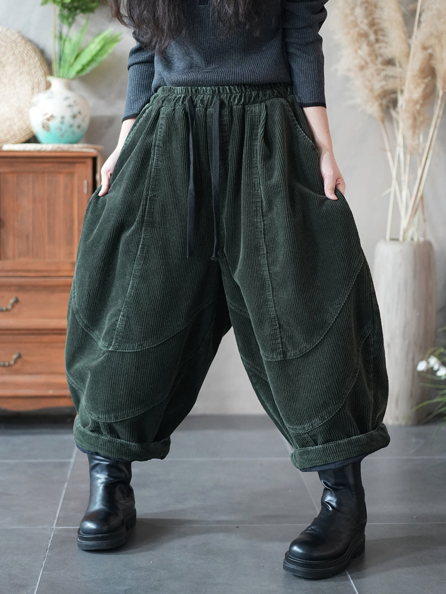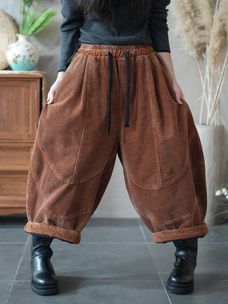 Ženske jesenske retro harem hlače od čistog korduroja u čistoj boji