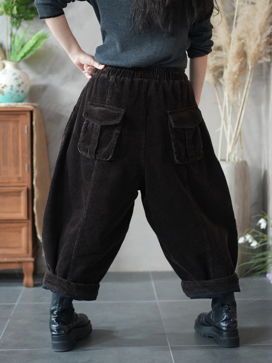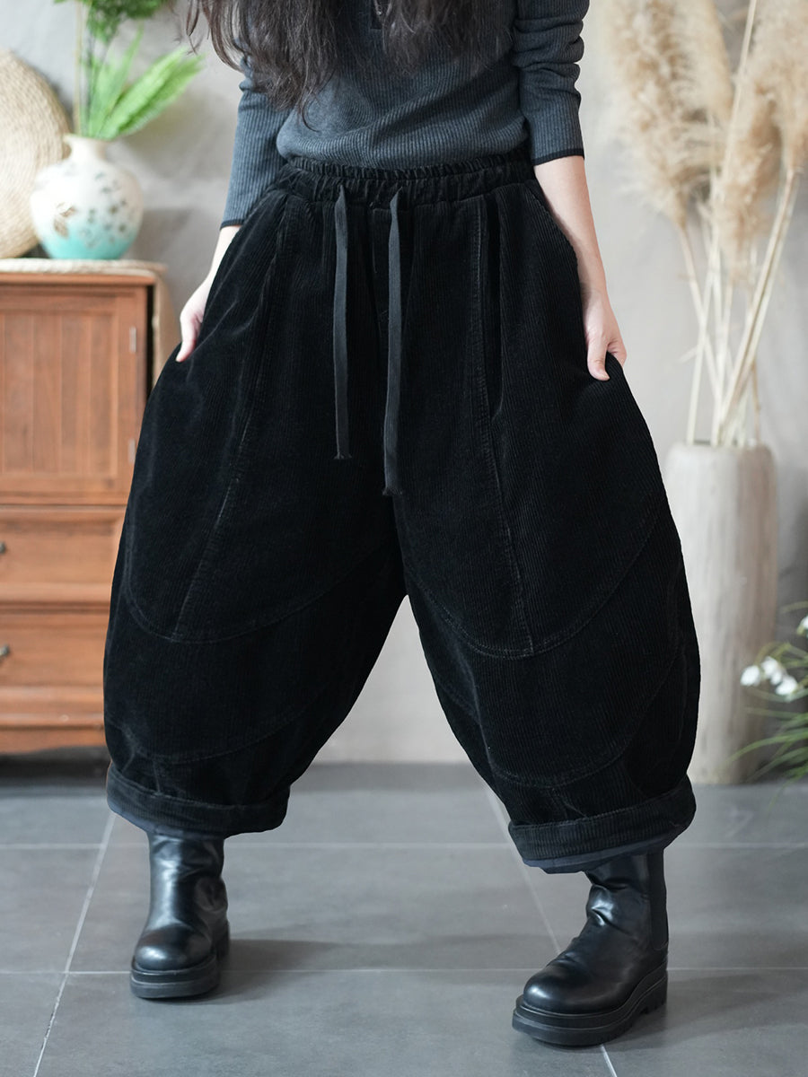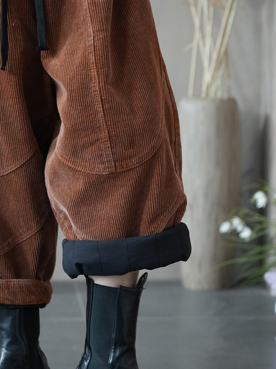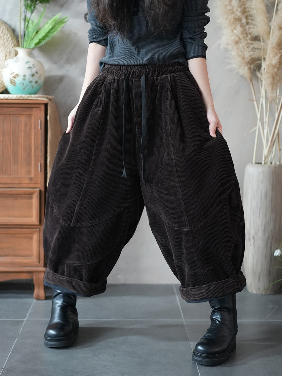 Ženske jesenske retro harem hlače od čistog korduroja u čistoj boji