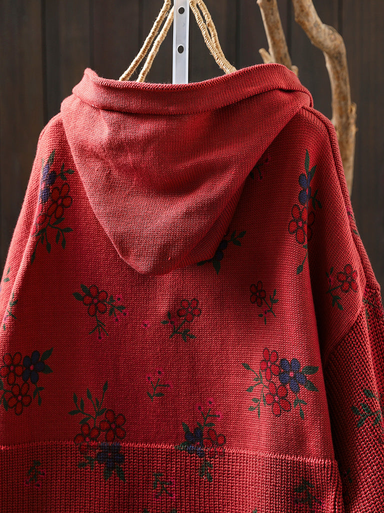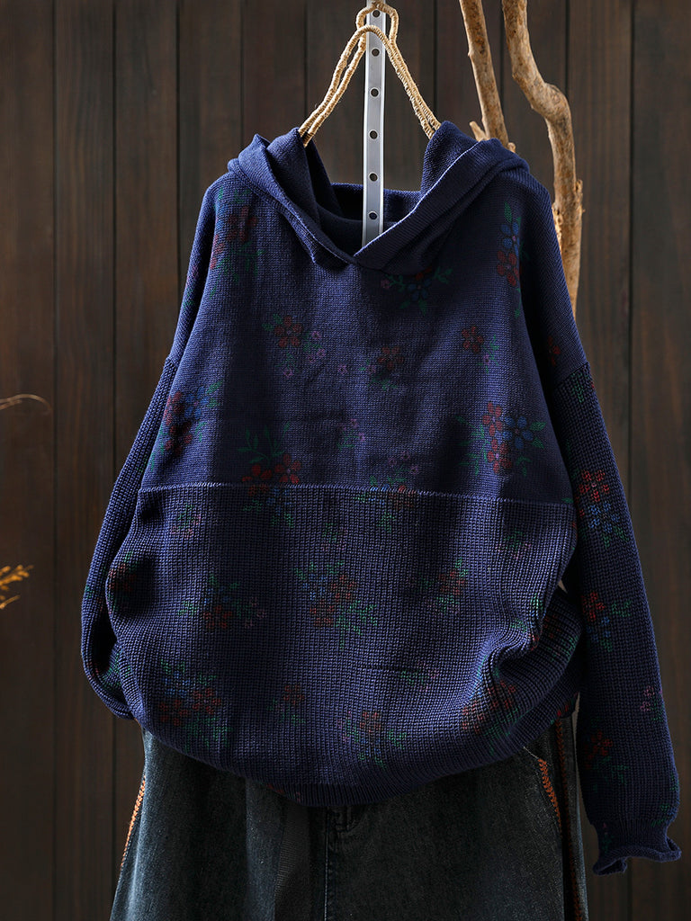 Ženska jesenska vintage cvjetna pletena majica s kapuljačom