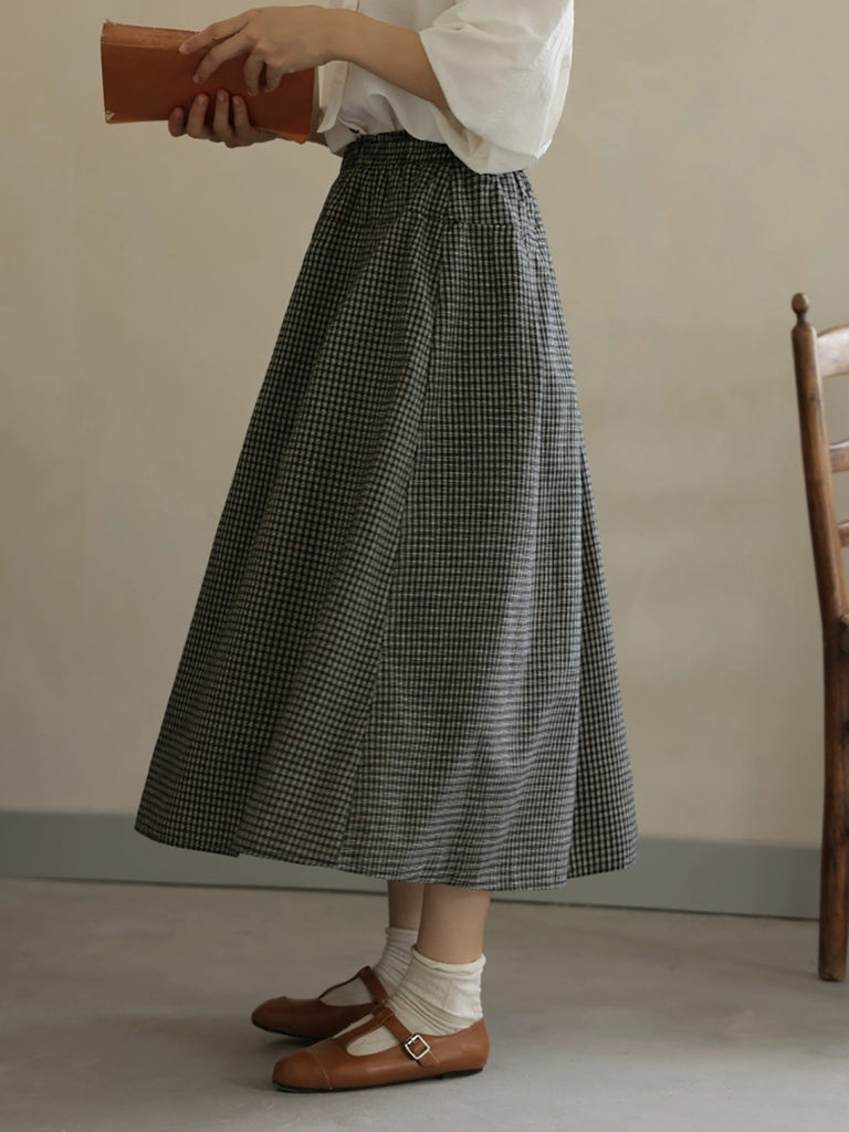 Ženska jesenska vintage rešetkasta A-oblika suknja od 100% pamuka