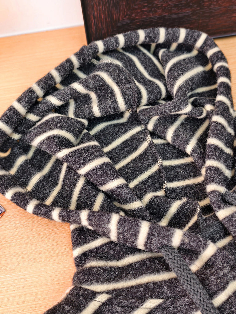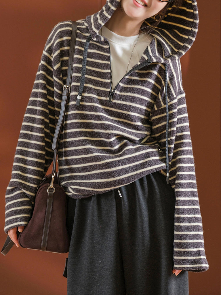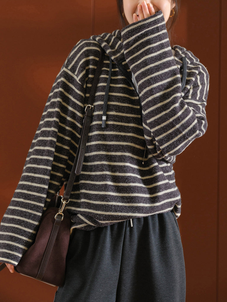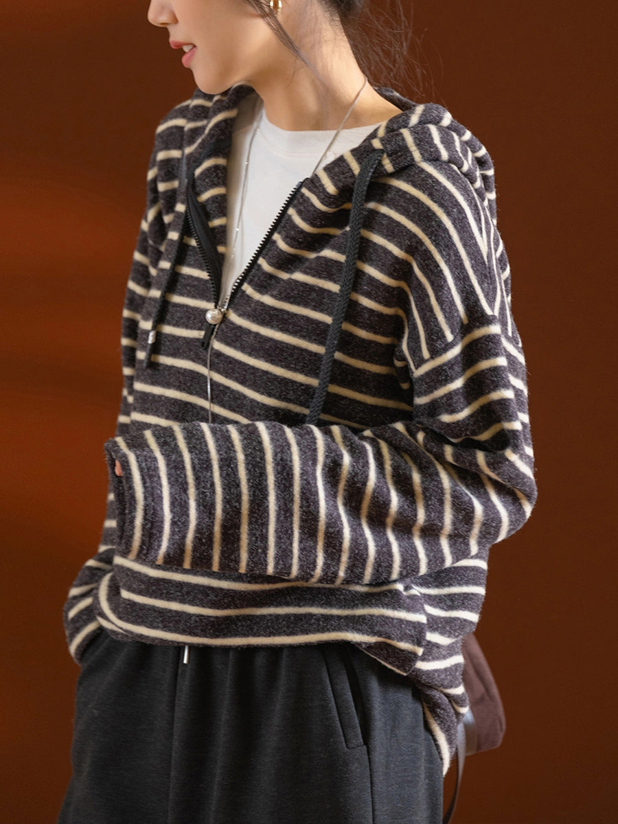 Ženski jesenski vintage prugasti pulover s kapuljačom