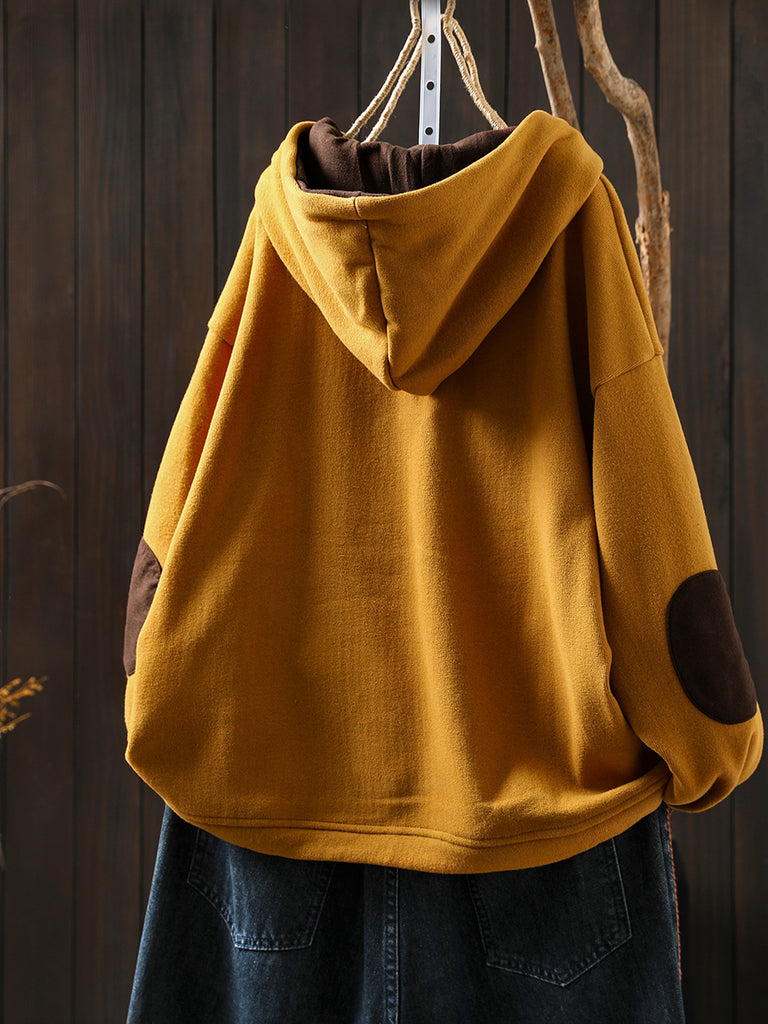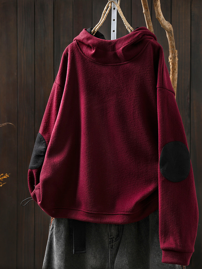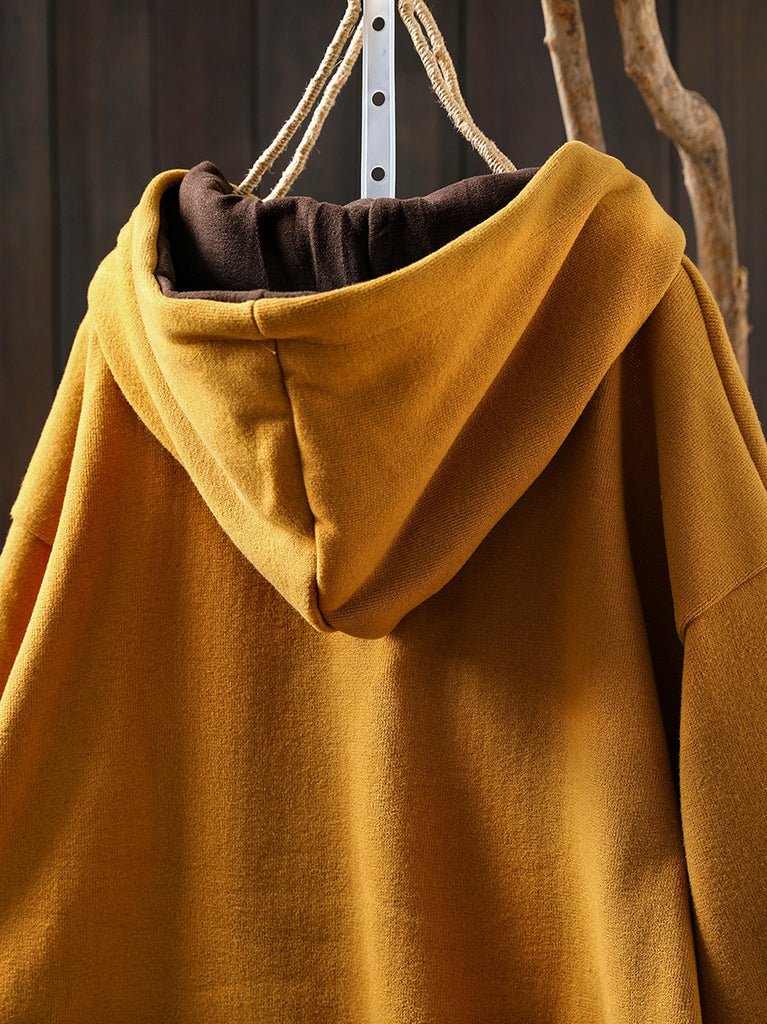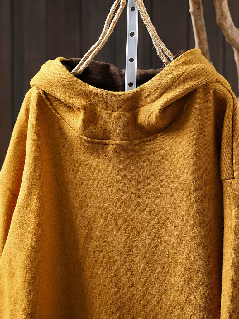 Ženska ležerna jesenska majica s kapuljačom u boji i pamučnom flis podstavom