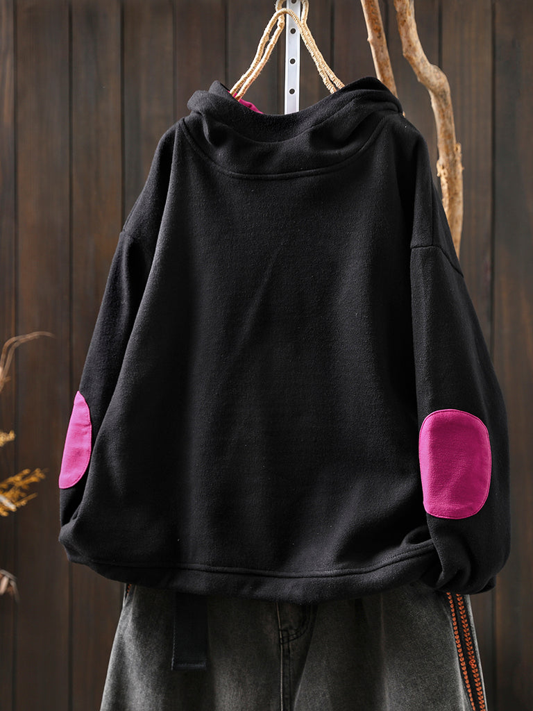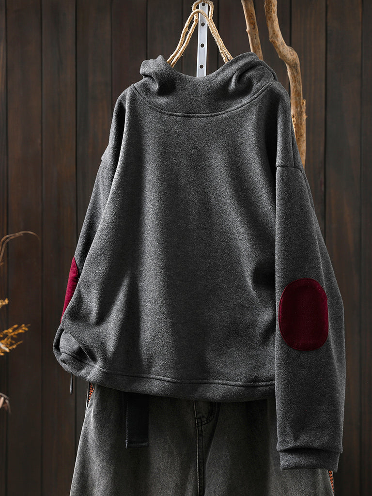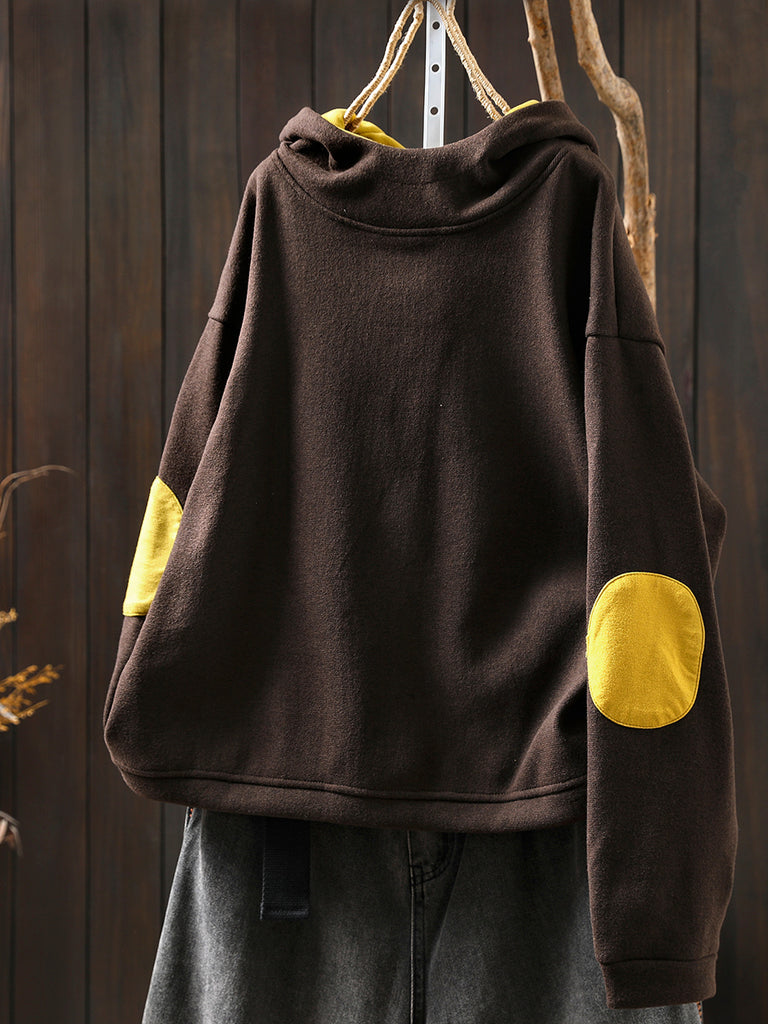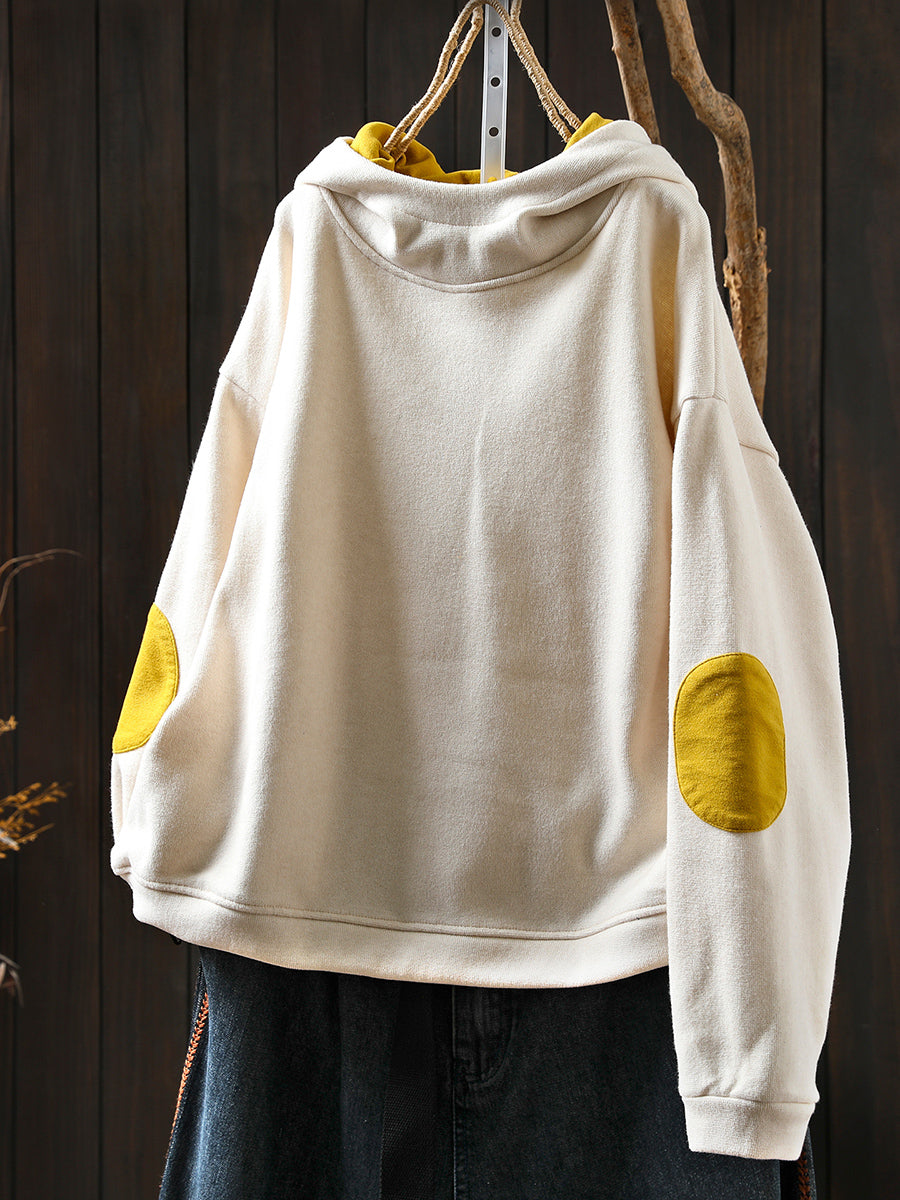 Ženska ležerna jesenska majica s kapuljačom u boji i pamučnom flis podstavom