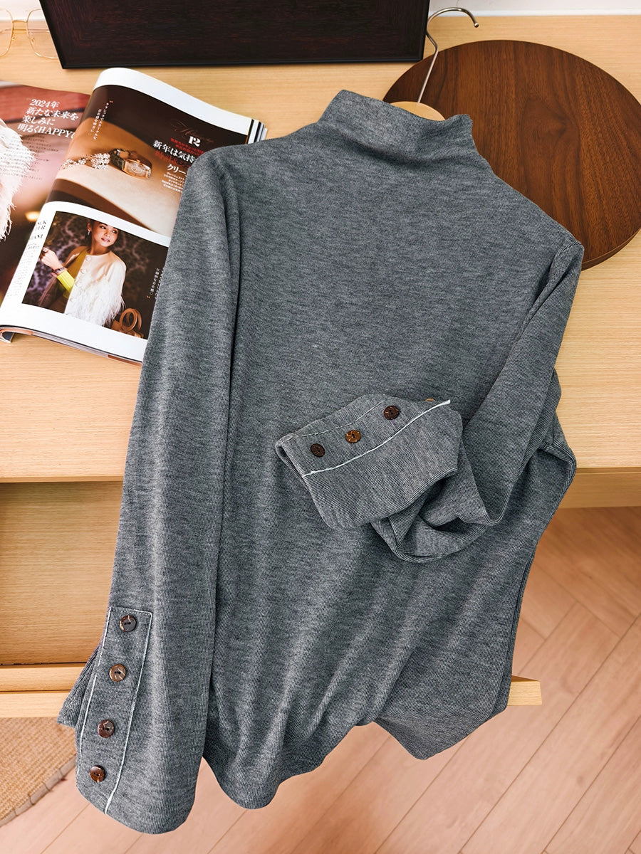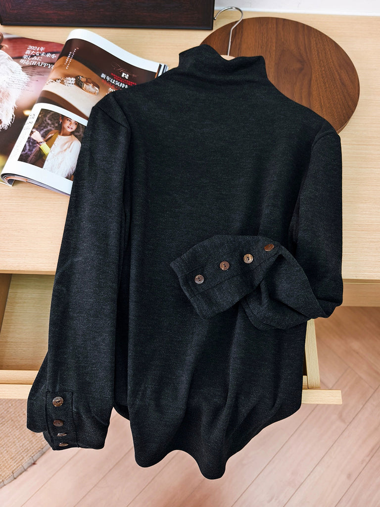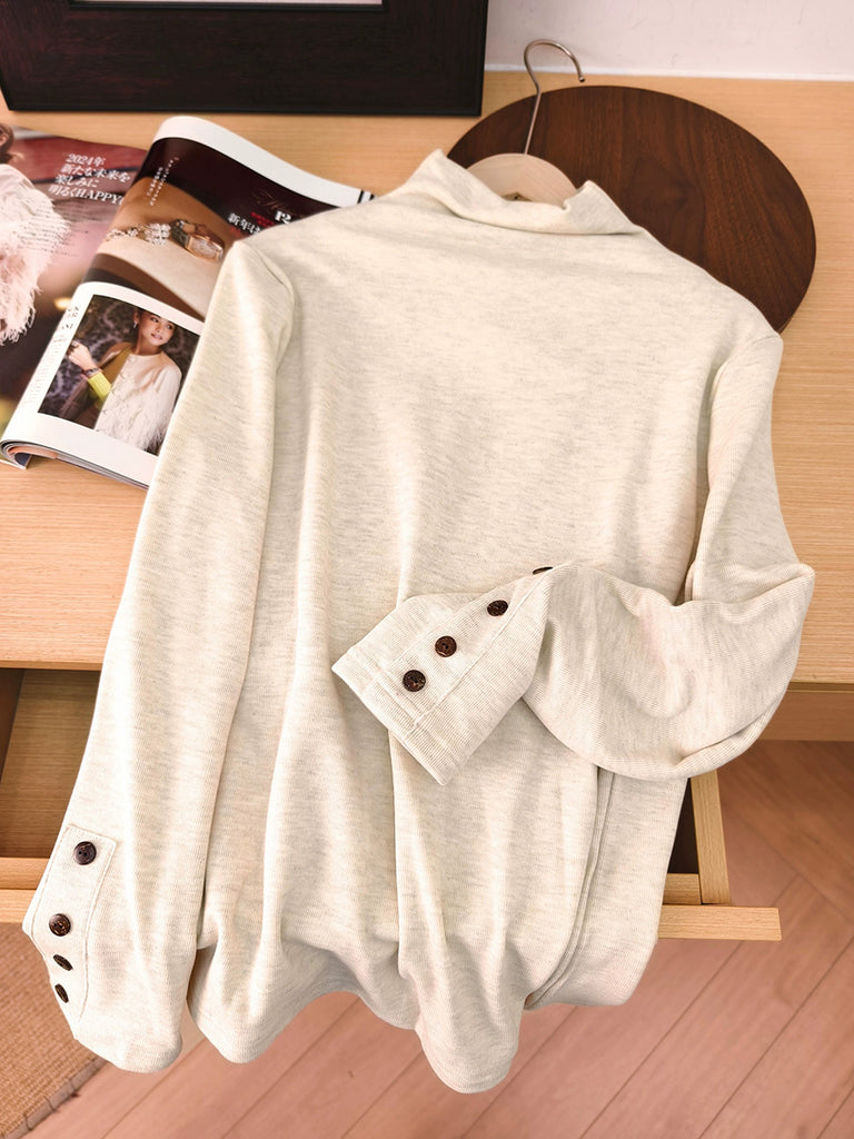 Ženska ležerna jesenska pamučna bluza s ovratnikom u čistoj boji