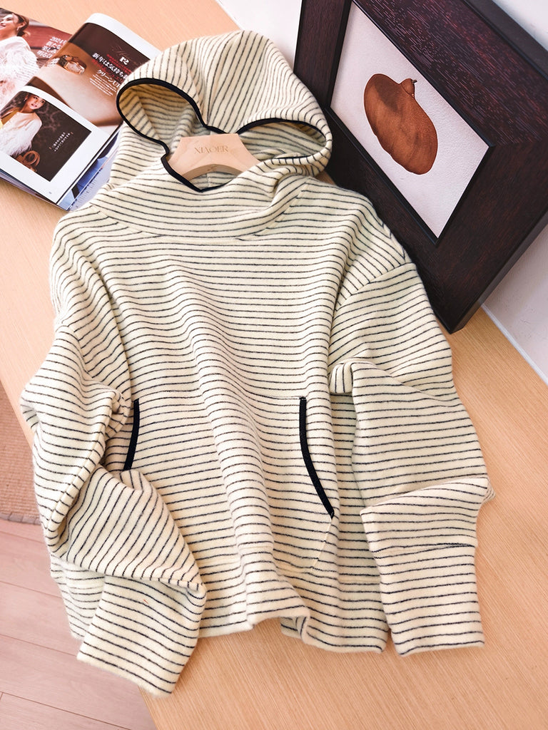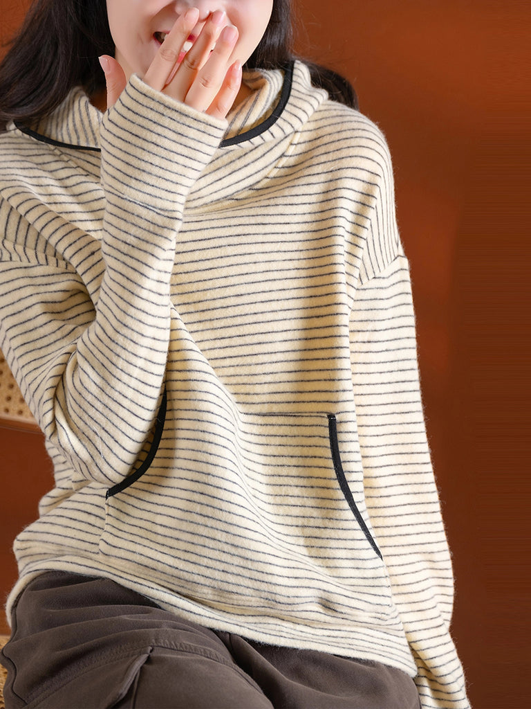 Ženska ležerna jesenska prugasta majica s džepom i mekanom majicom