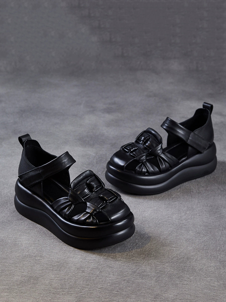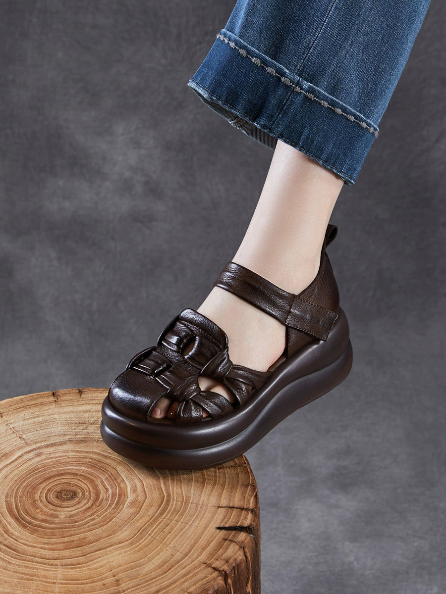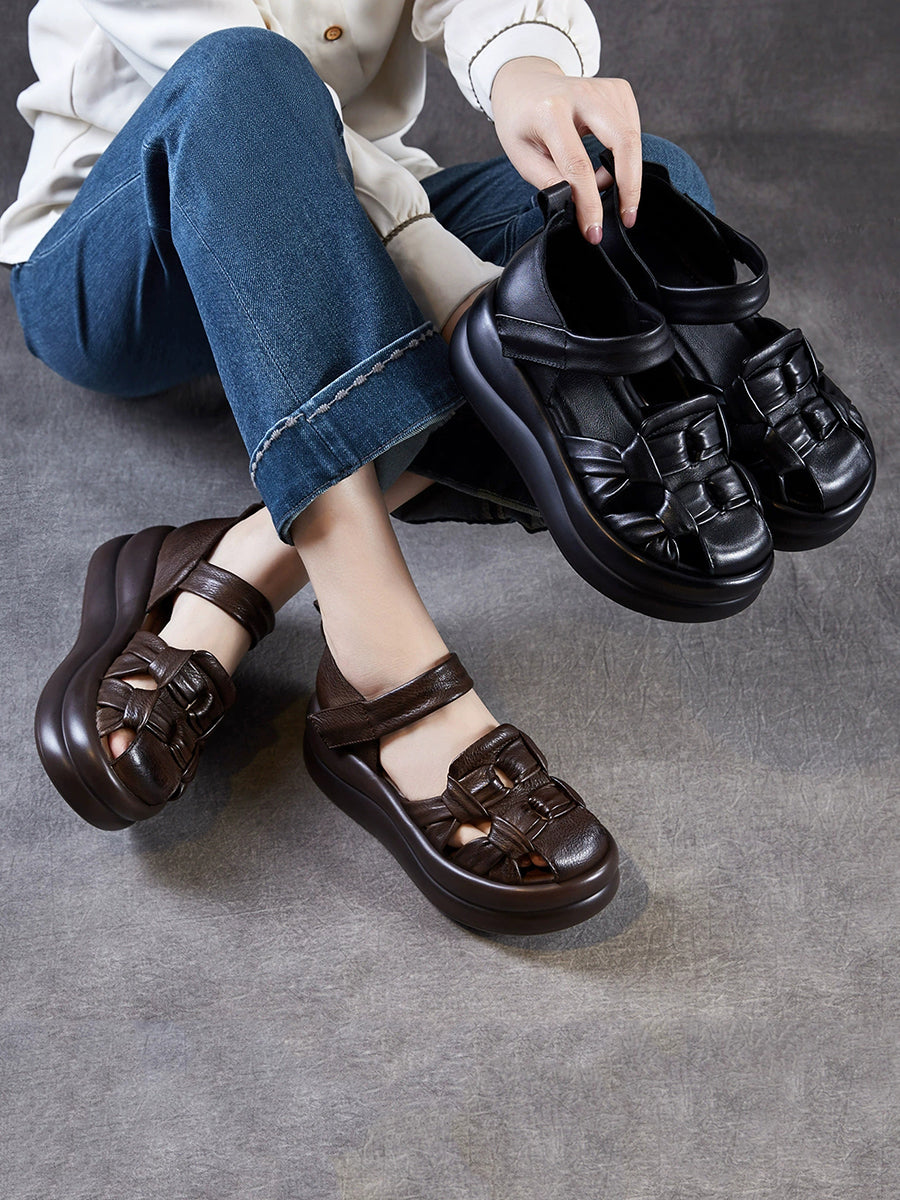 Ženske ležerne sandale od prave kože na platformi