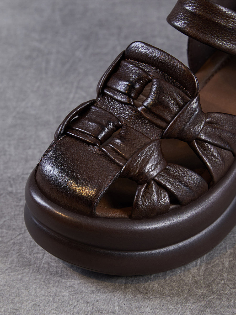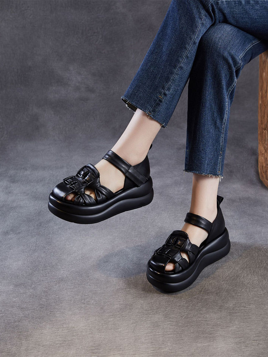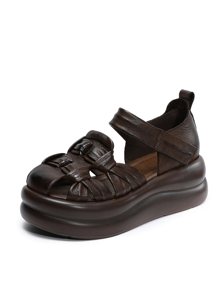 Ženske ležerne sandale od prave kože na platformi
