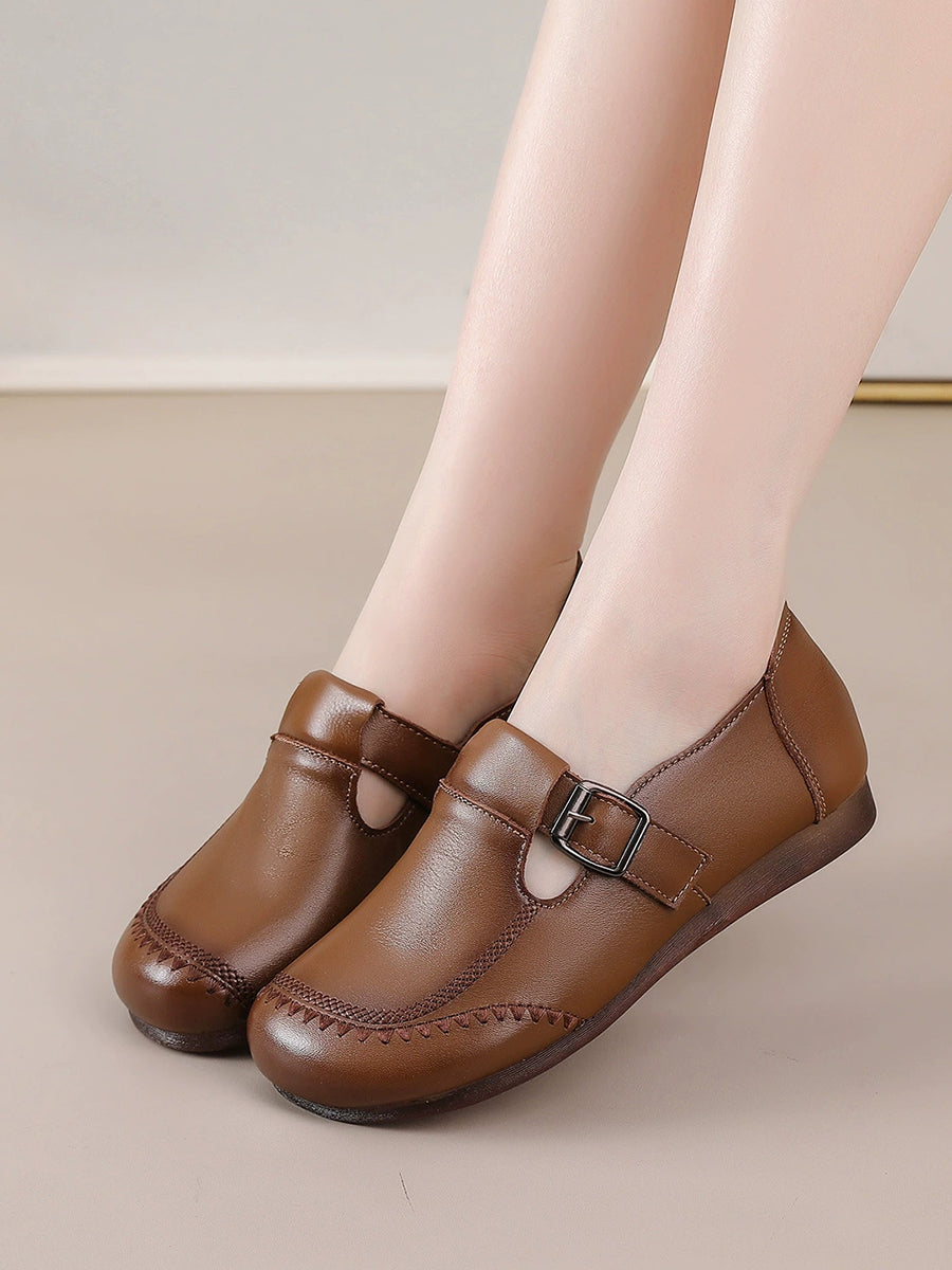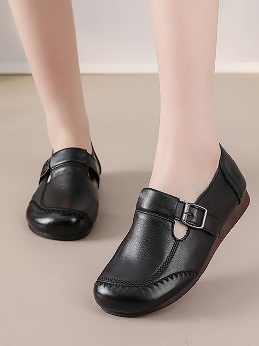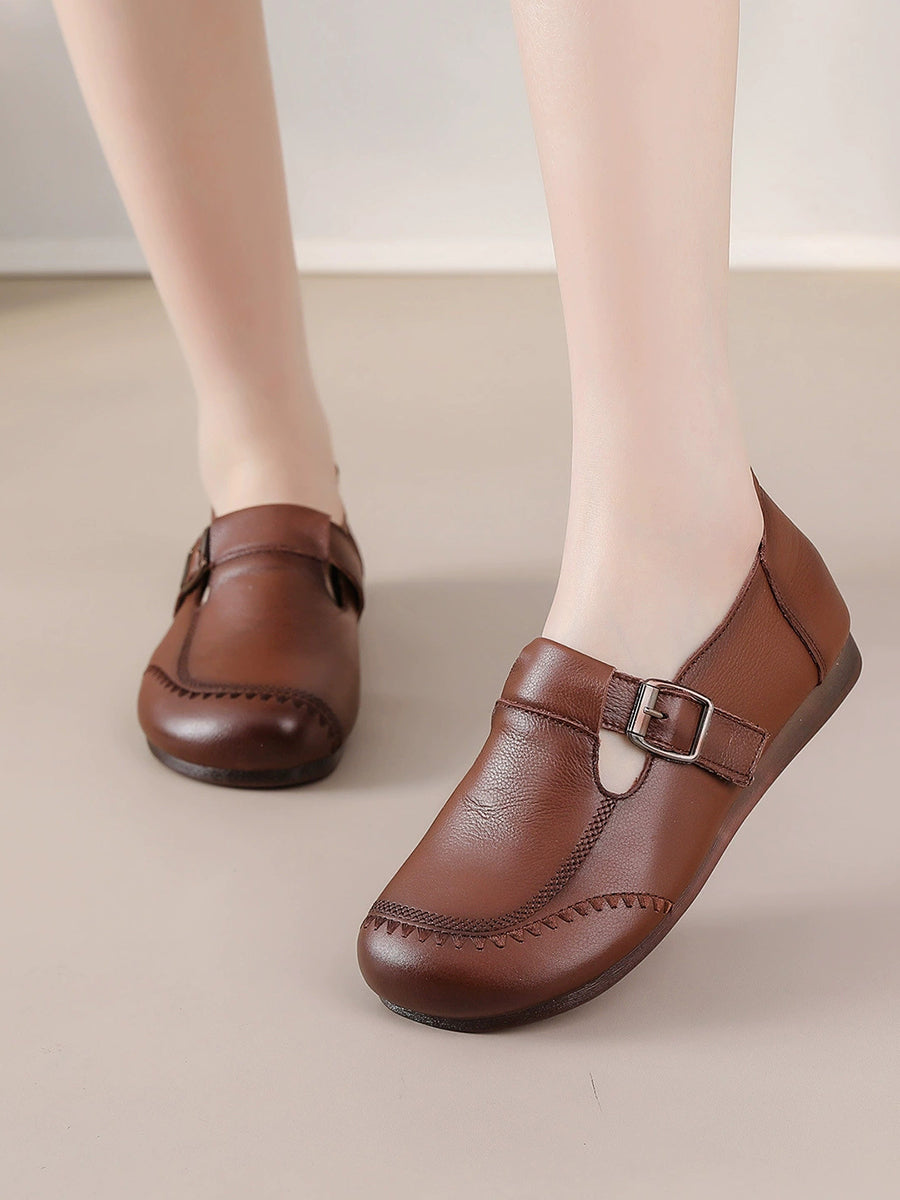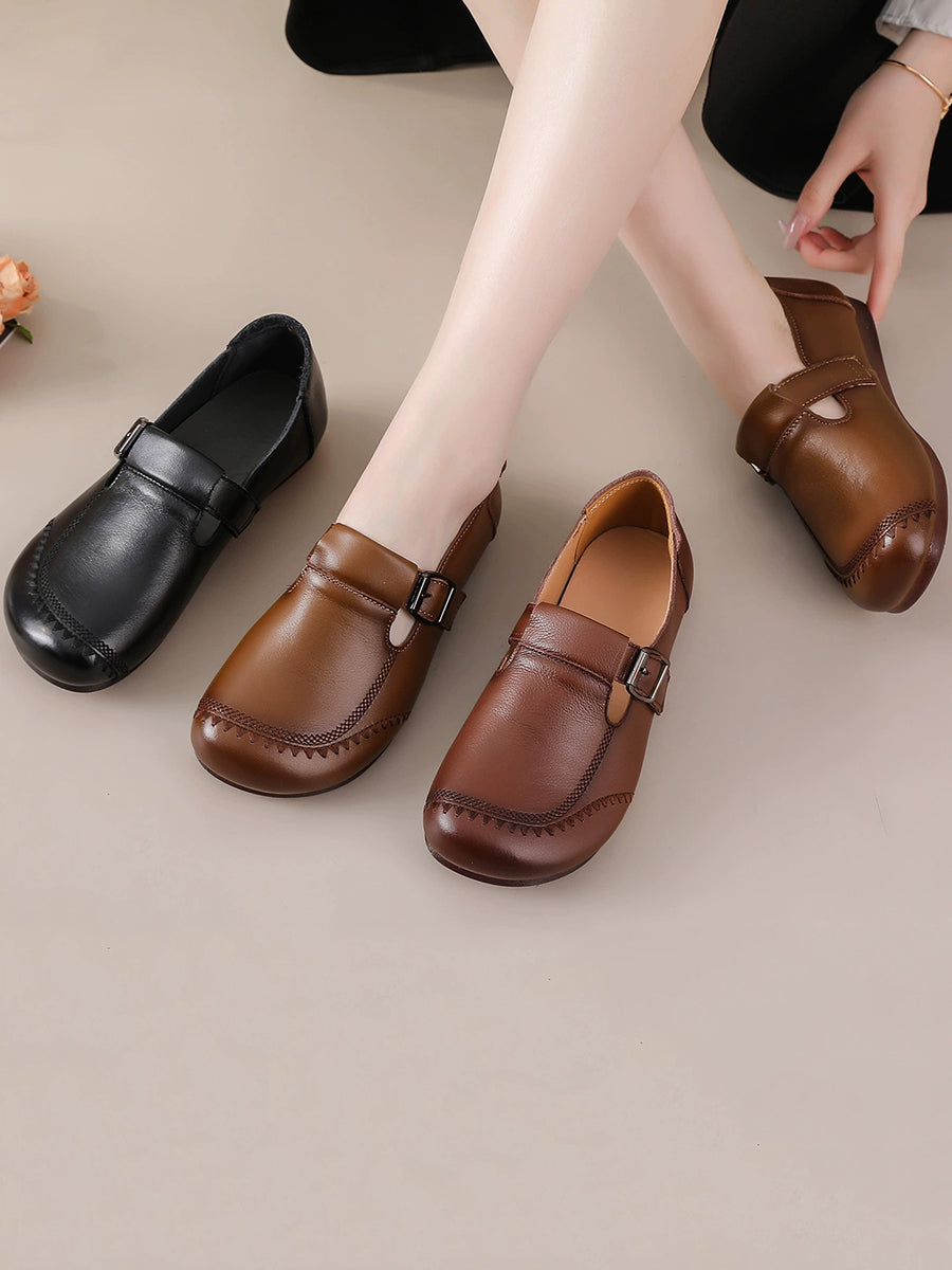 Ženske ležerne ravne cipele od prave kože u čistoj boji