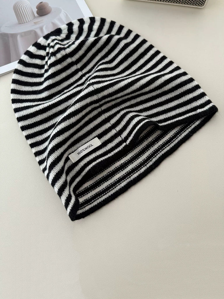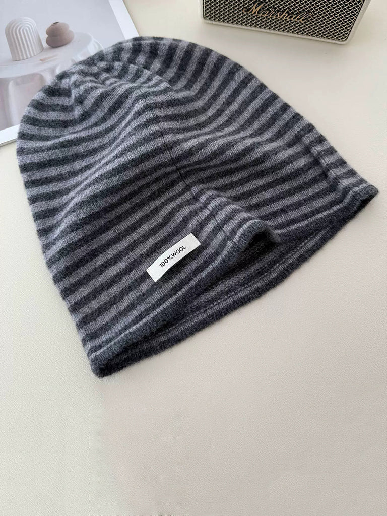 Ženska ležerna prugasta pletena kapa od 100% vune