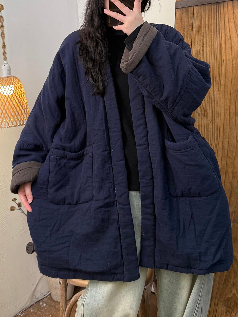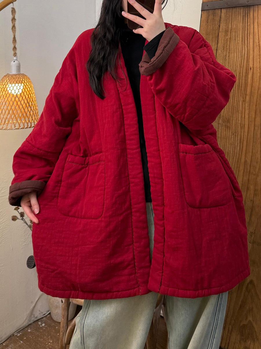Ženski ležerni zimski kaput s V-izrezom u čistoj boji