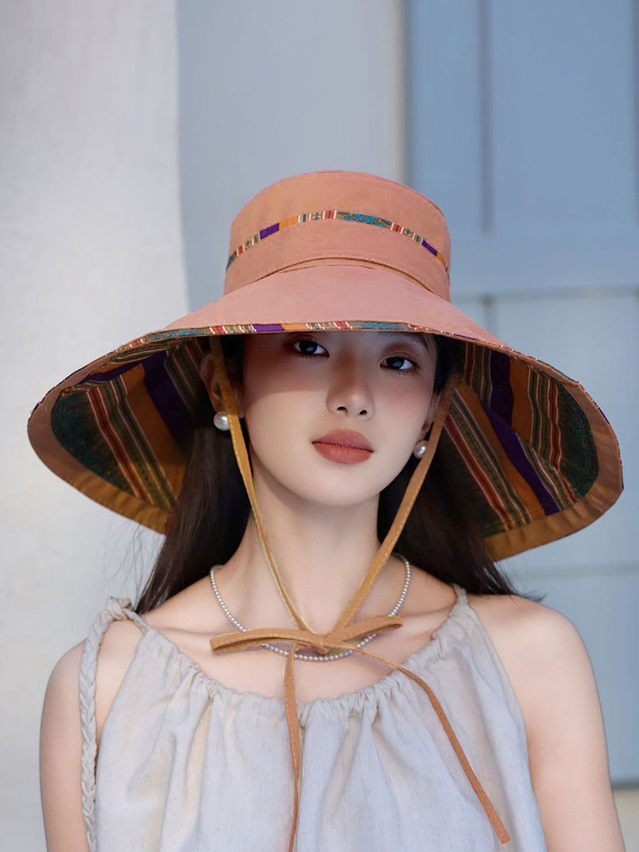 Ženska kapa otporna na sunce s etničkim prugama u boji i remenom