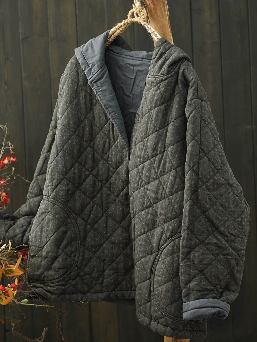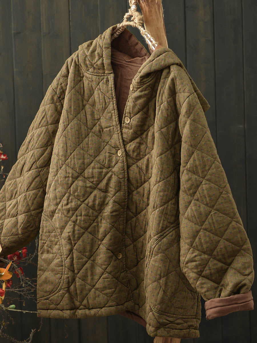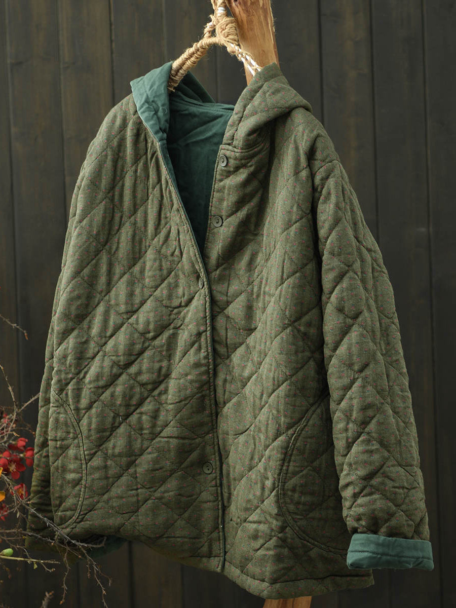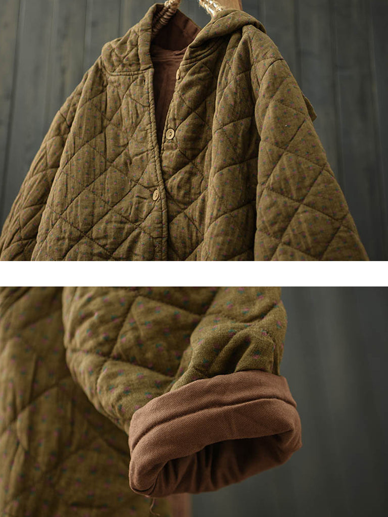 Ženski retro pamučni kaput s kapuljačom u čistoj boji