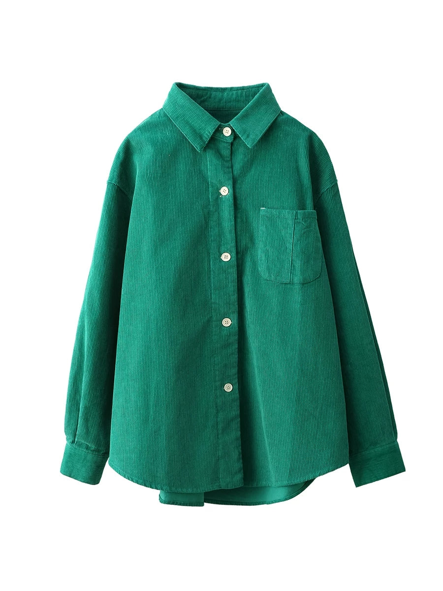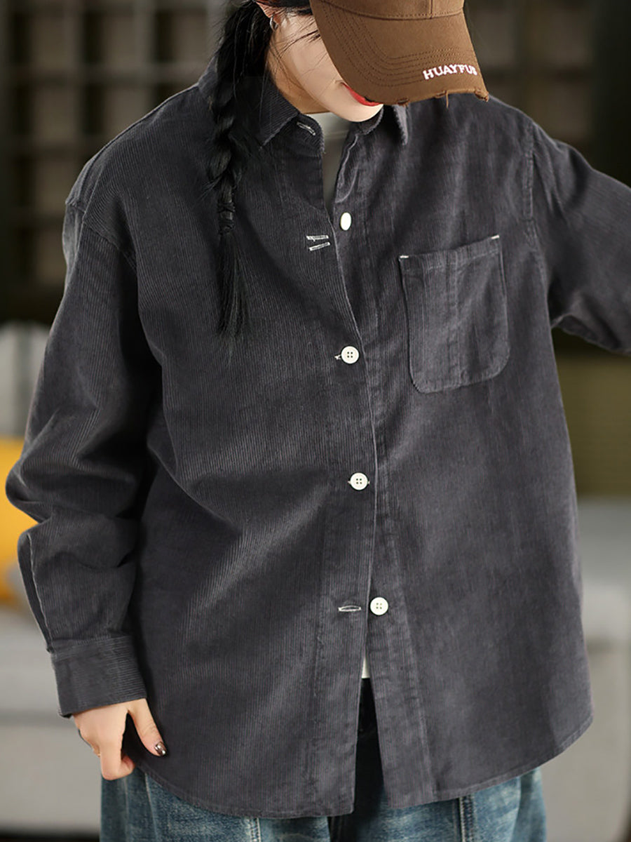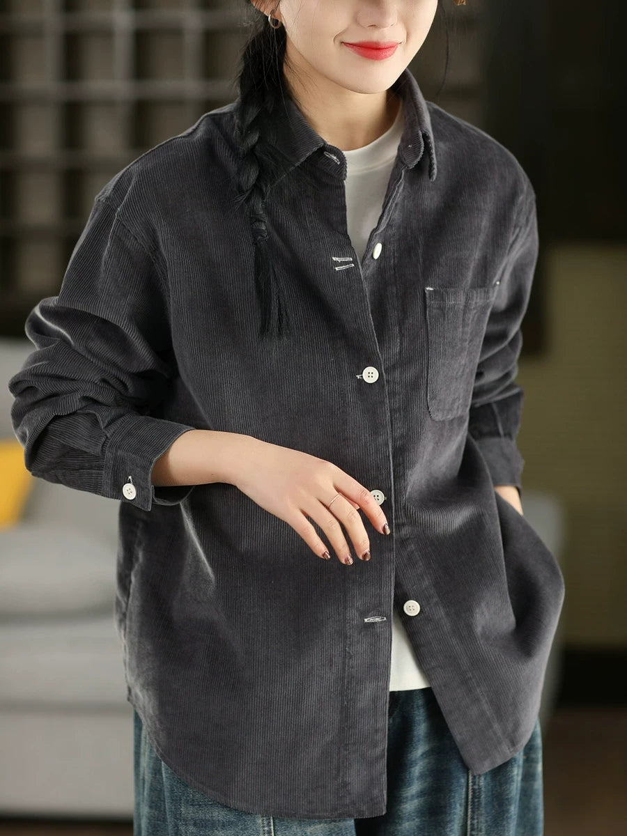 Ženska retro proljetna košulja od korduroja s ovratnikom u čistoj boji