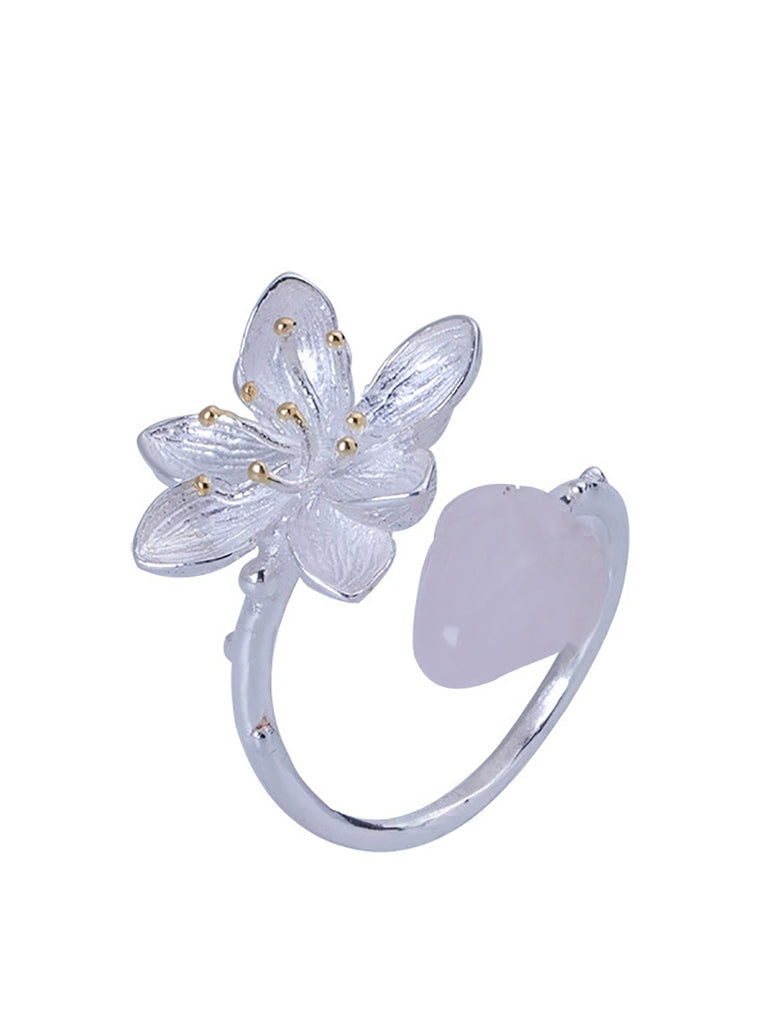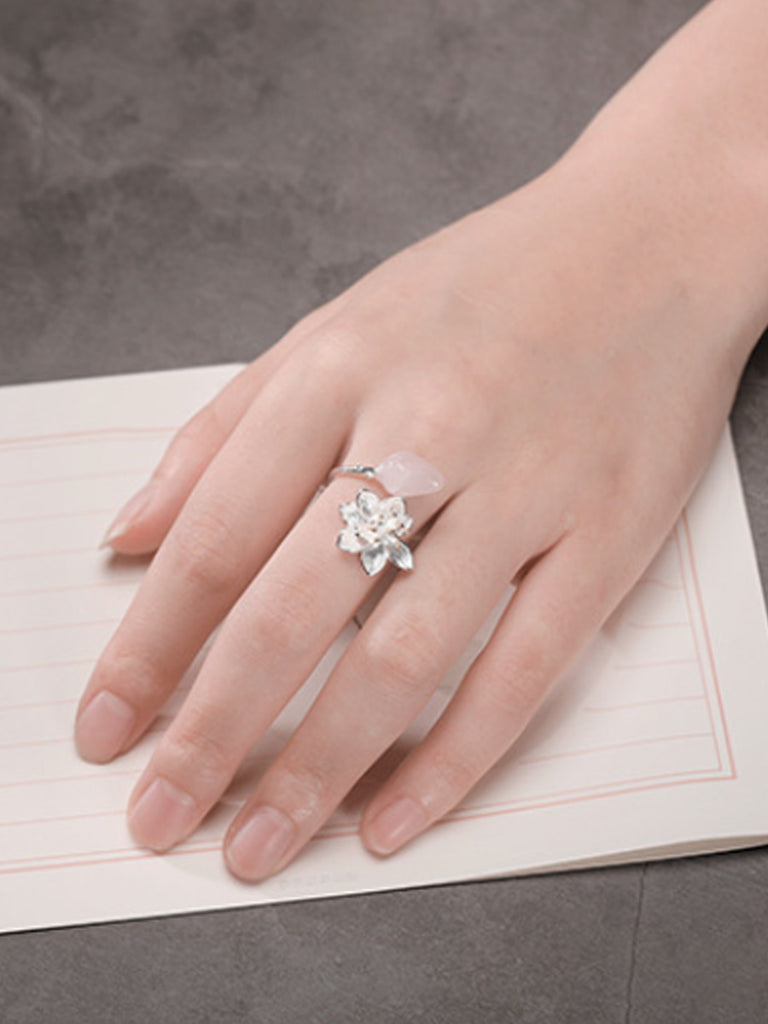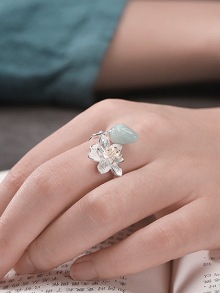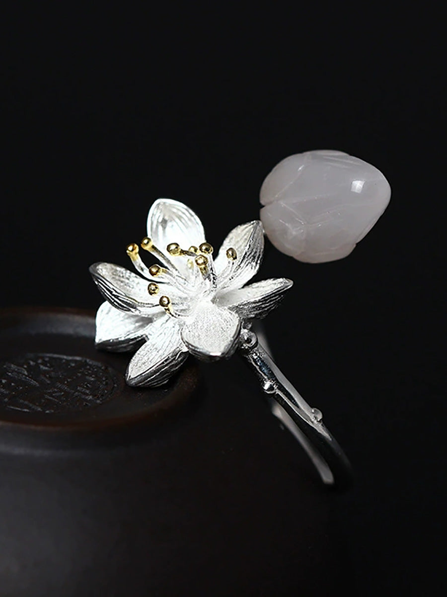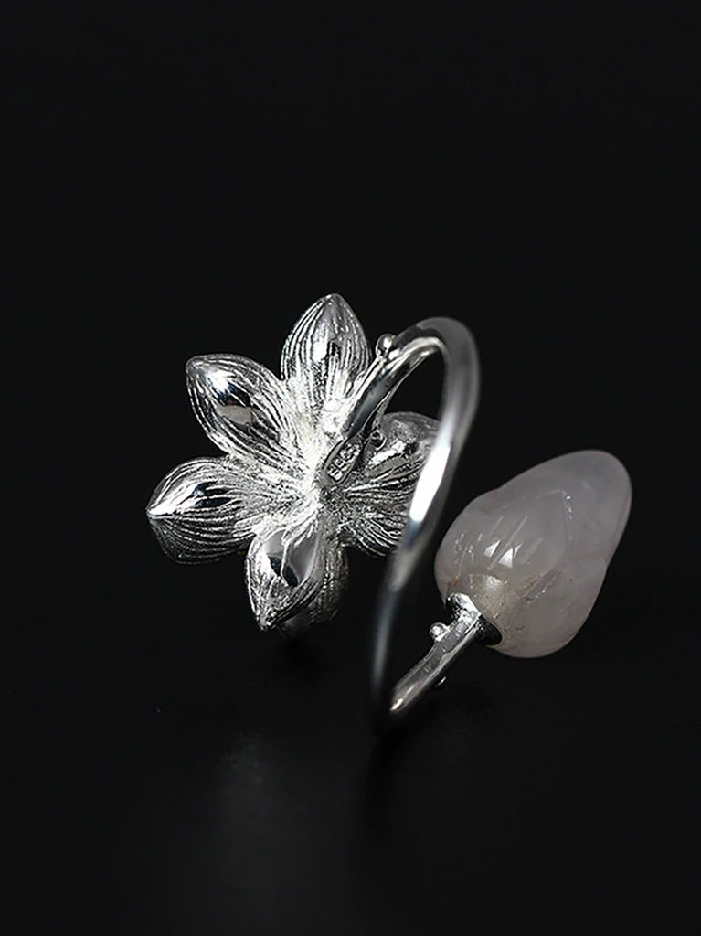 Ženski podesivi prsten od srebrnog lotosa i žada S925