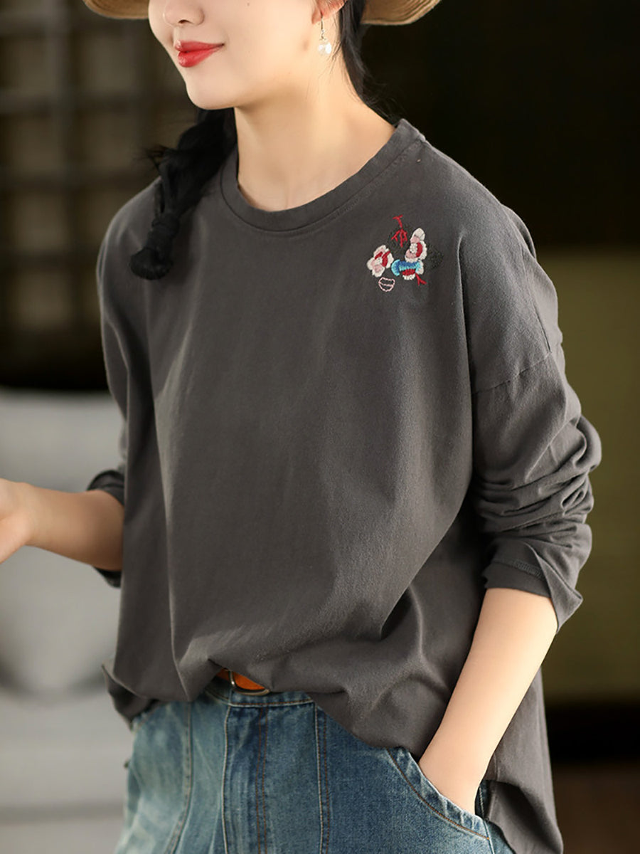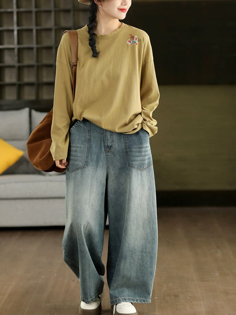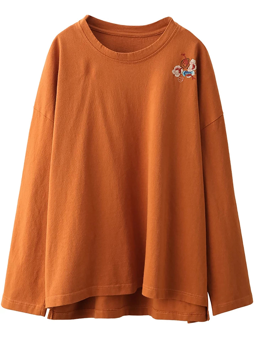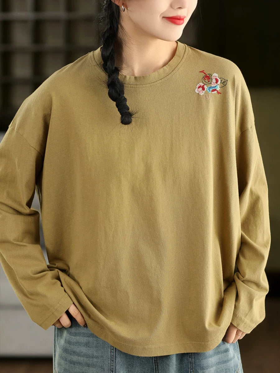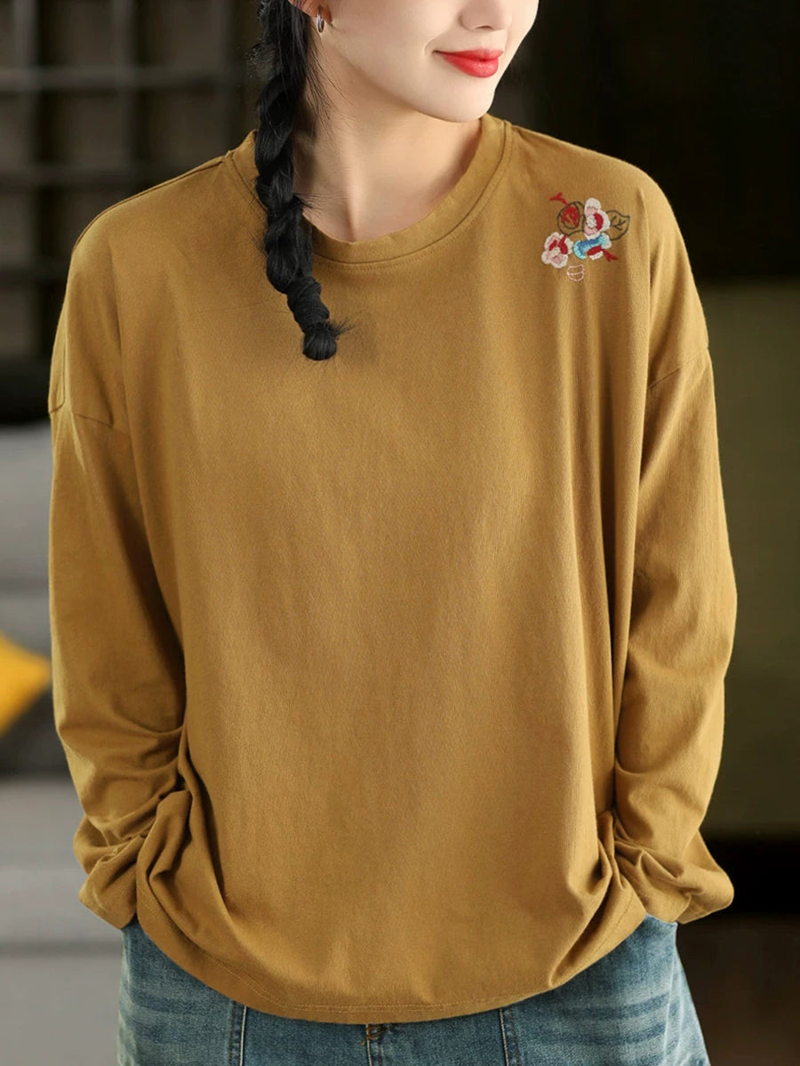 Ženska proljetna bluza s O-izrezom i umjetničkim vezom od 100% pamuka