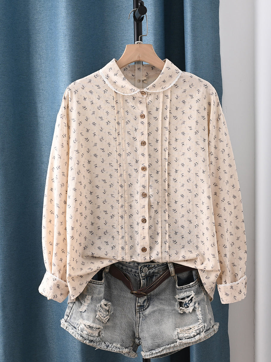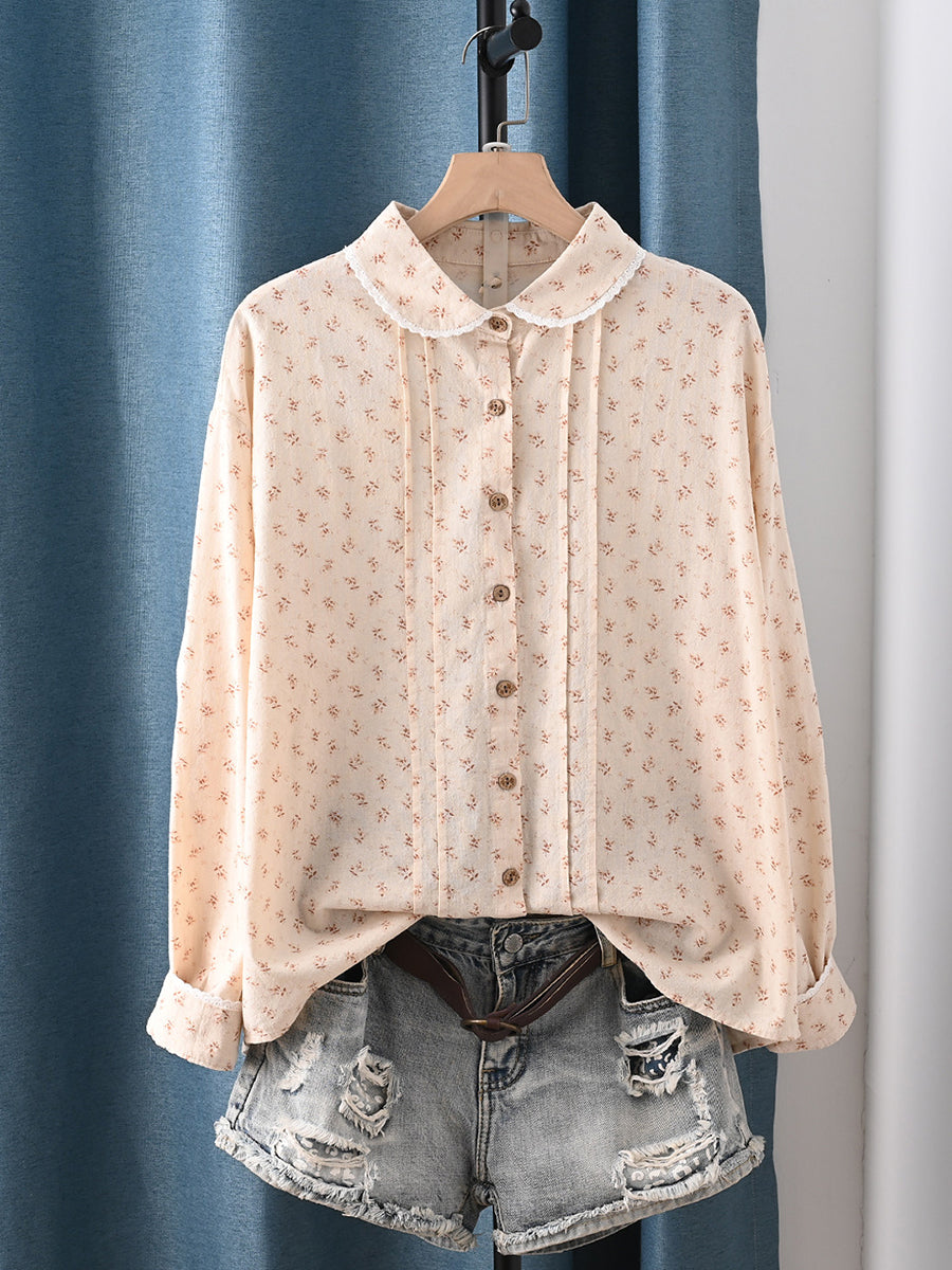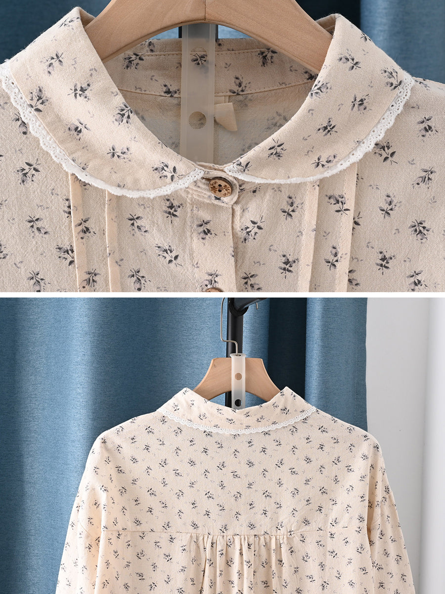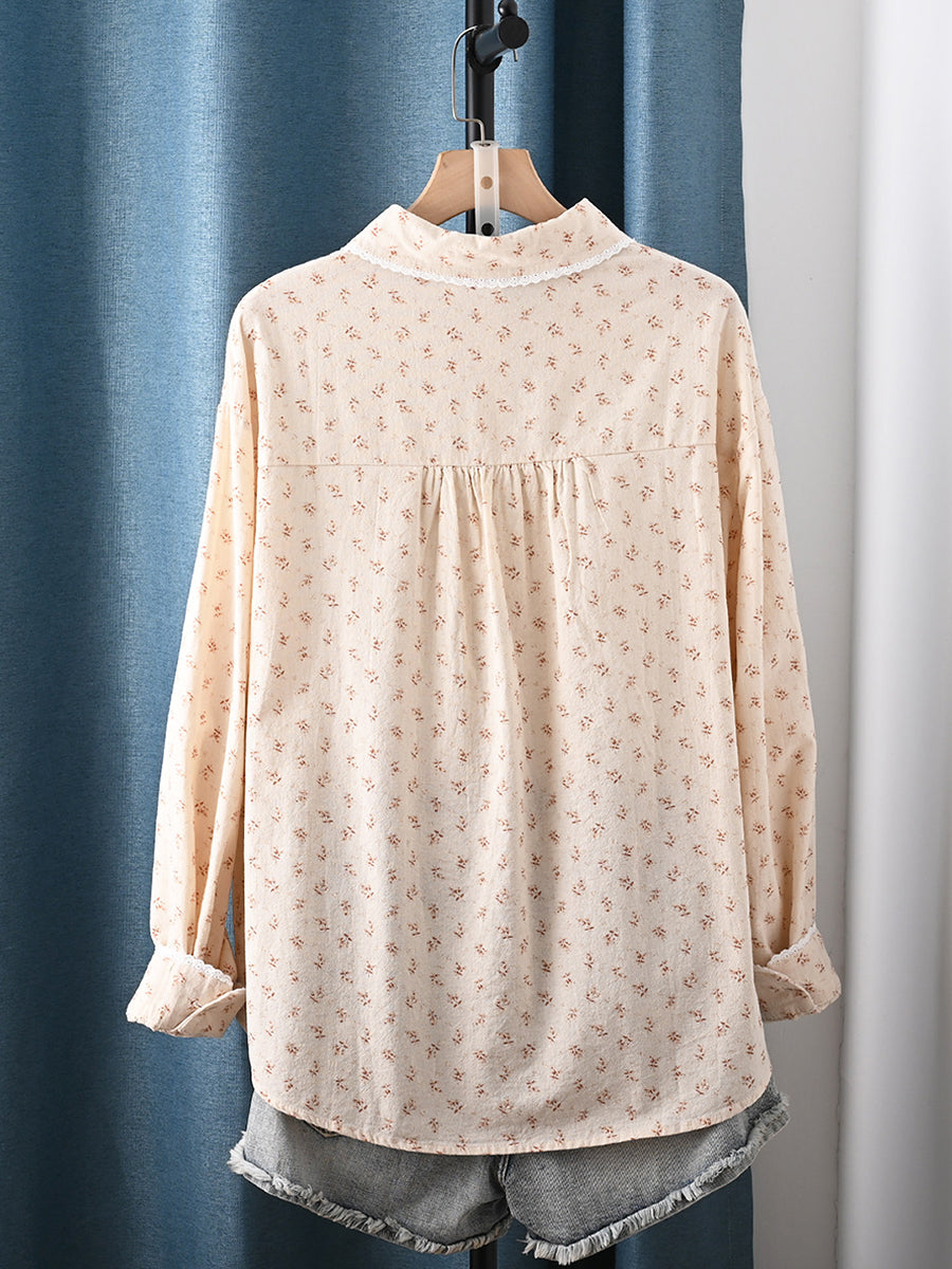 Ženska proljetna umjetnička cvjetna košulja s ovratnikom od 100% pamuka