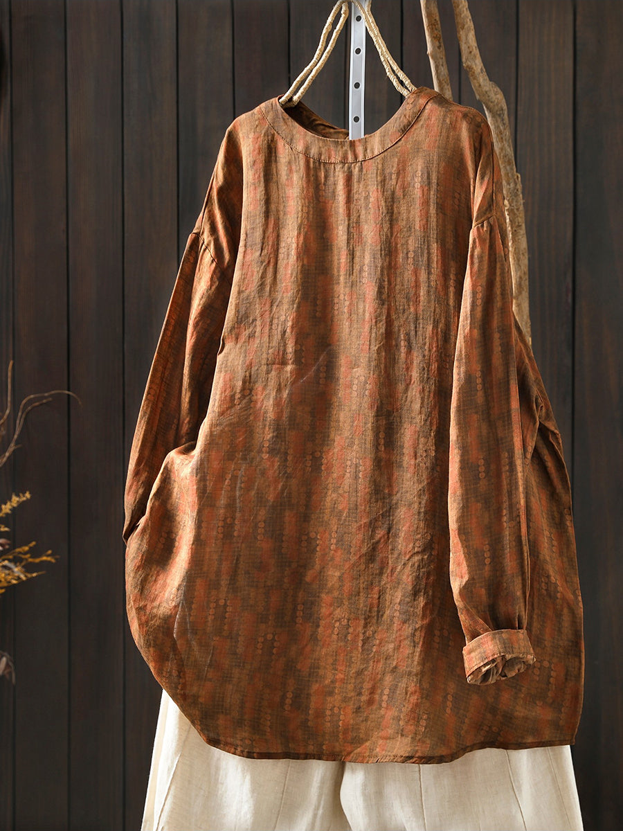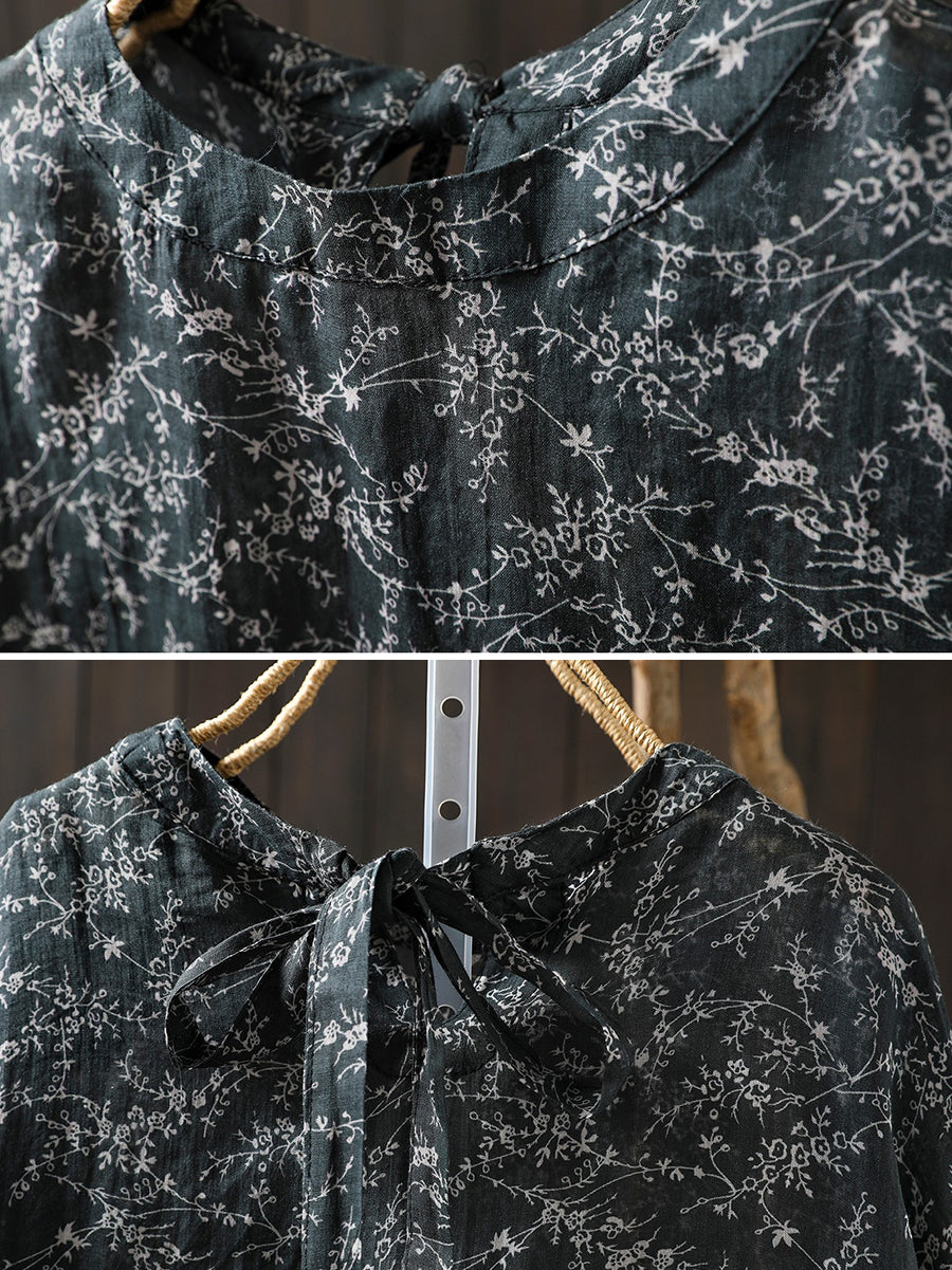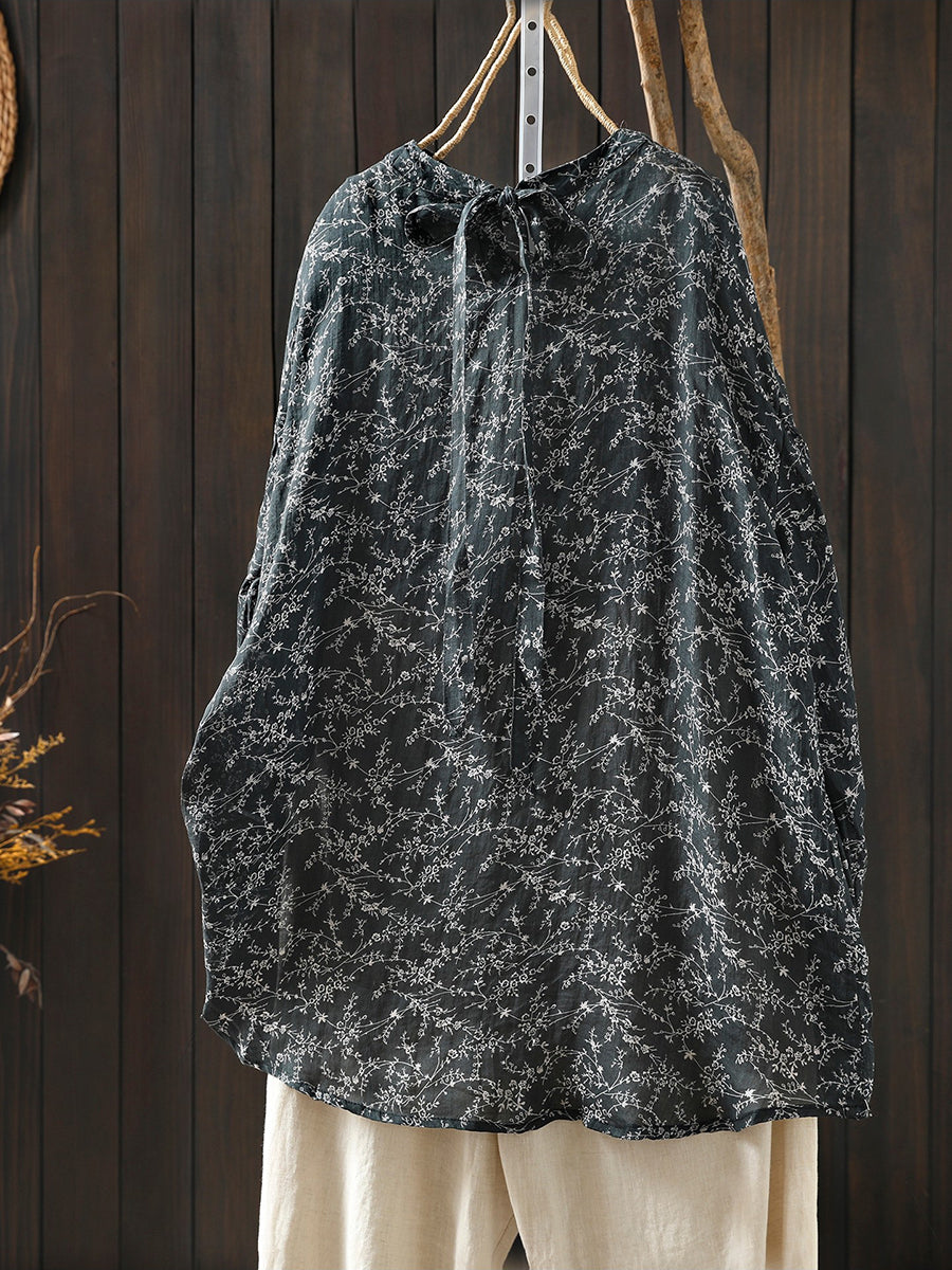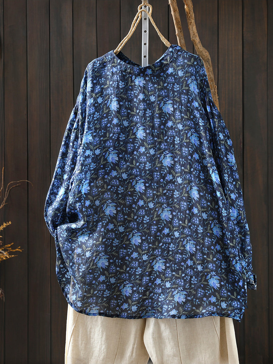 Ženska proljetna umjetnička cvjetna bluza s O-izrezom od 100% ramije
