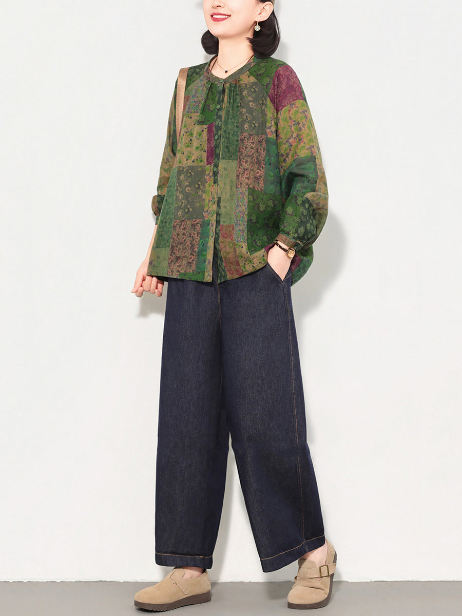 Ženska proljetna umjetnička košulja s cvjetnim patchom od ramije