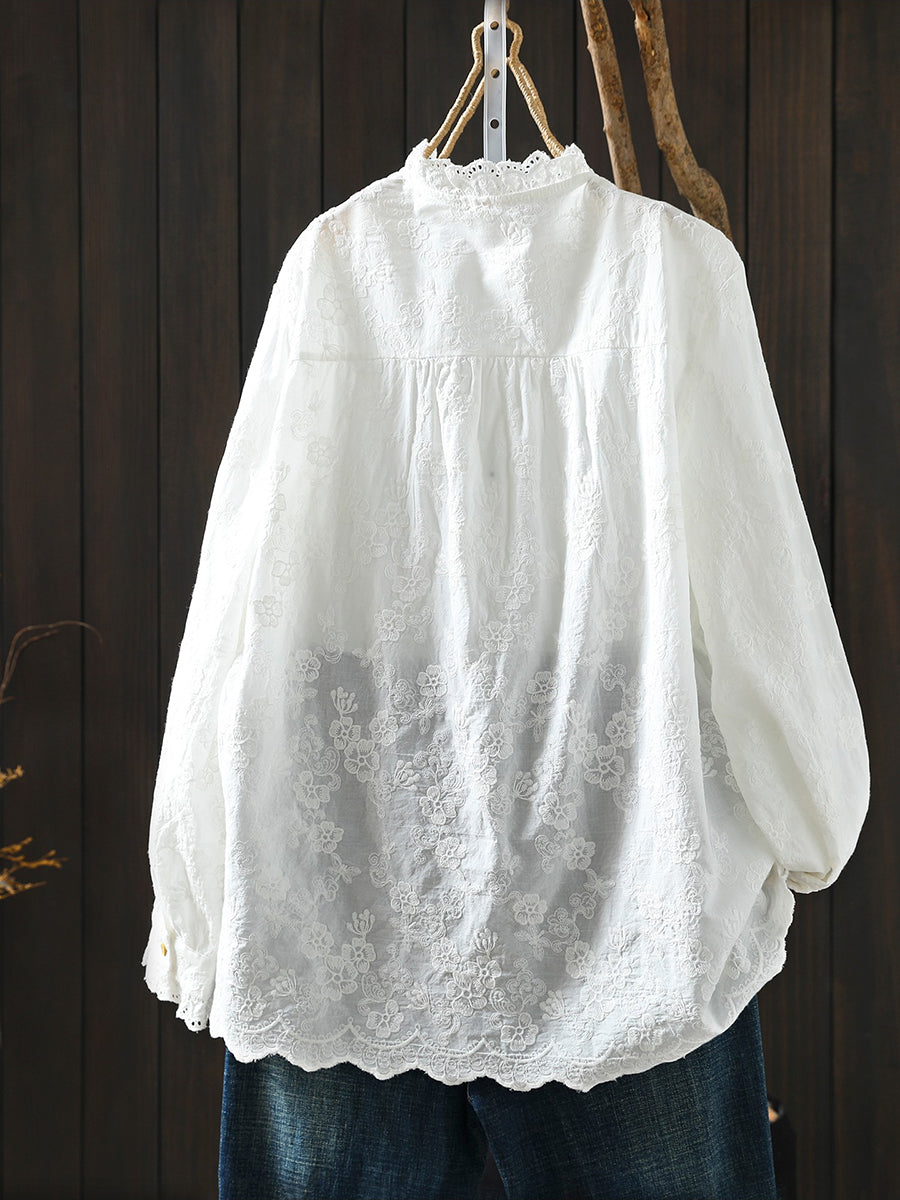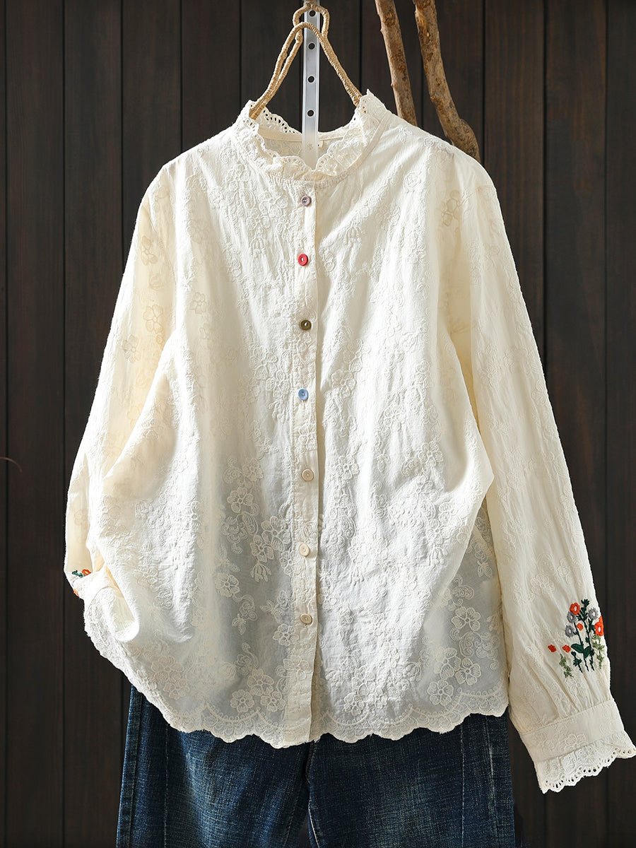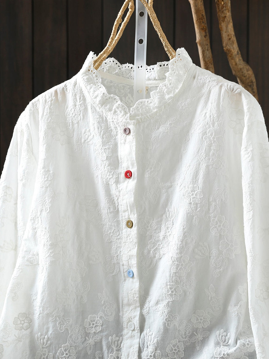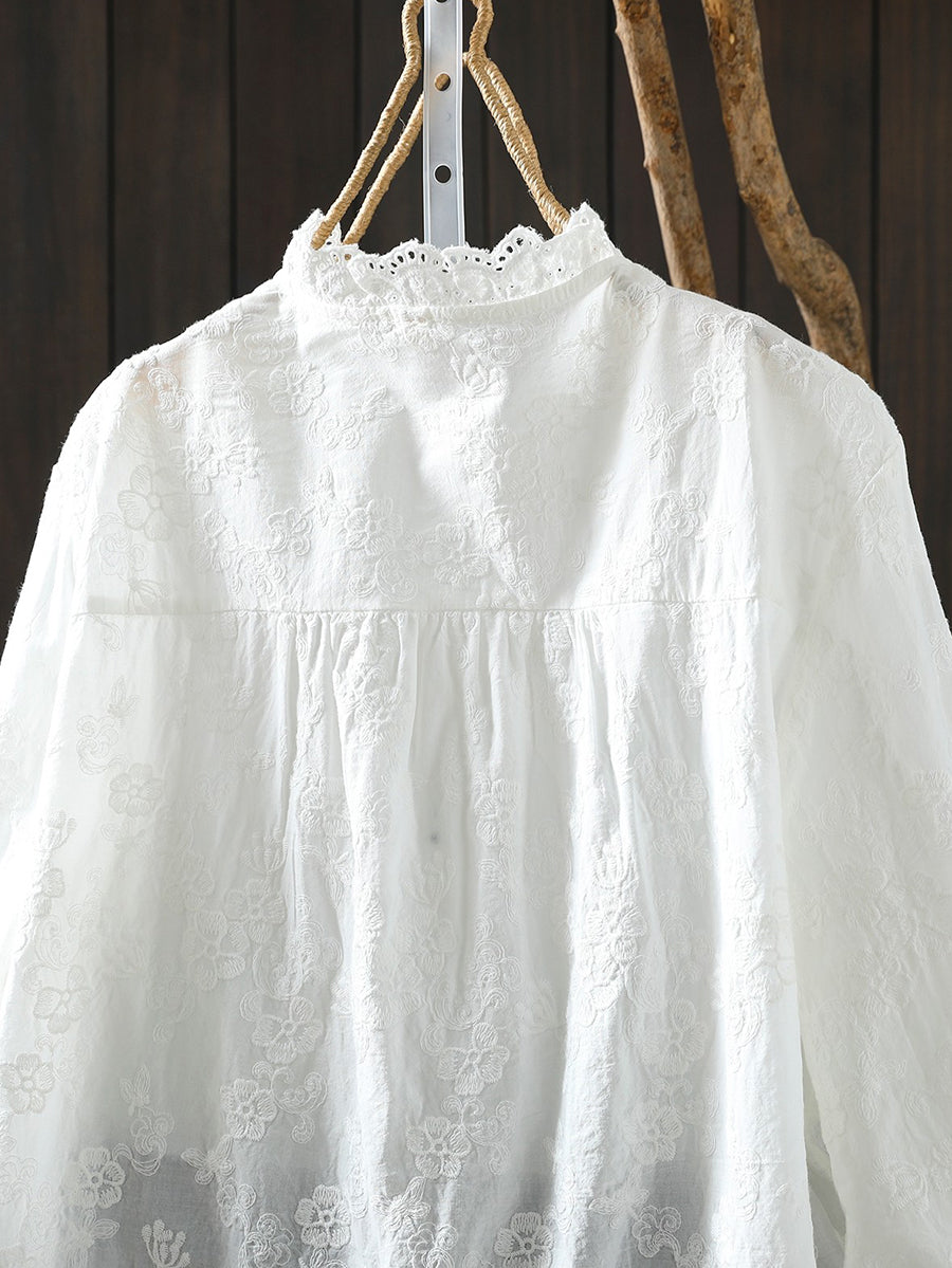 Ženska proljetna majica s umjetničkim cvjetnim vezom od 100% pamuka