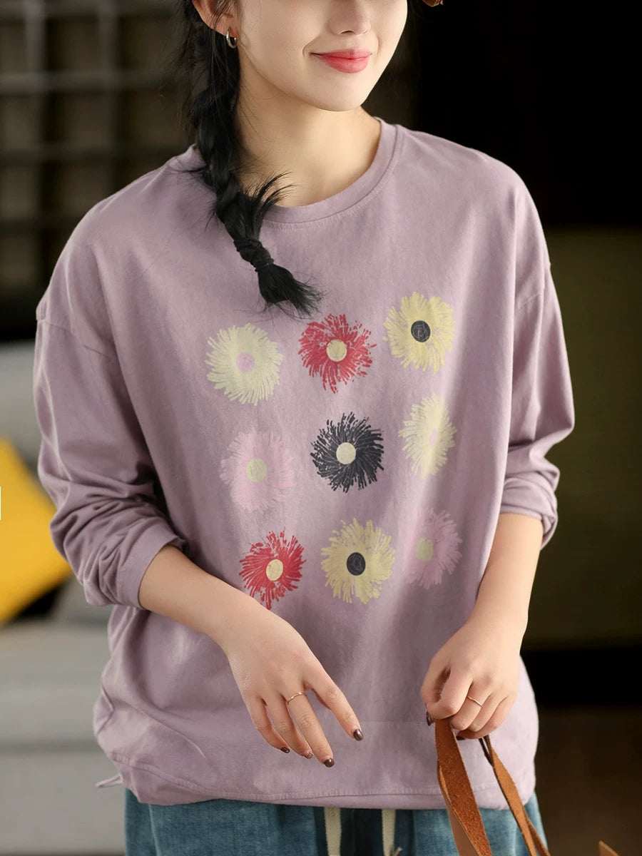 Ženska proljetna umjetnička bluza s O-izrezom i cvijećem