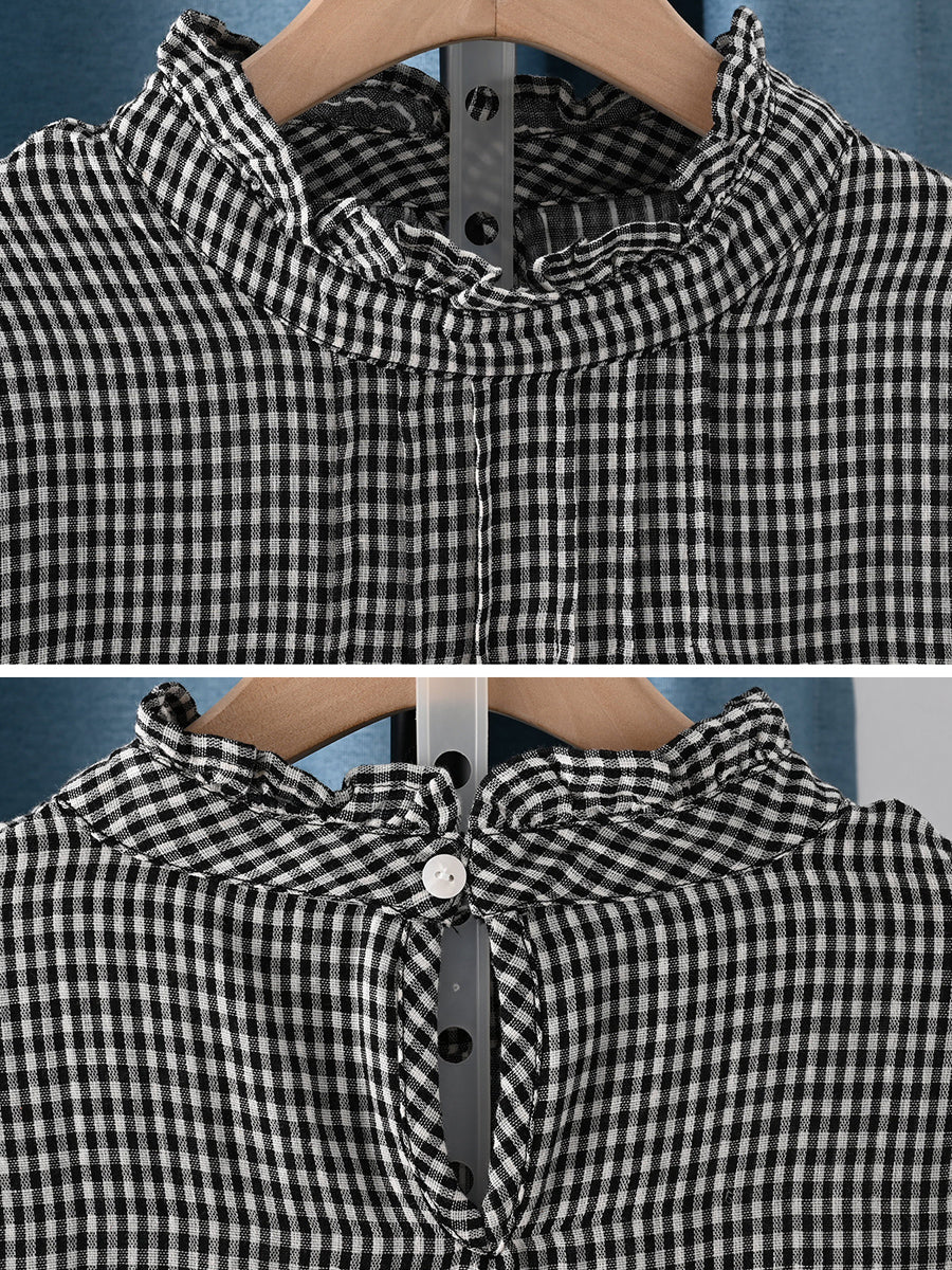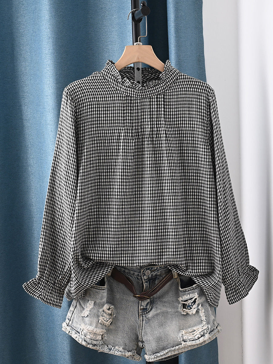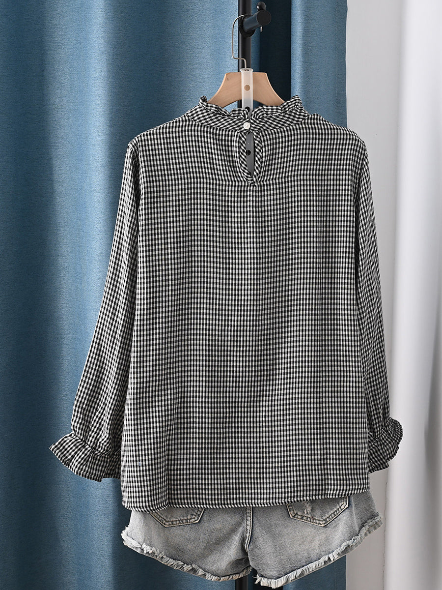 Ženska proljetna umjetnička bluza od 100% pamuka s rešetkastim uzorkom