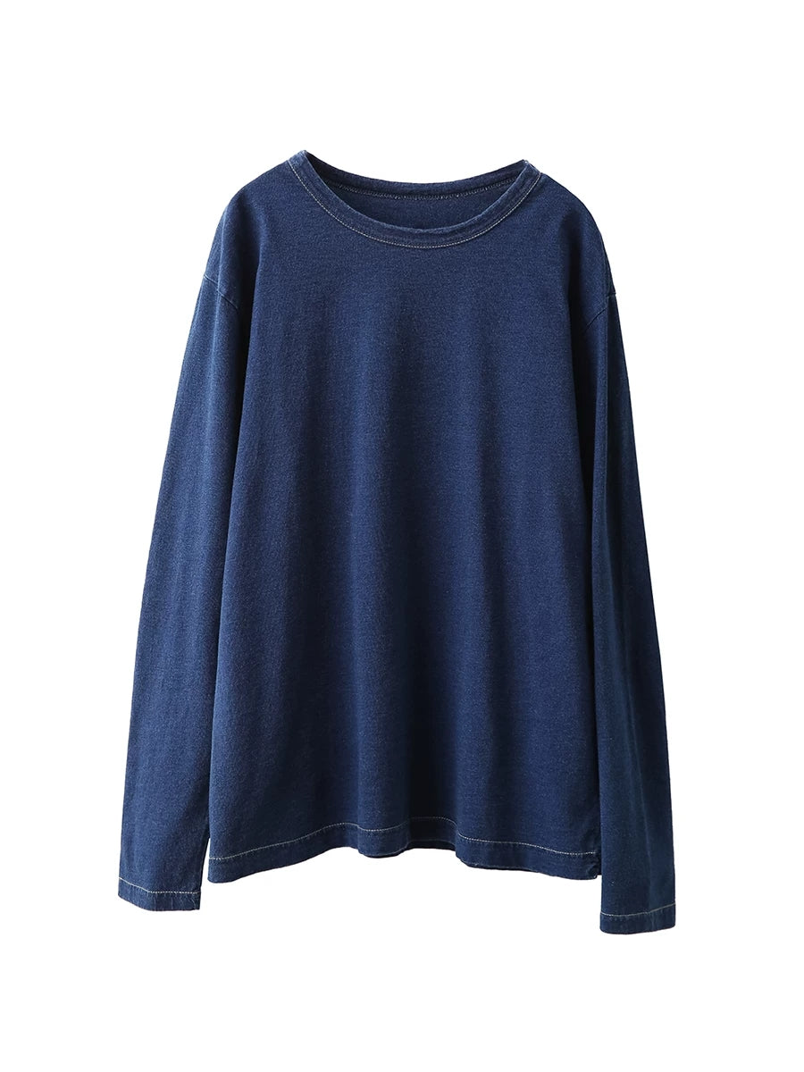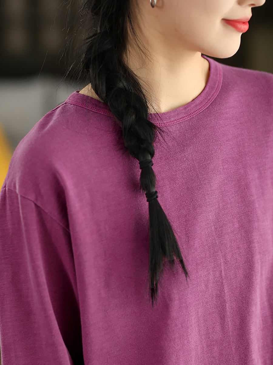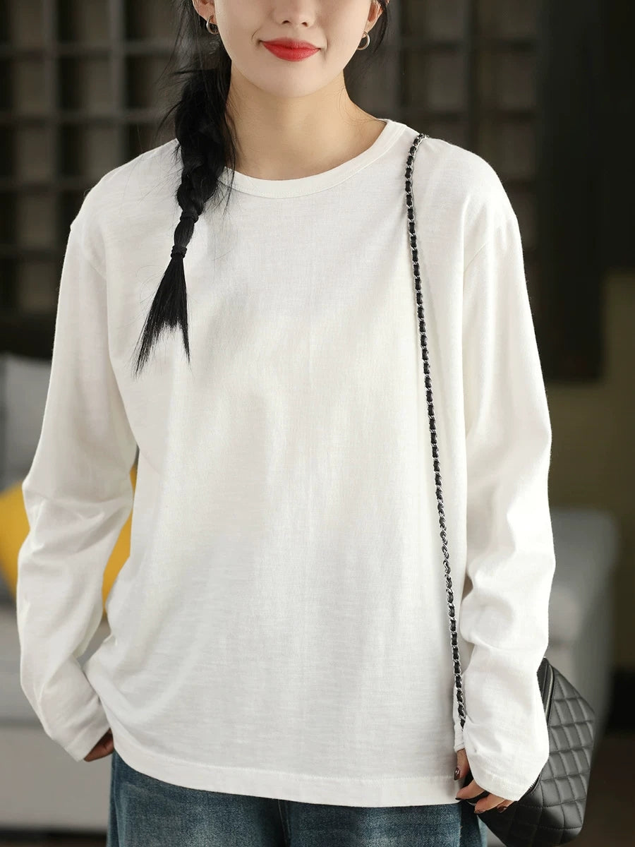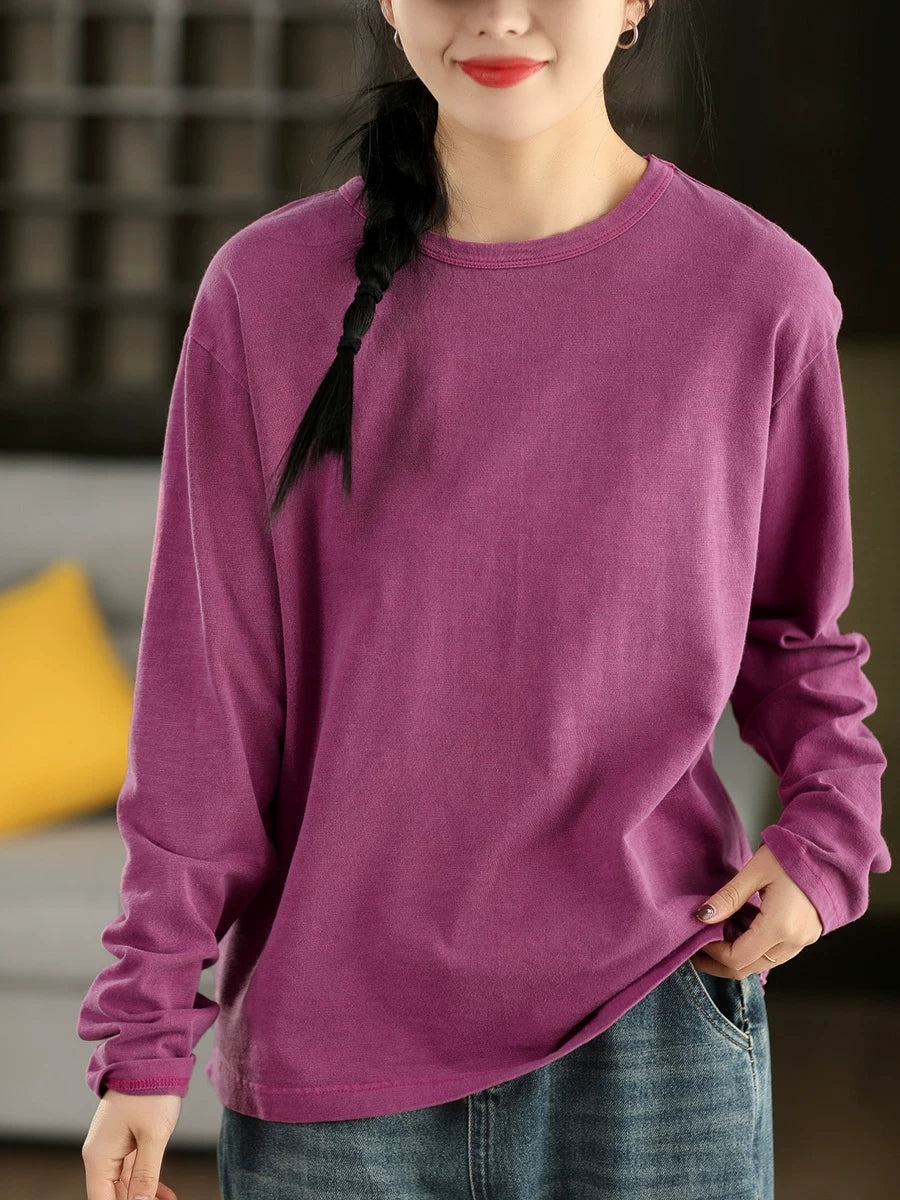 Ženska proljetna umjetnička bluza s O-izrezom, čiste boje, 100% pamuk