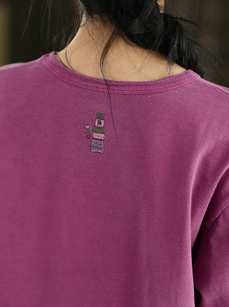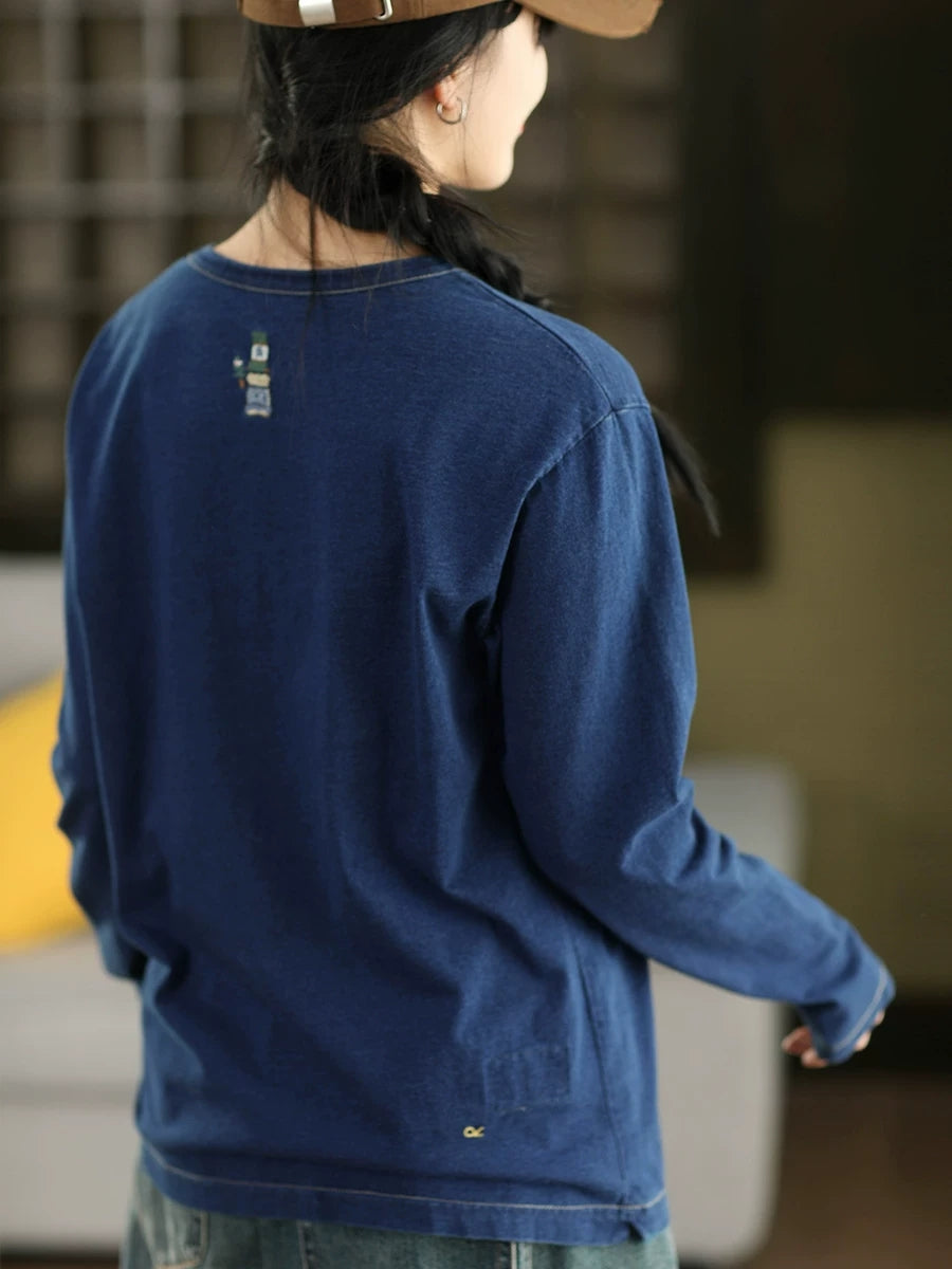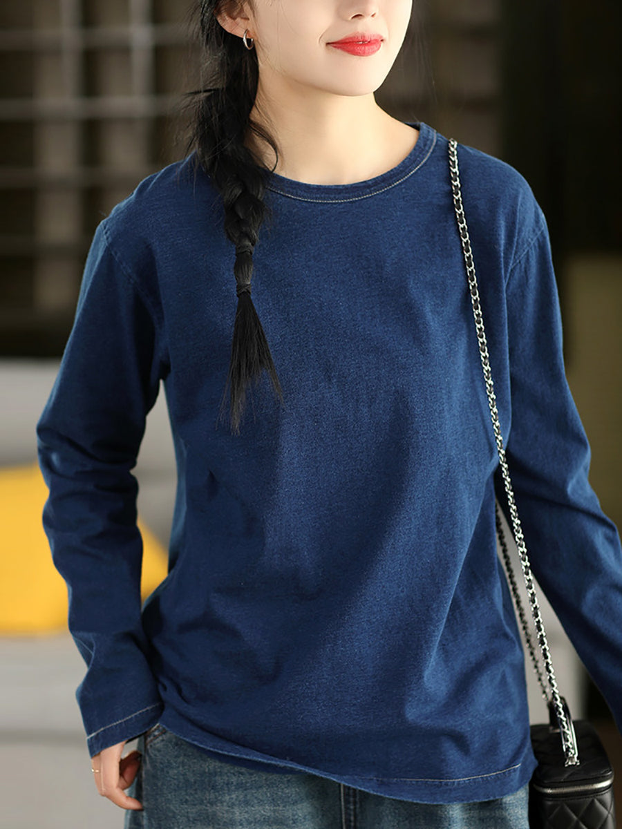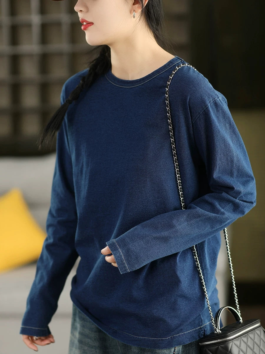 Ženska proljetna umjetnička bluza s O-izrezom, čiste boje, 100% pamuk