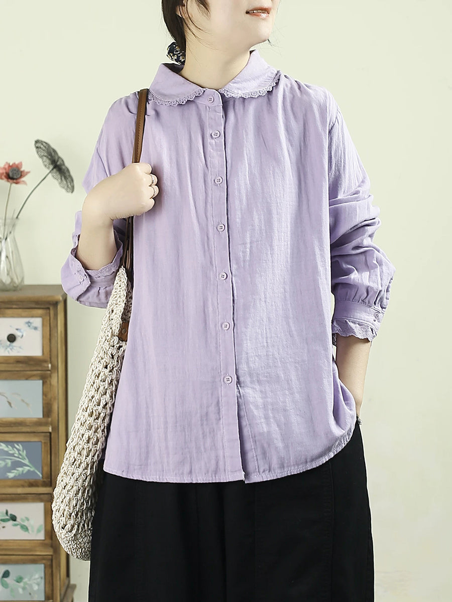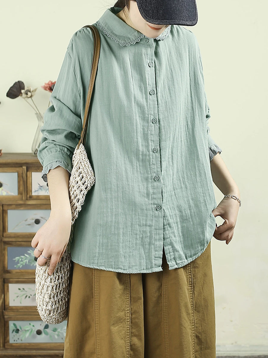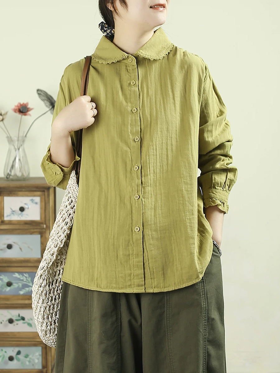 Ženska proljetna umjetnička košulja s ovratnikom od 100% pamuka, čiste boje