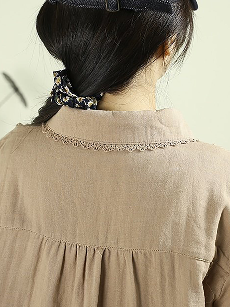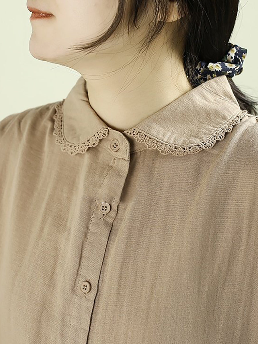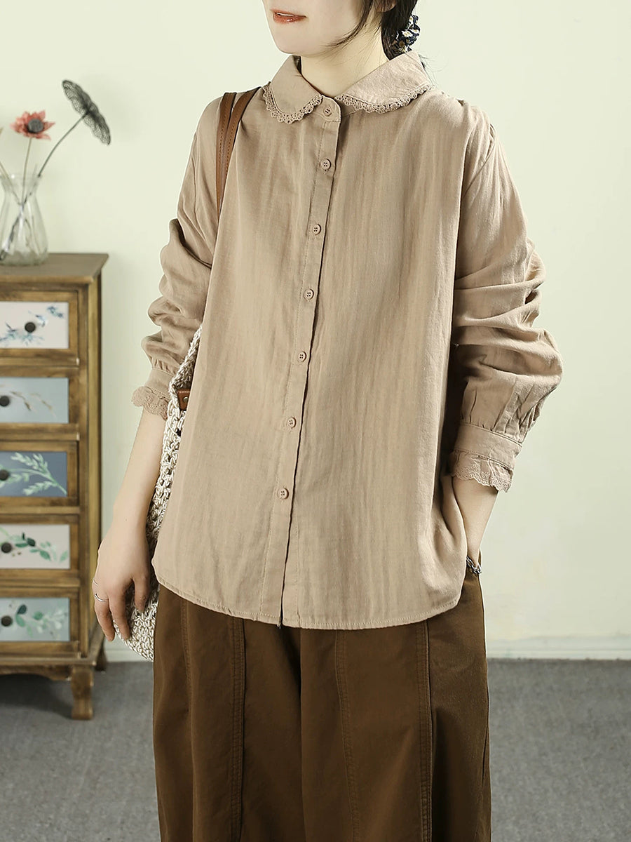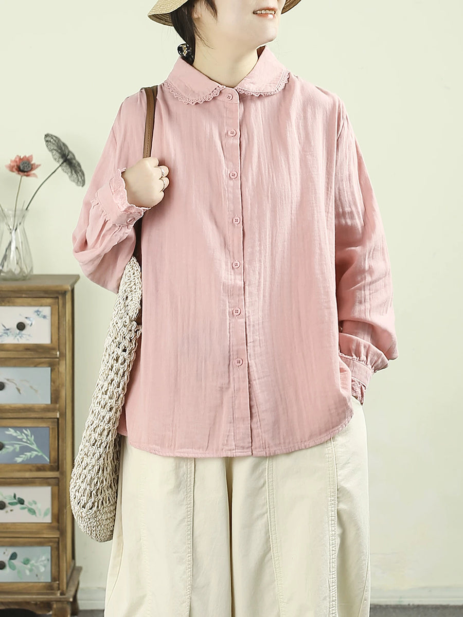 Ženska proljetna umjetnička košulja s ovratnikom od 100% pamuka, čiste boje
