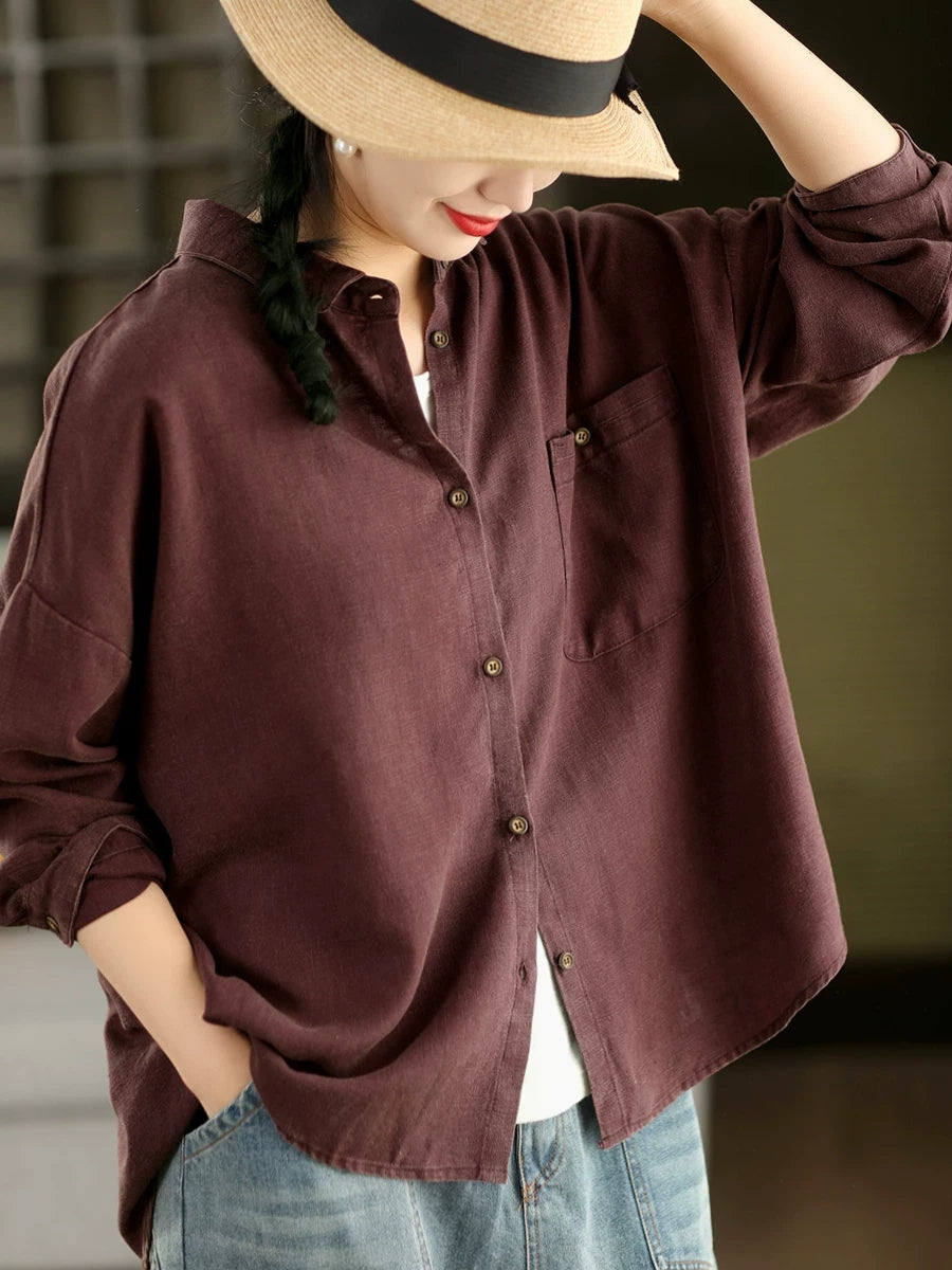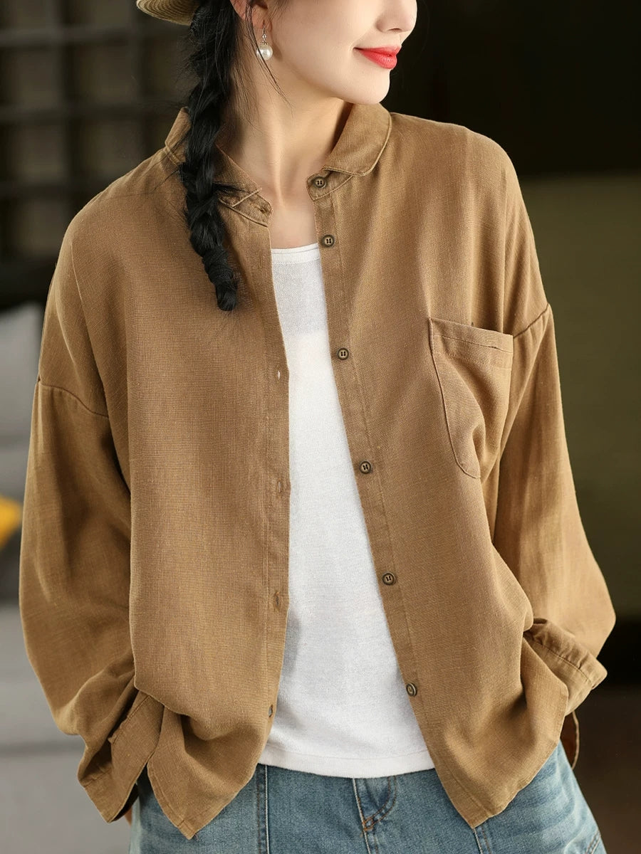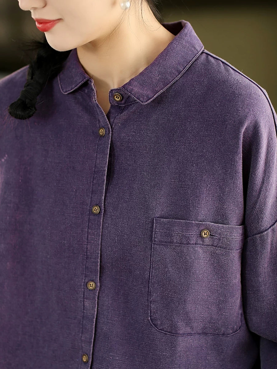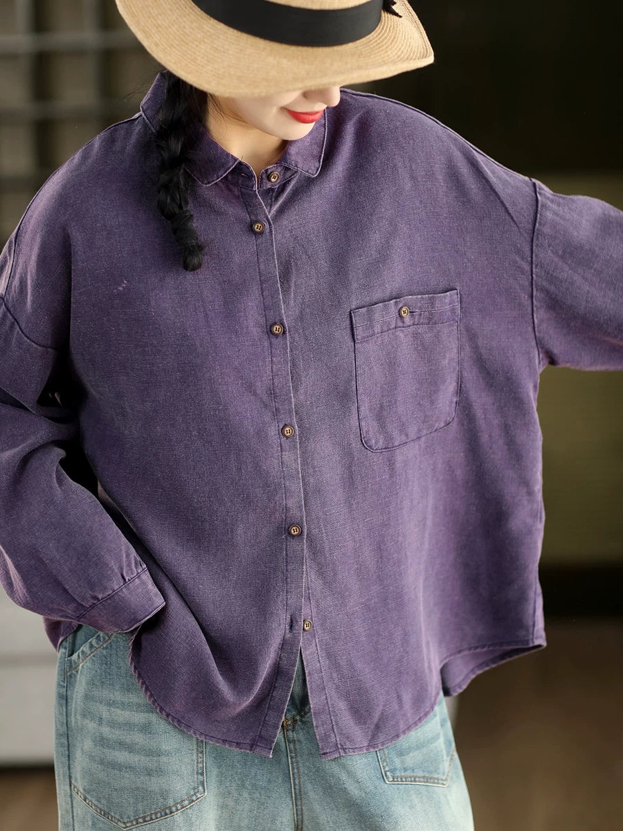 Ženska proljetna umjetnička košulja od 100% lana u čistim bojama
