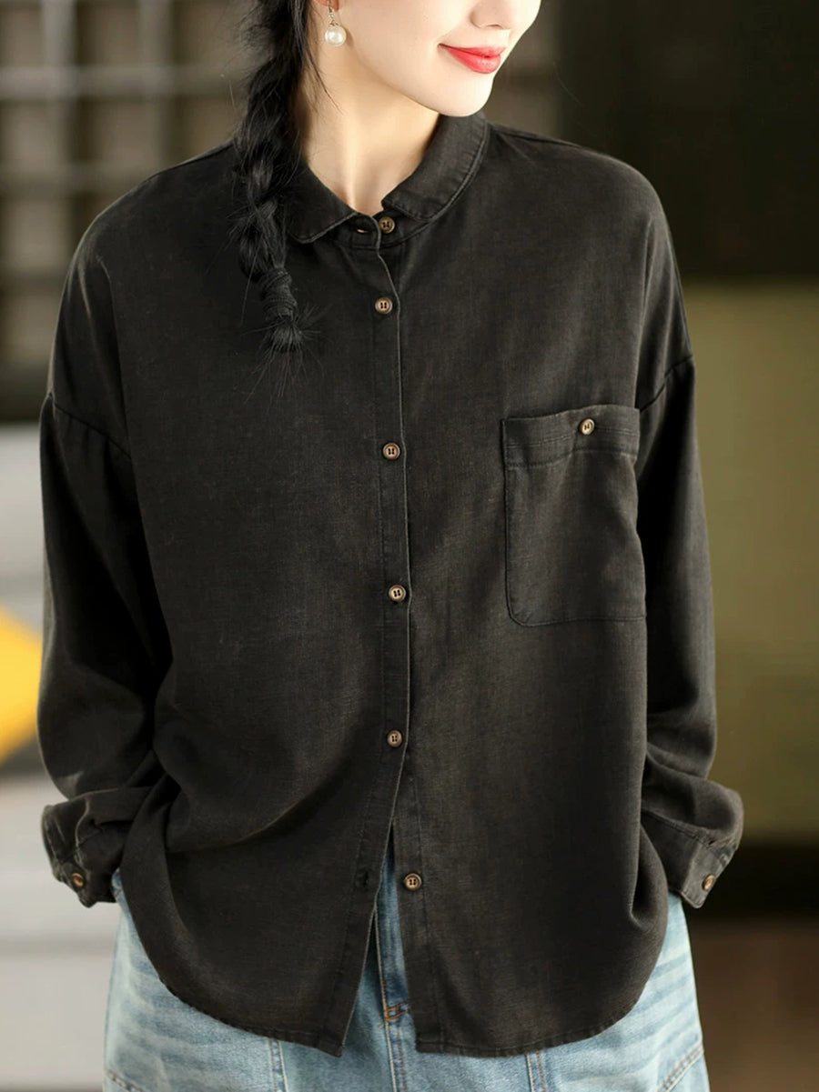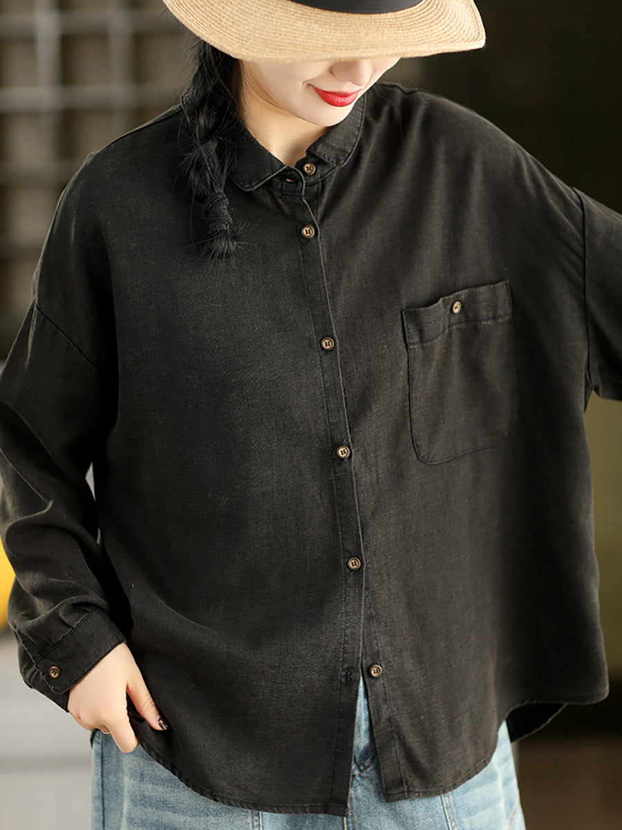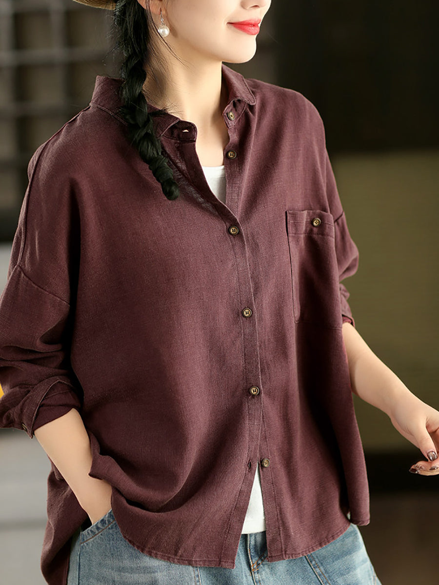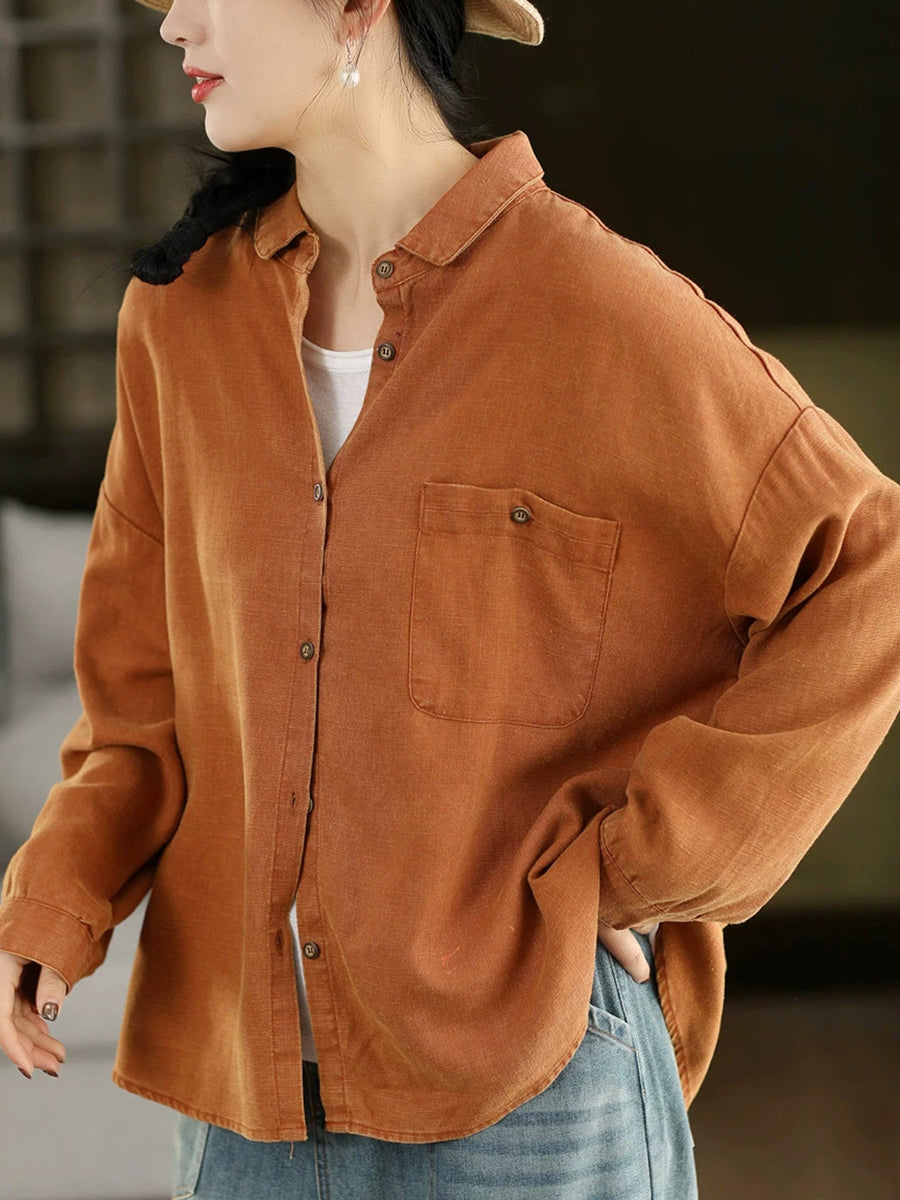 Ženska proljetna umjetnička košulja od 100% lana u čistim bojama