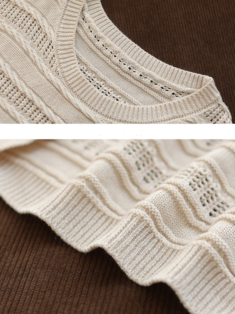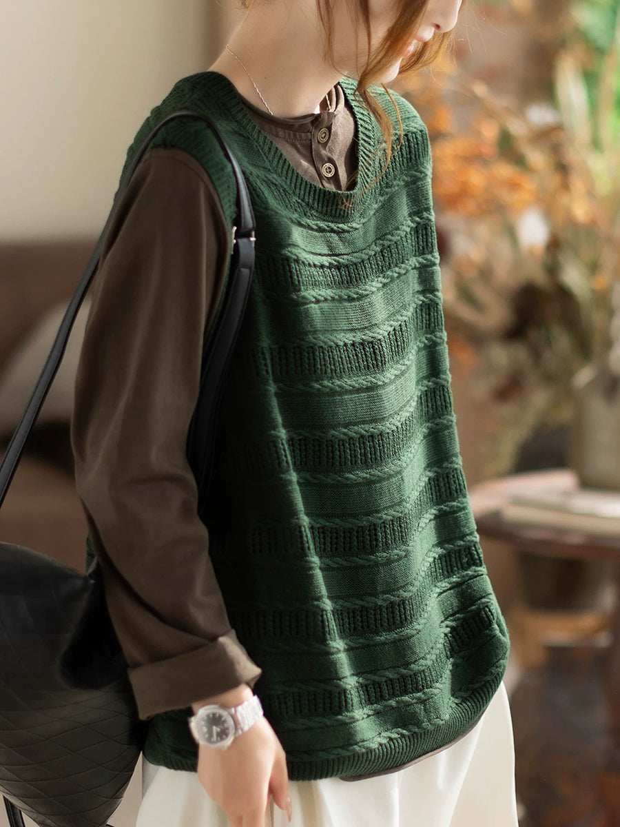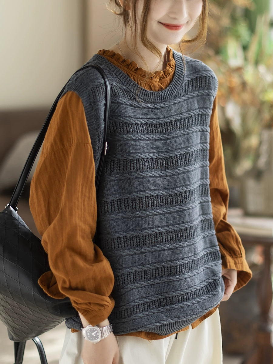 Ženski proljetni umjetnički pleteni prsluk s O-izrezom u čistim bojama