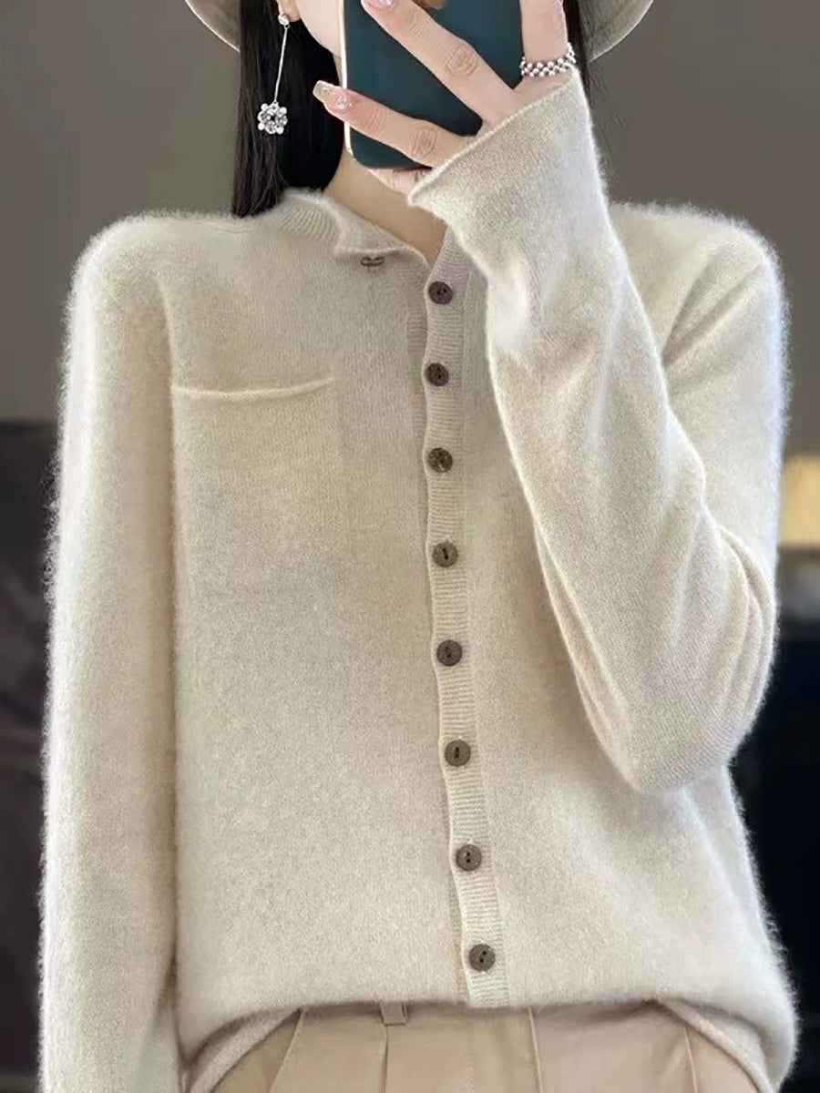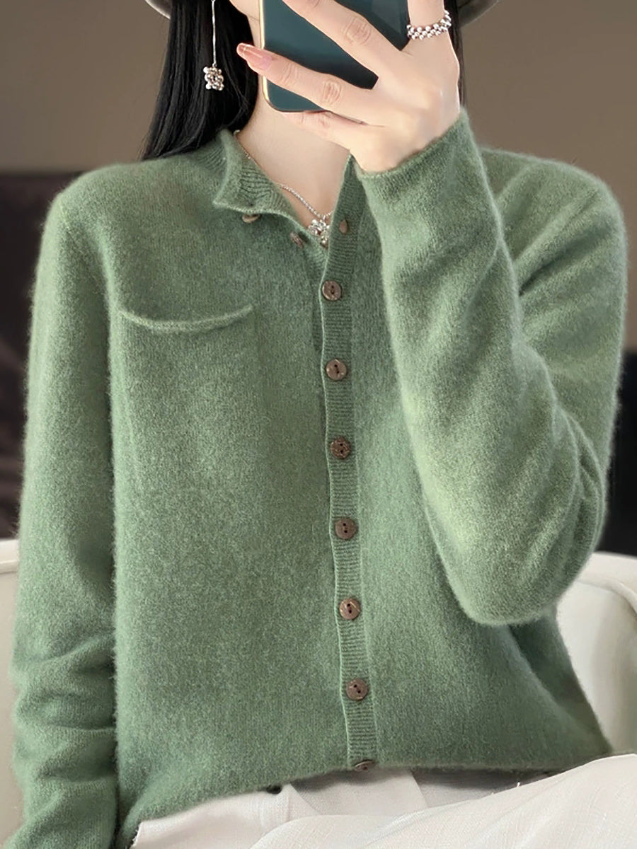 Ženski proljetni umjetnički kardigan s O-izrezom u čistim bojama