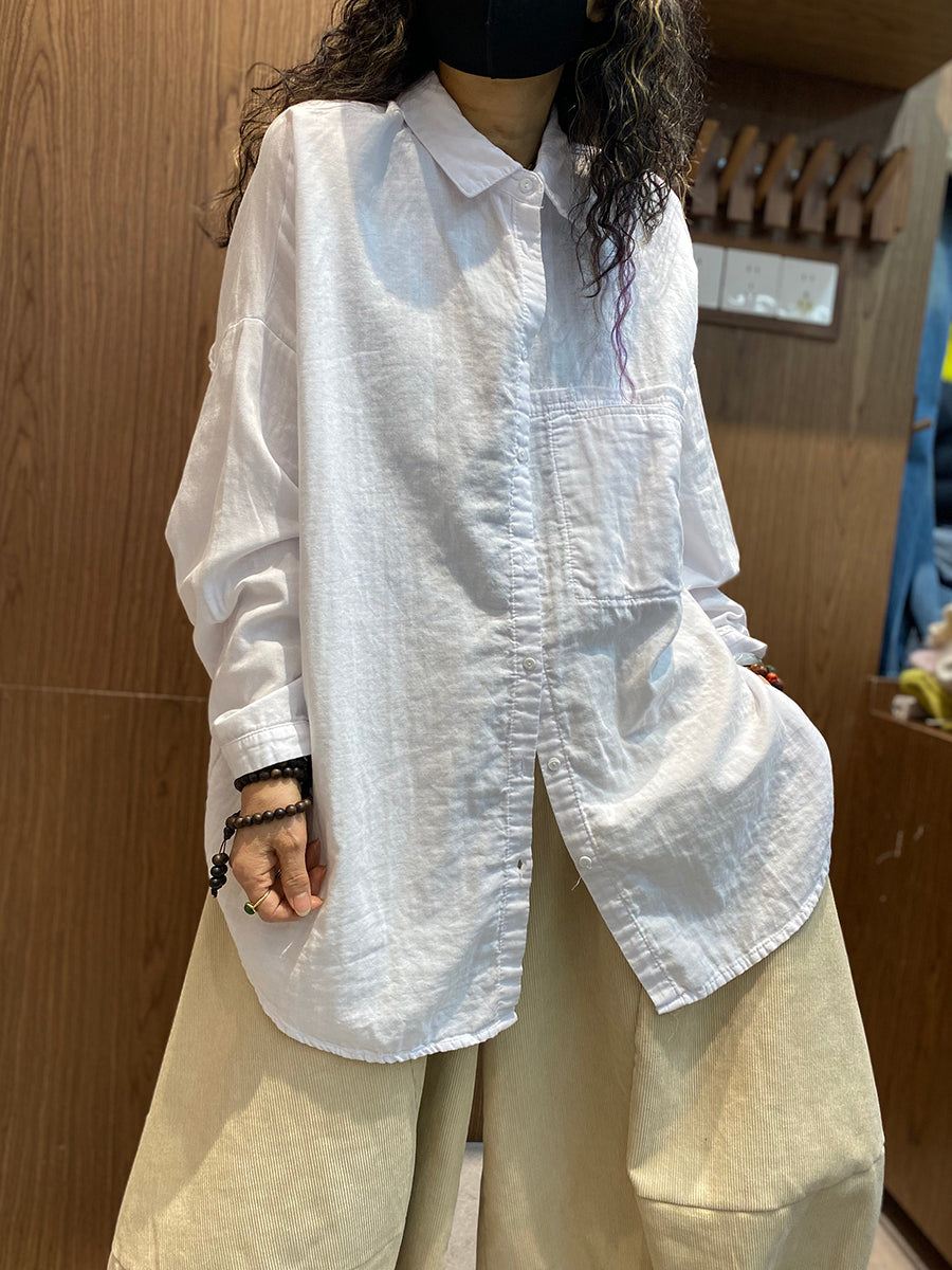 Ženska proljetna umjetnička košulja s odloženim ovratnikom u čistim bojama