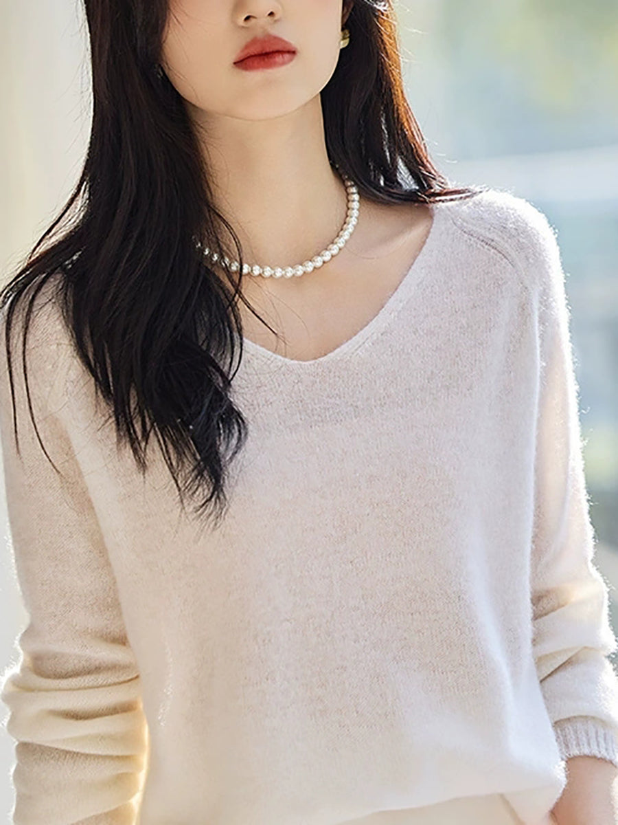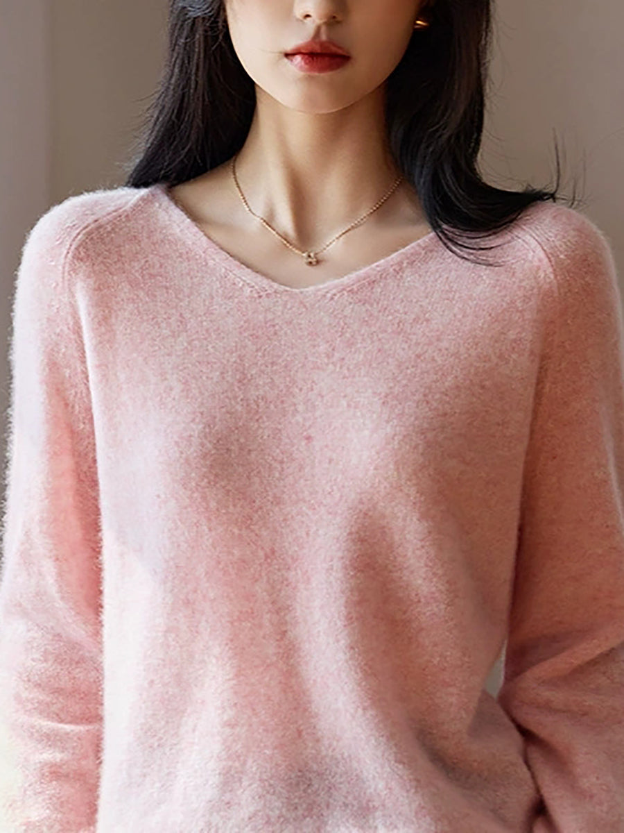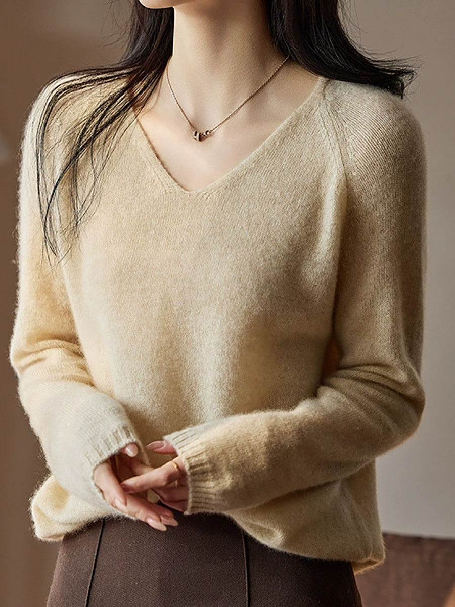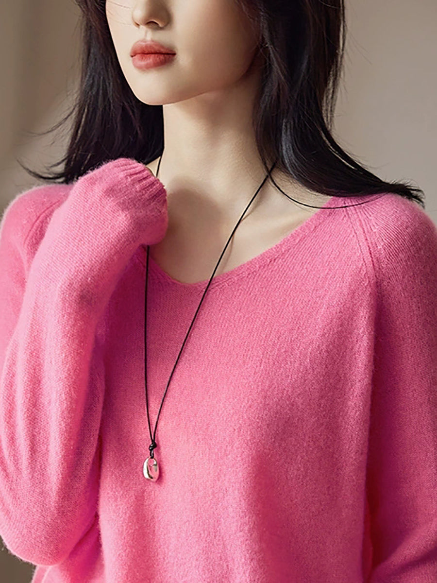 Ženski proljetni umjetnički pulover od vune s V-izrezom u čistim bojama