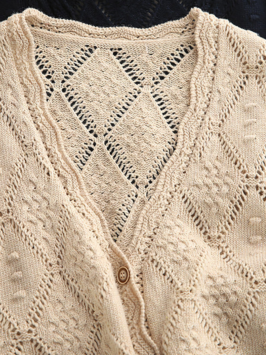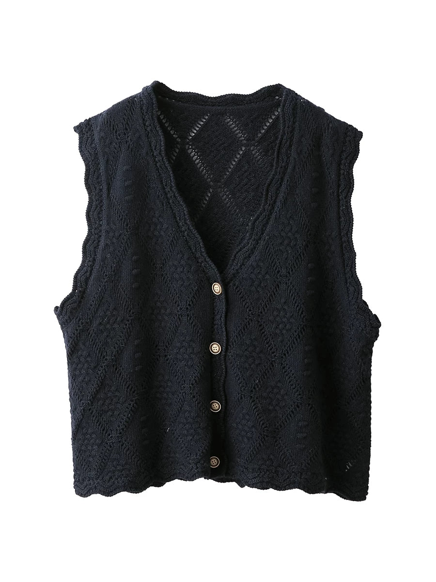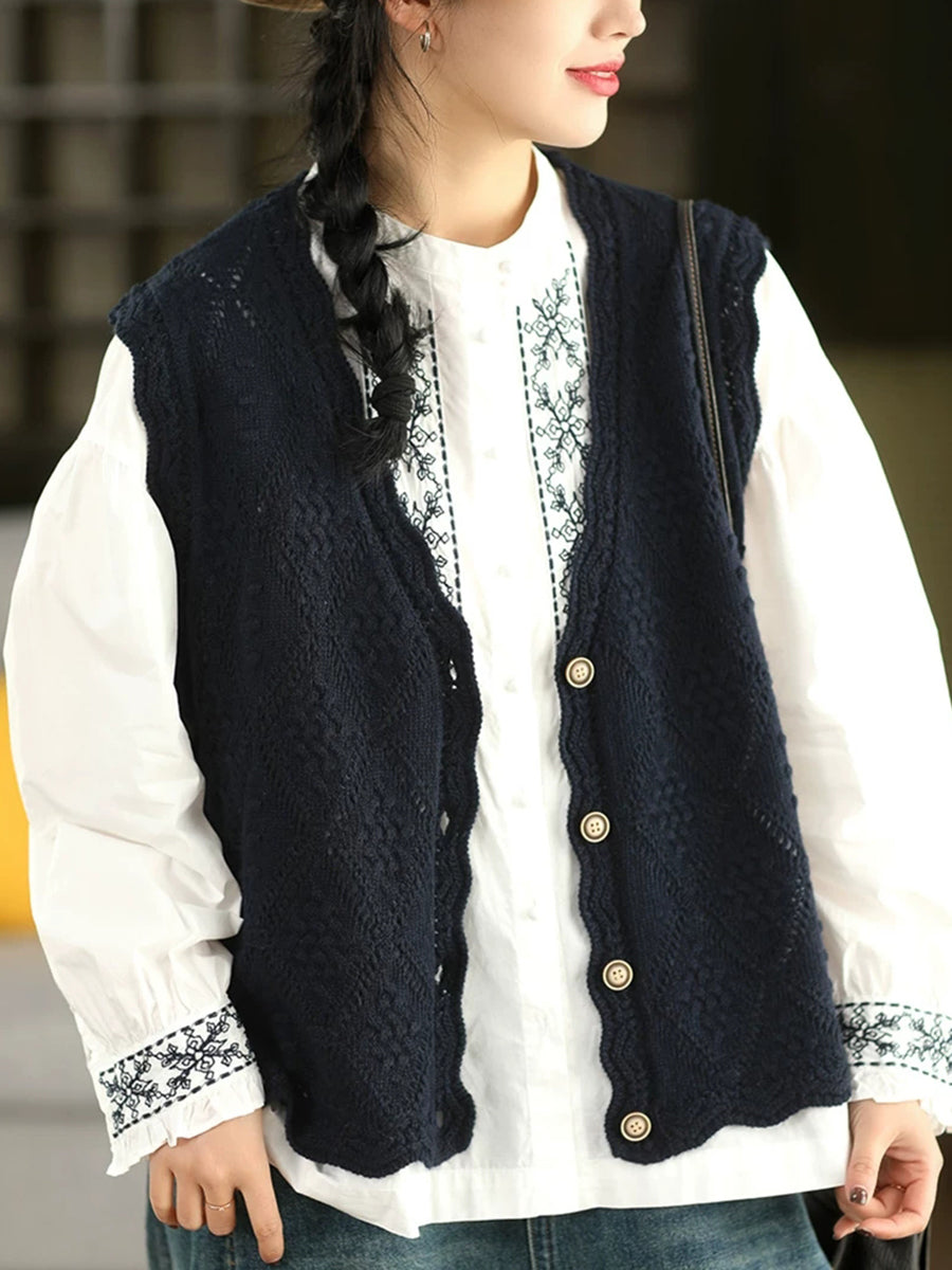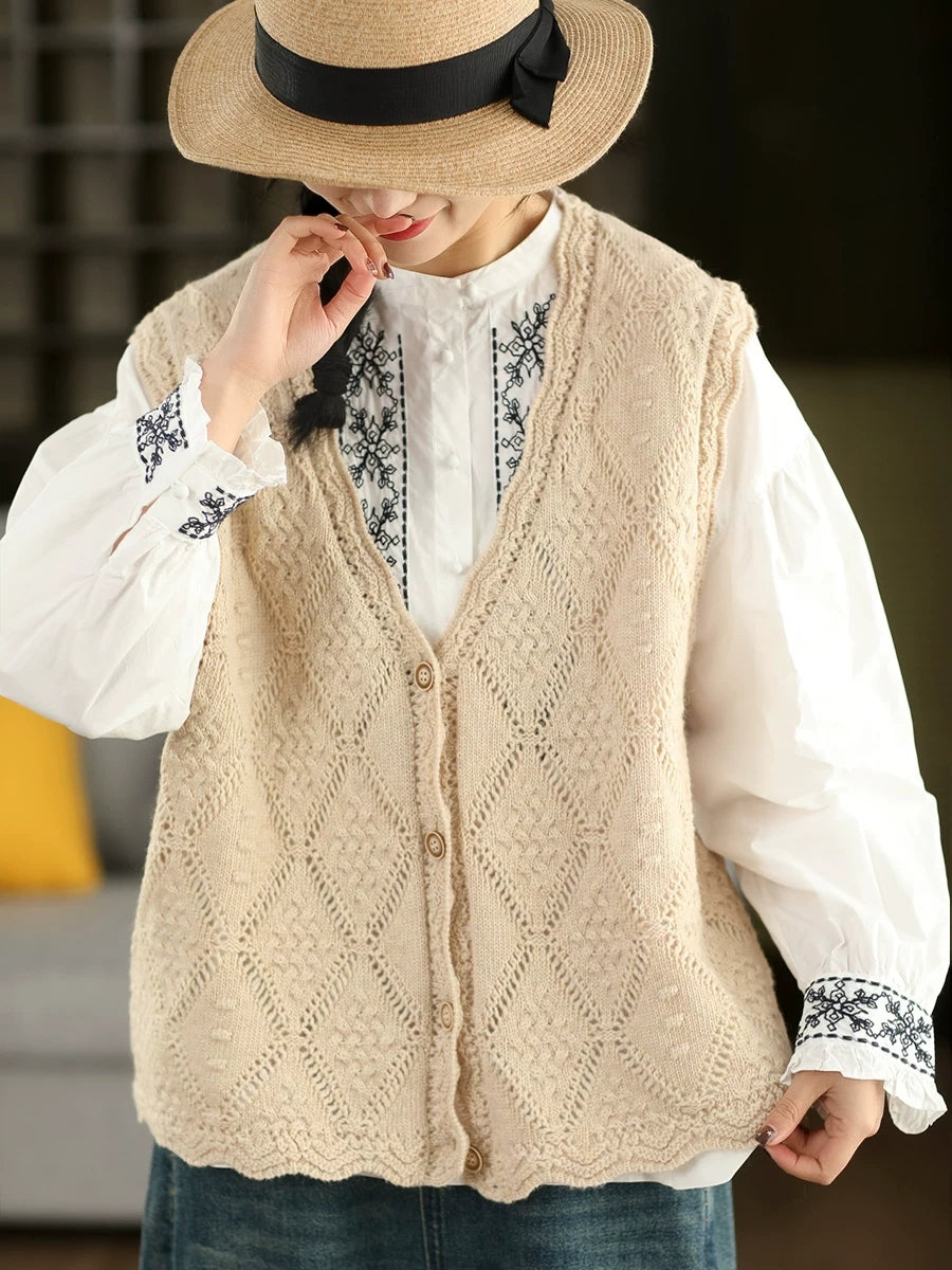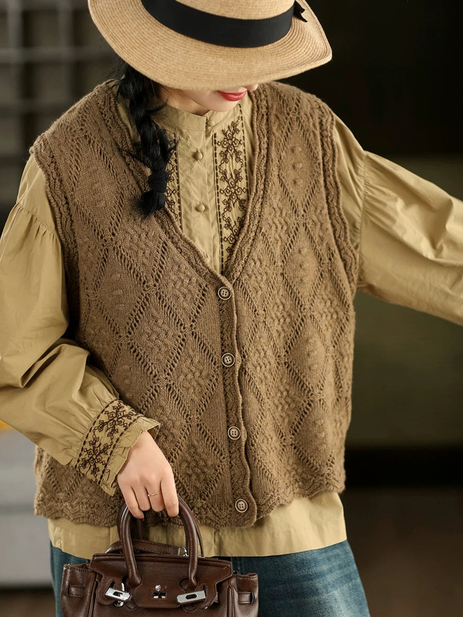 Ženski proljetni umjetnički pleteni prsluk s V-izrezom i romboidima