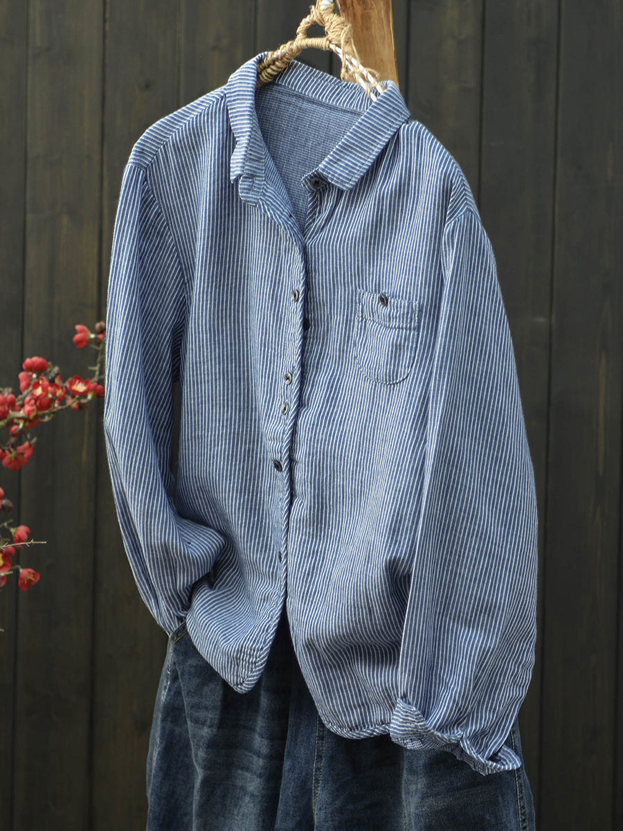 Ženska proljetna pamučna košulja s umjetničkim prugama i odloženim ovratnikom