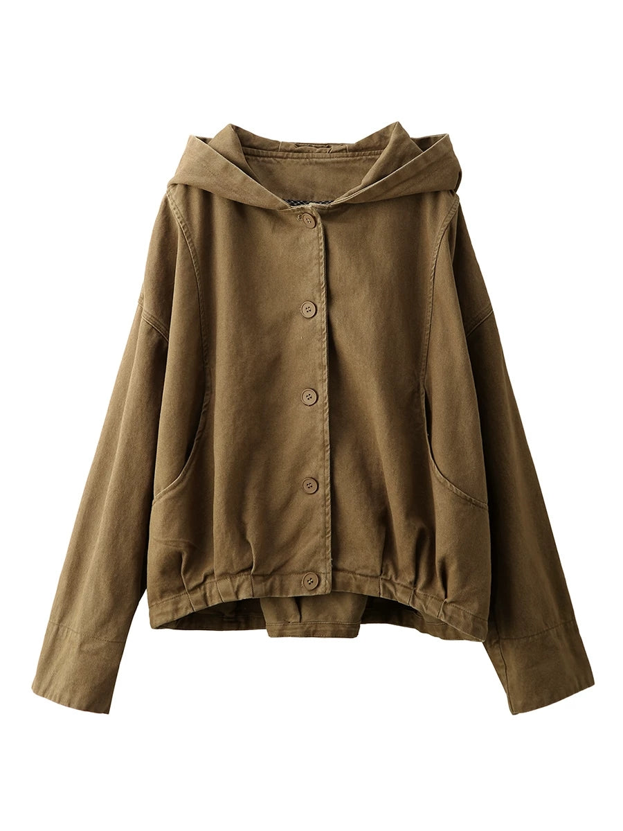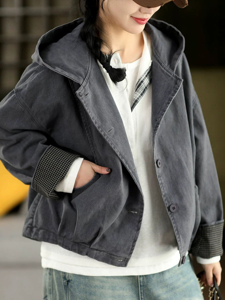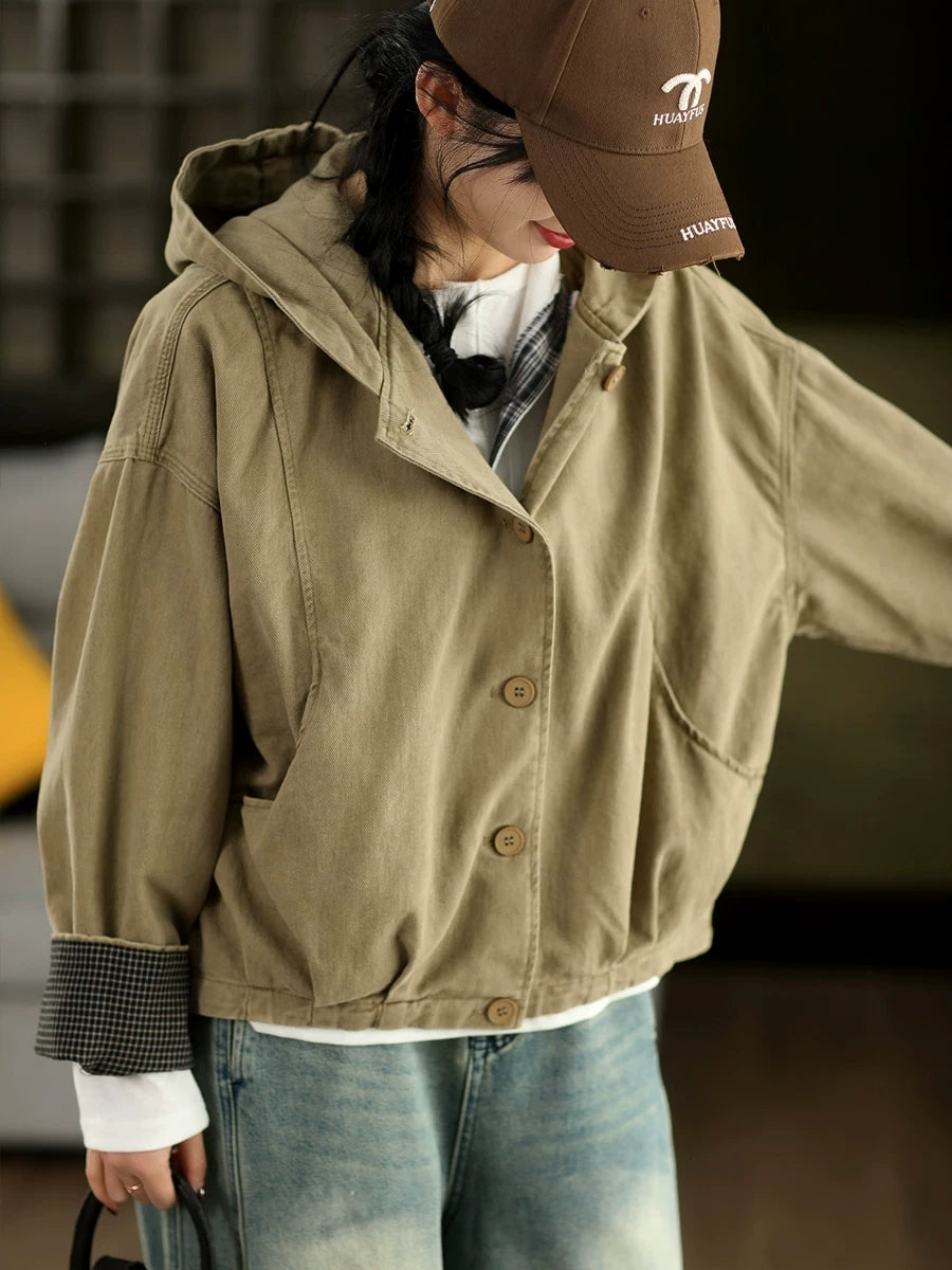 Ženski proljetni ležerni kaput s kapuljačom, čistog izgleda, 100% pamuk