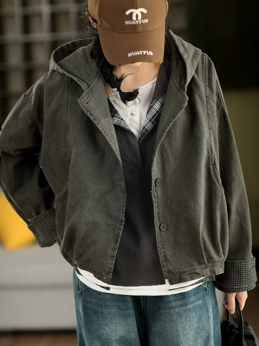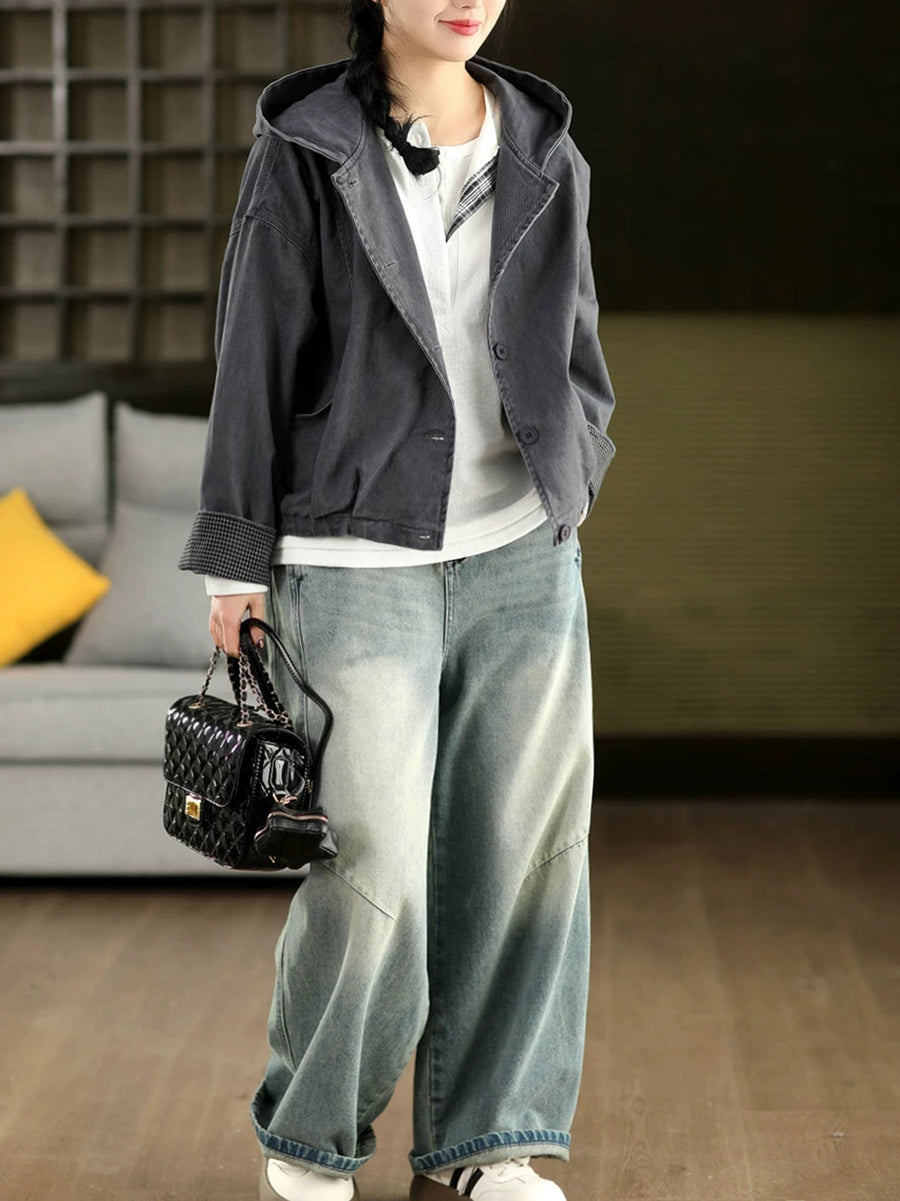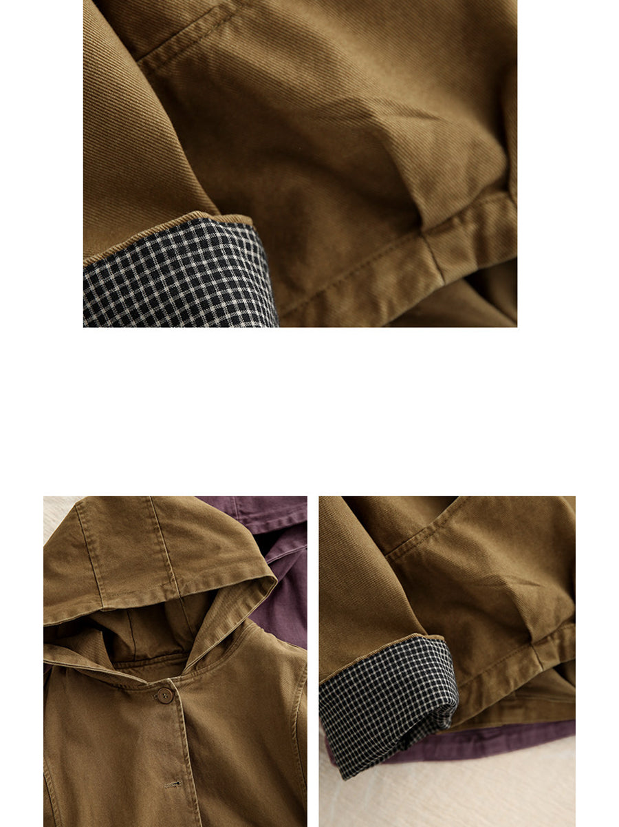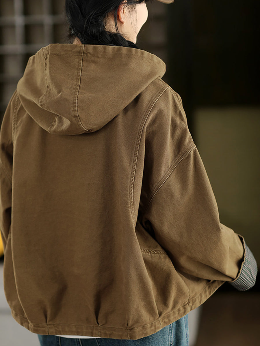 Ženski proljetni ležerni kaput s kapuljačom, čistog izgleda, 100% pamuk