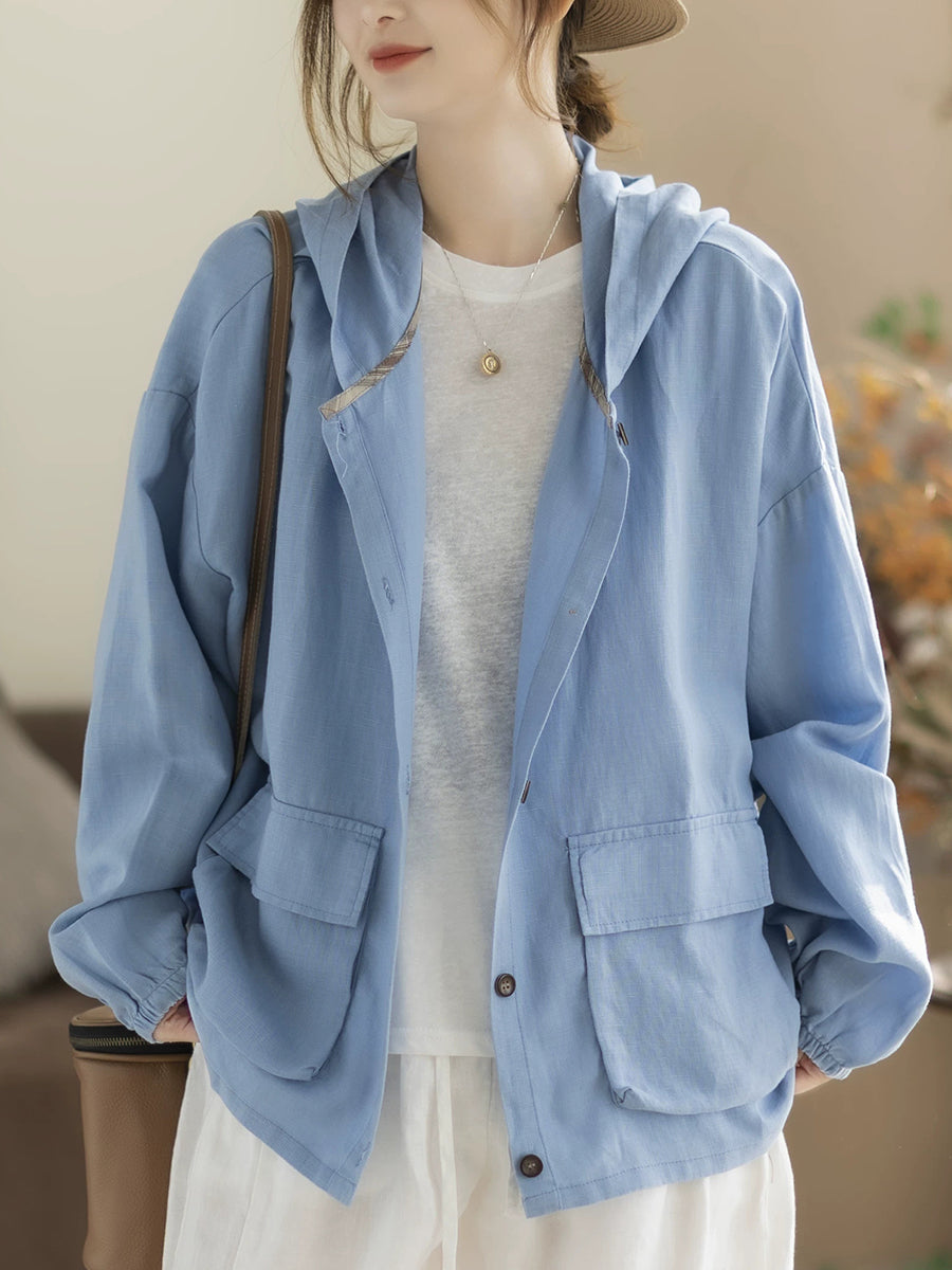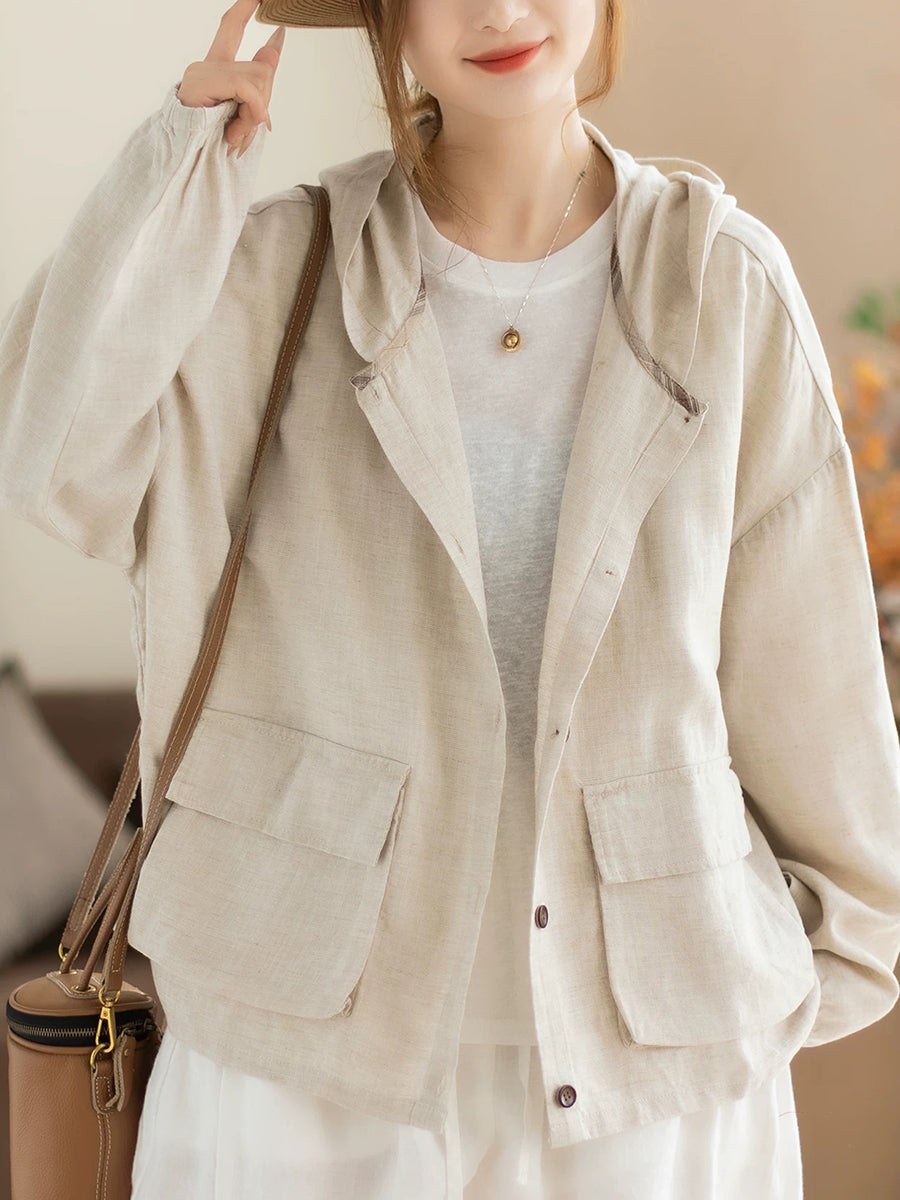 Ženski proljetni ležerni kaput s kapuljačom u čistim bojama
