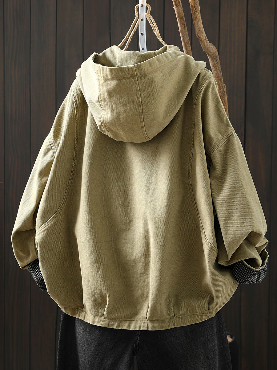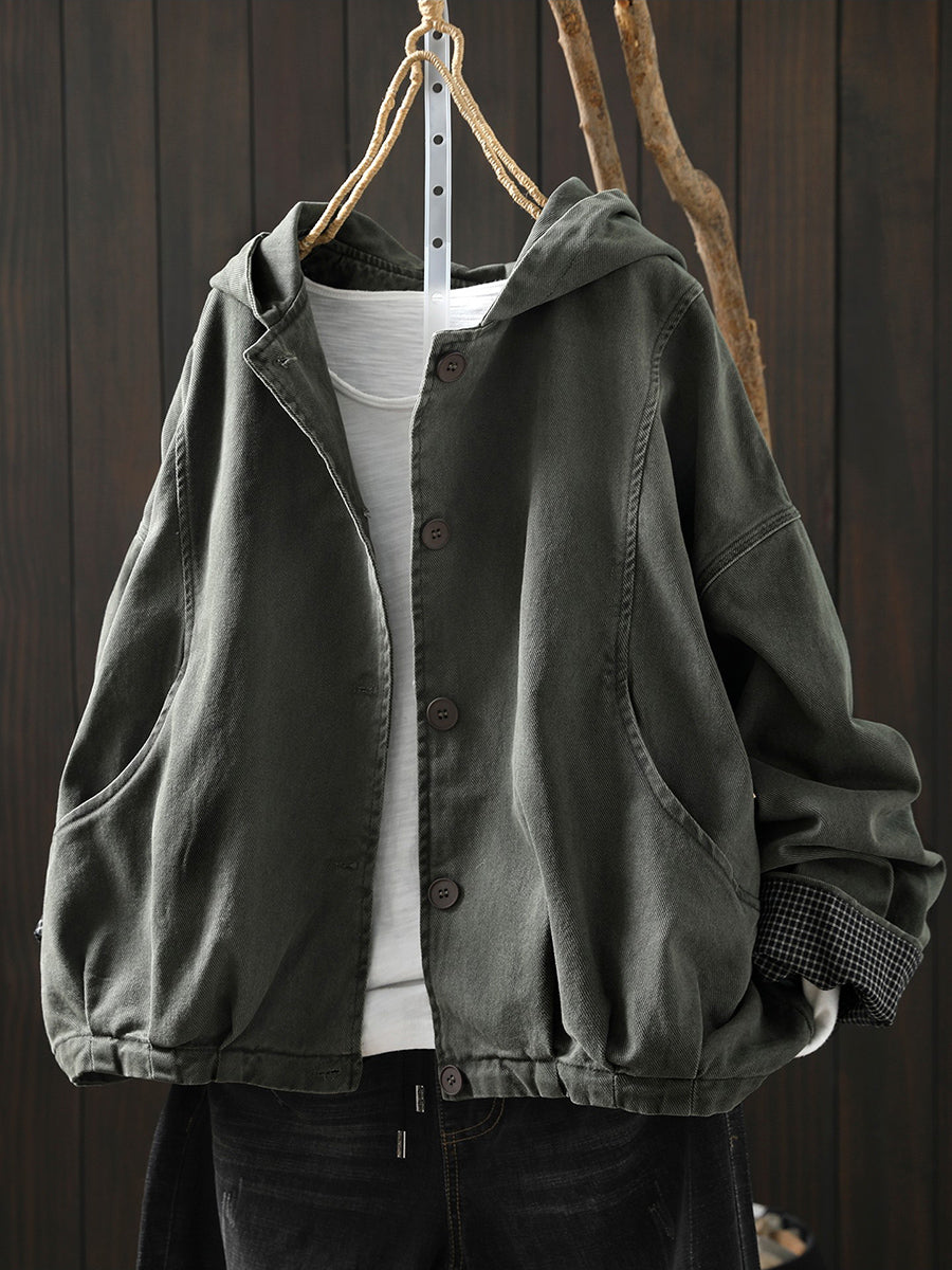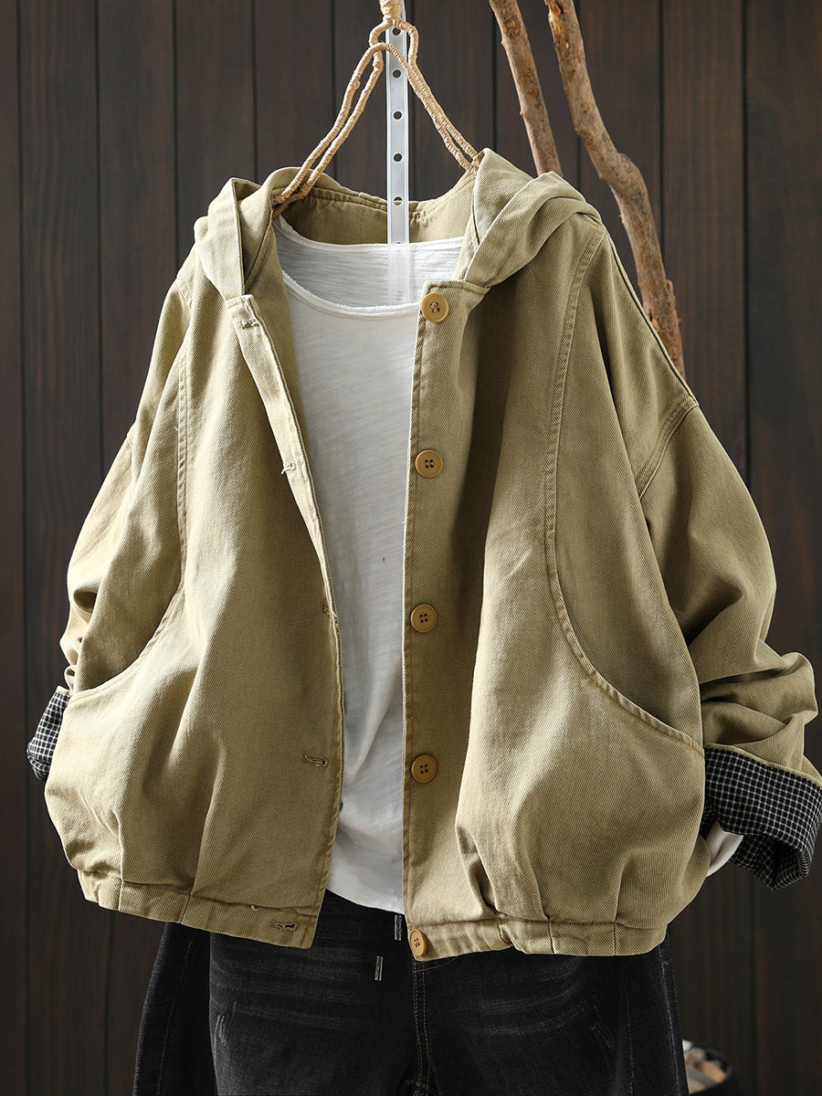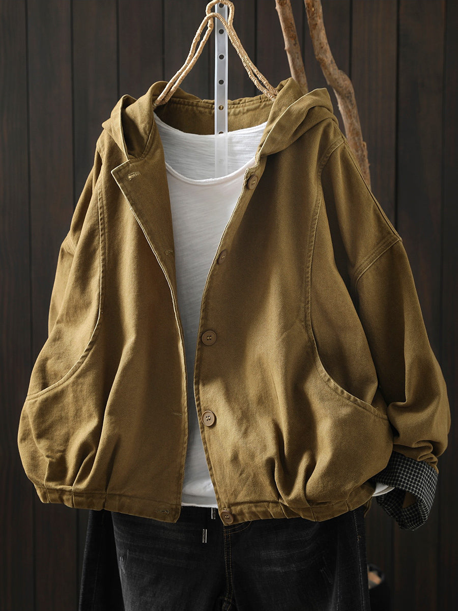 Ženski proljetni ležerni pamučni kaput s kapuljačom u čistoj boji