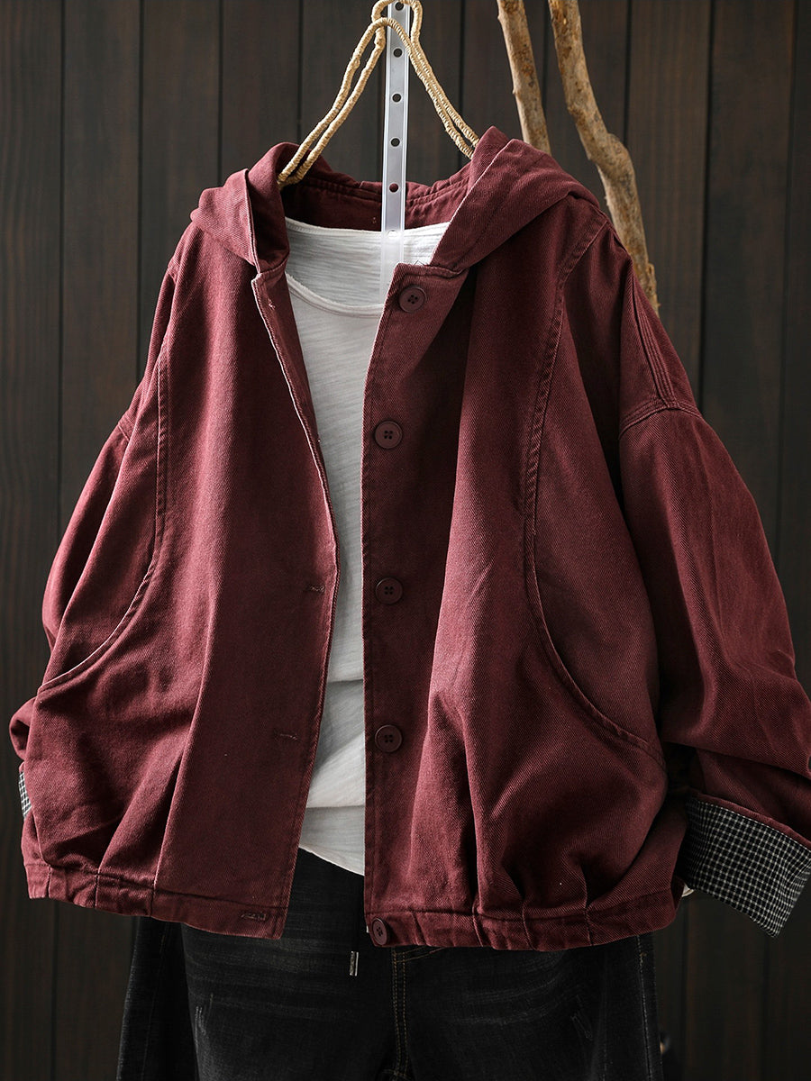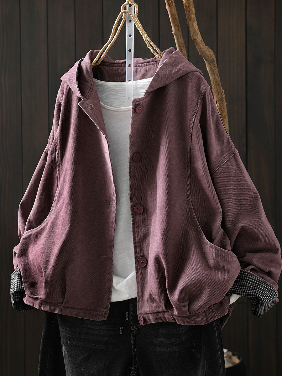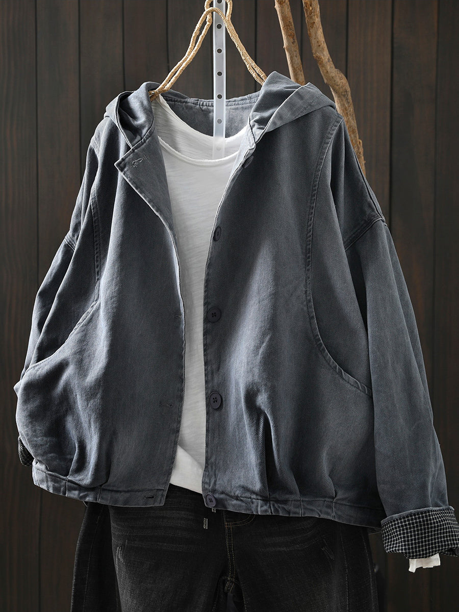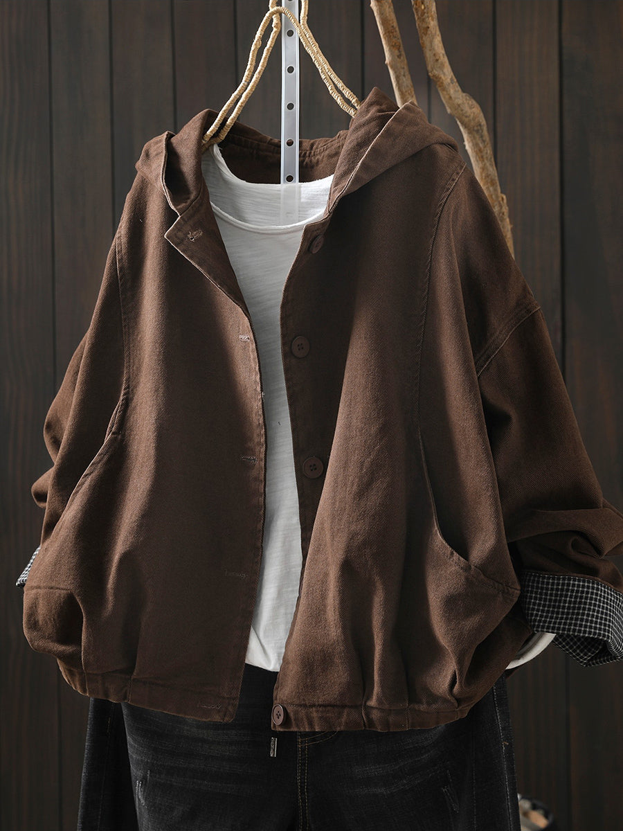 Ženski proljetni ležerni pamučni kaput s kapuljačom u čistoj boji