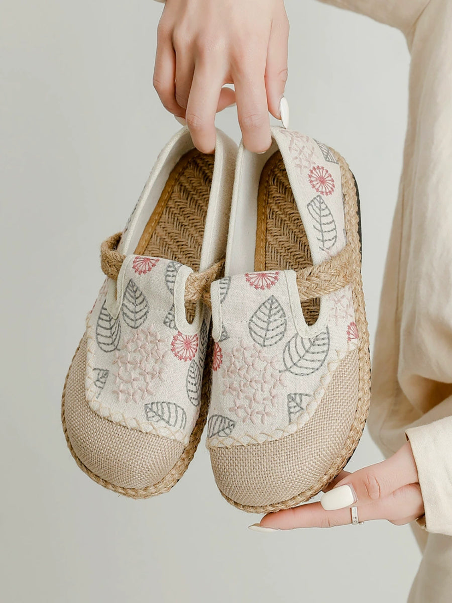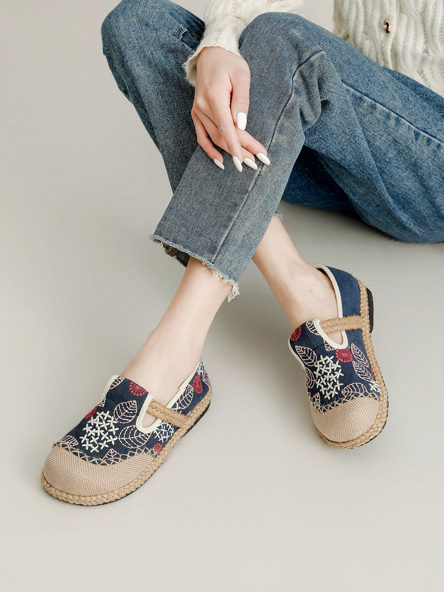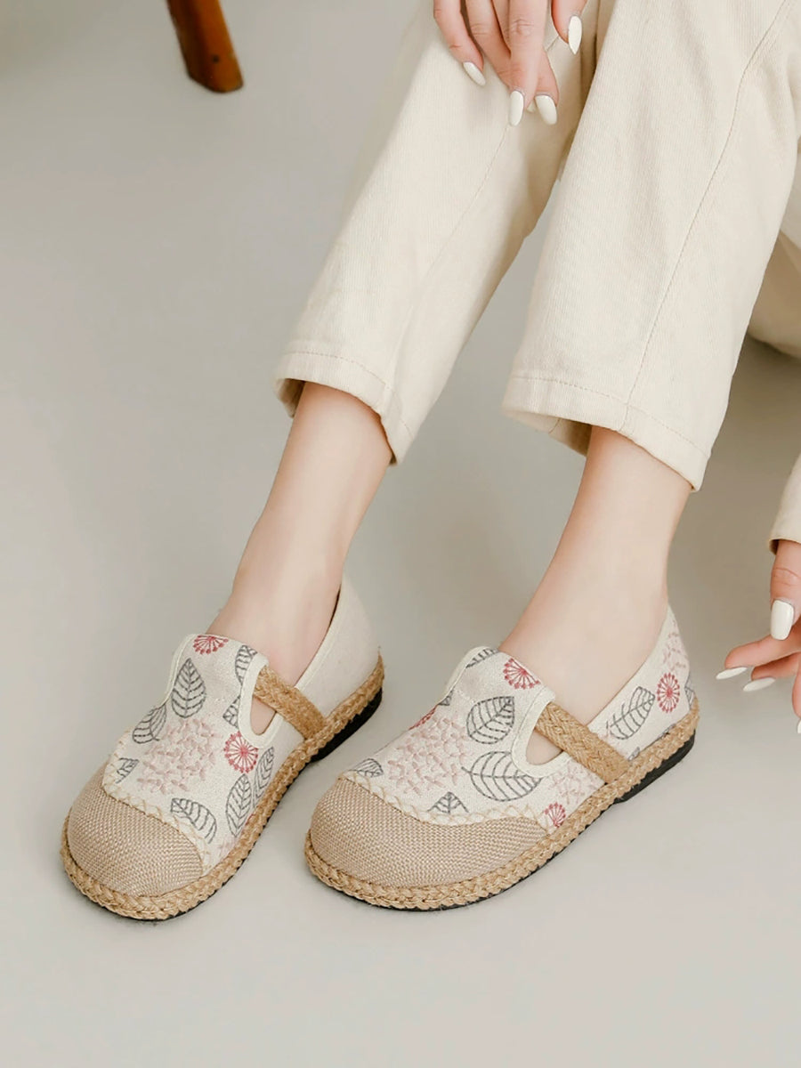 Ženske proljetne ravne cipele od platna s vezom