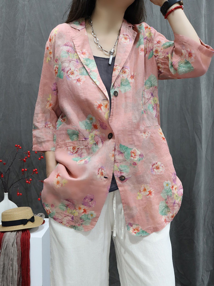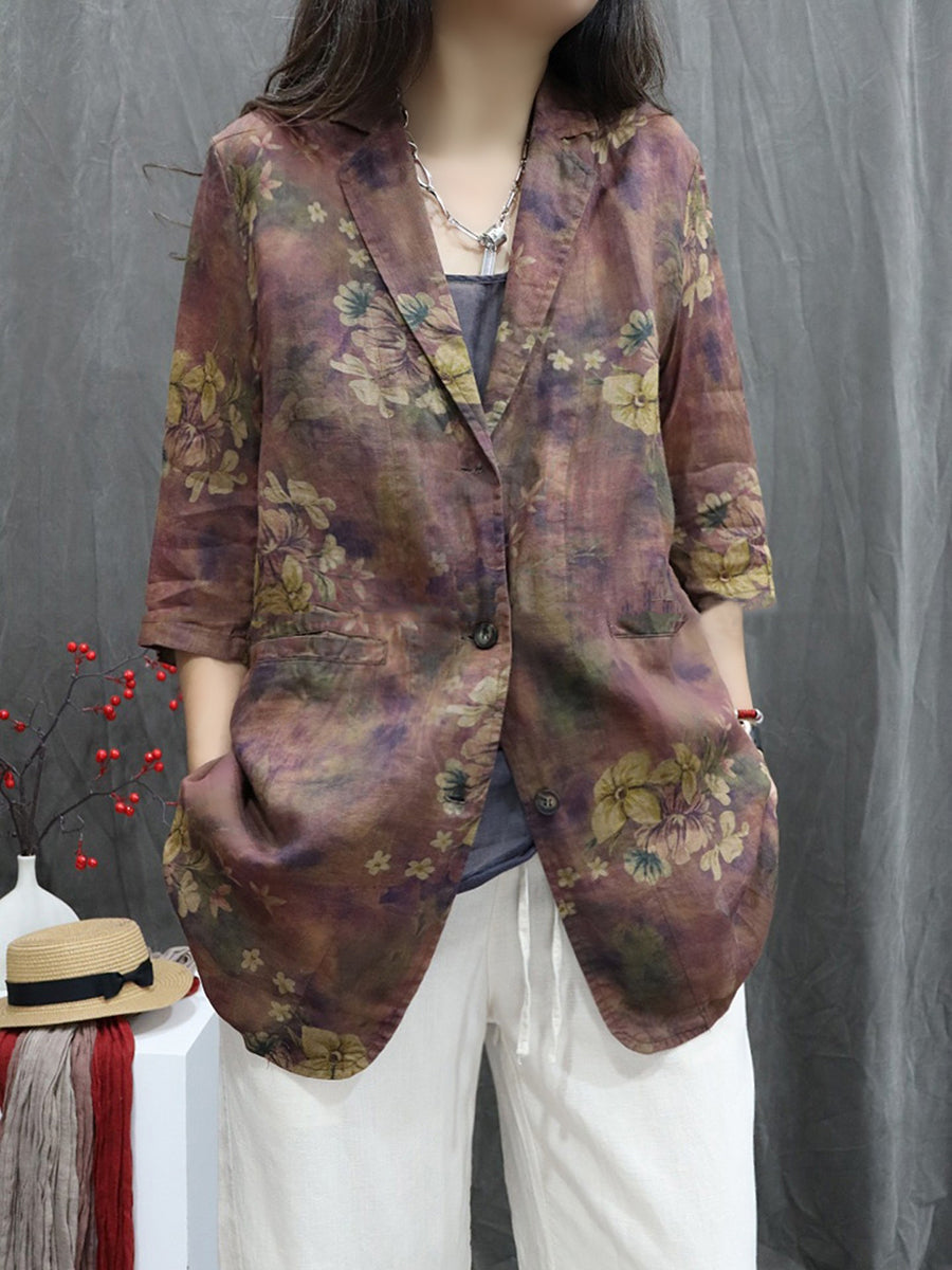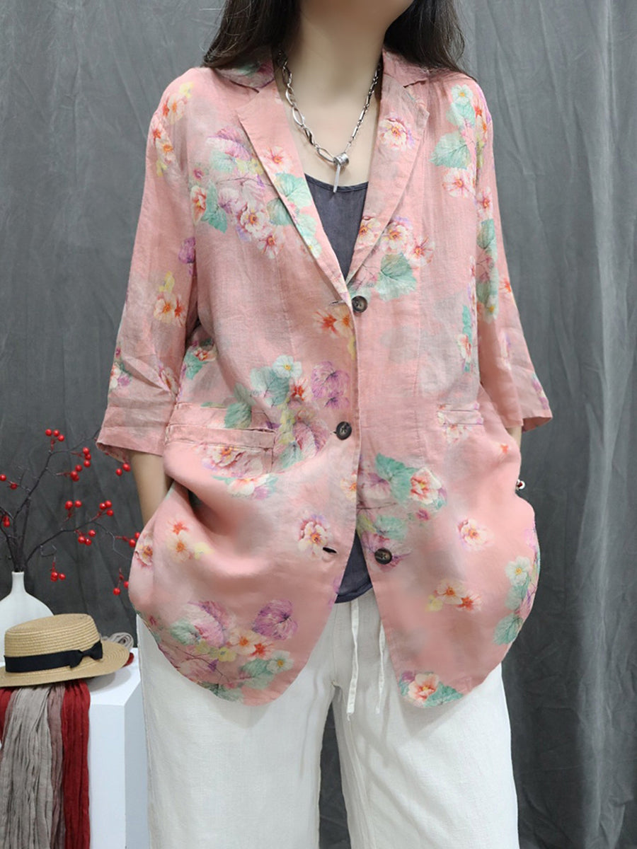 Ženski kaput s ovratnikom i proljetnim cvijećem od 100% ramije