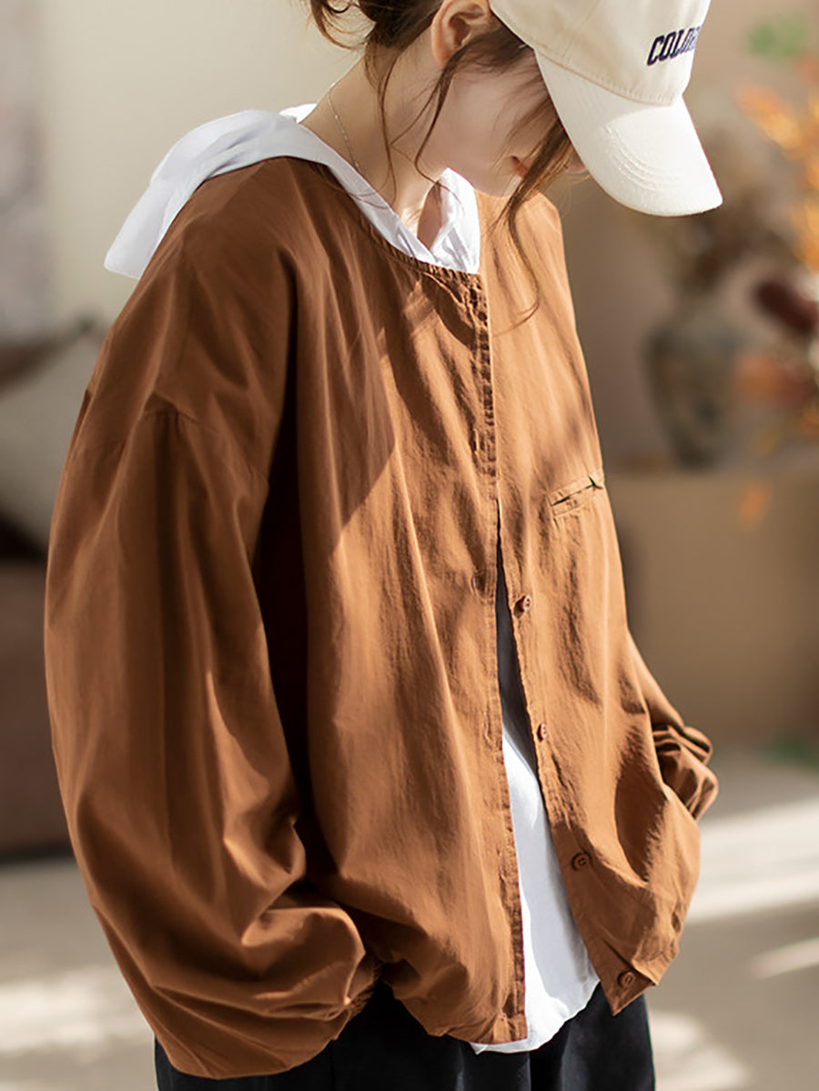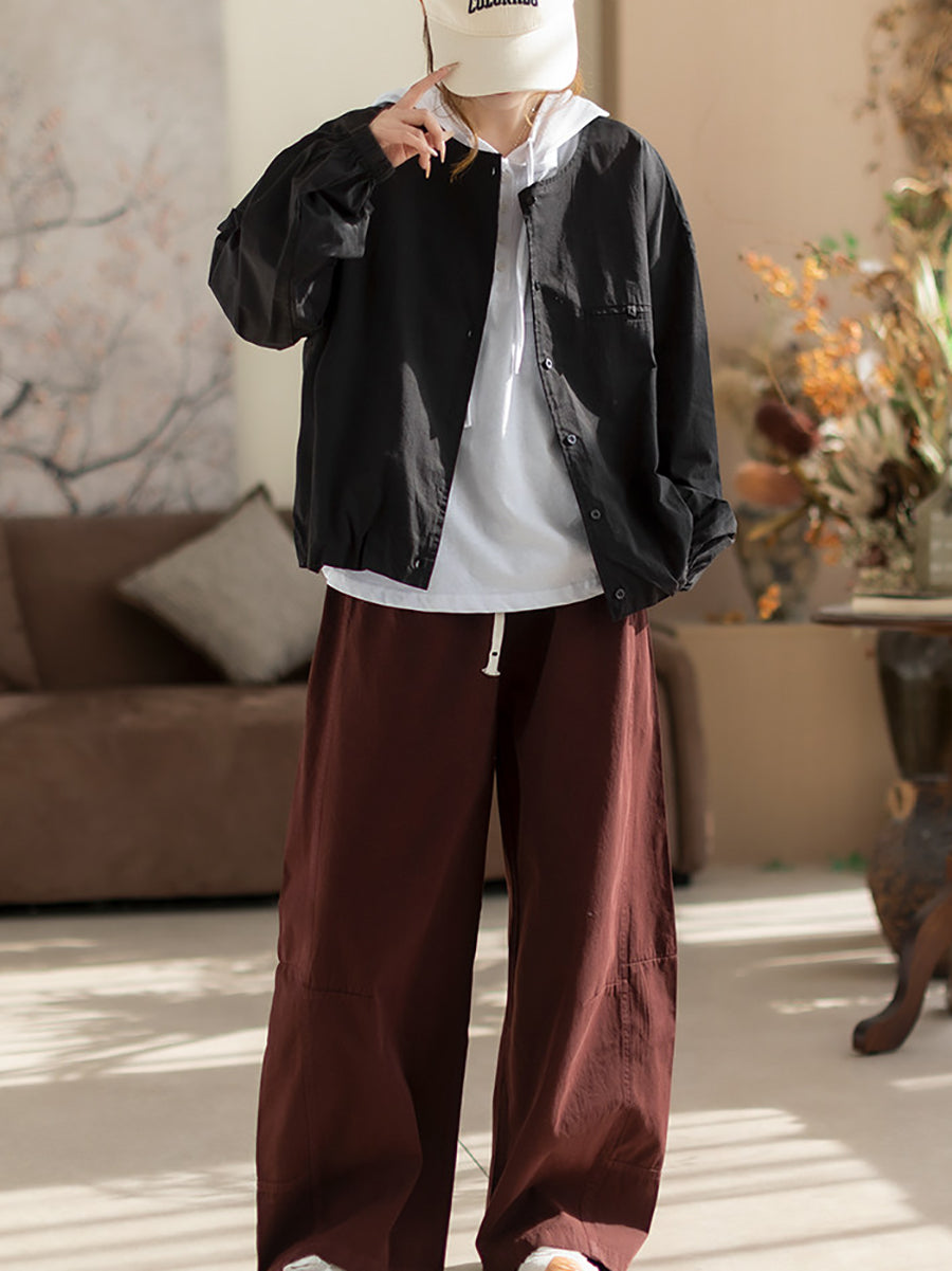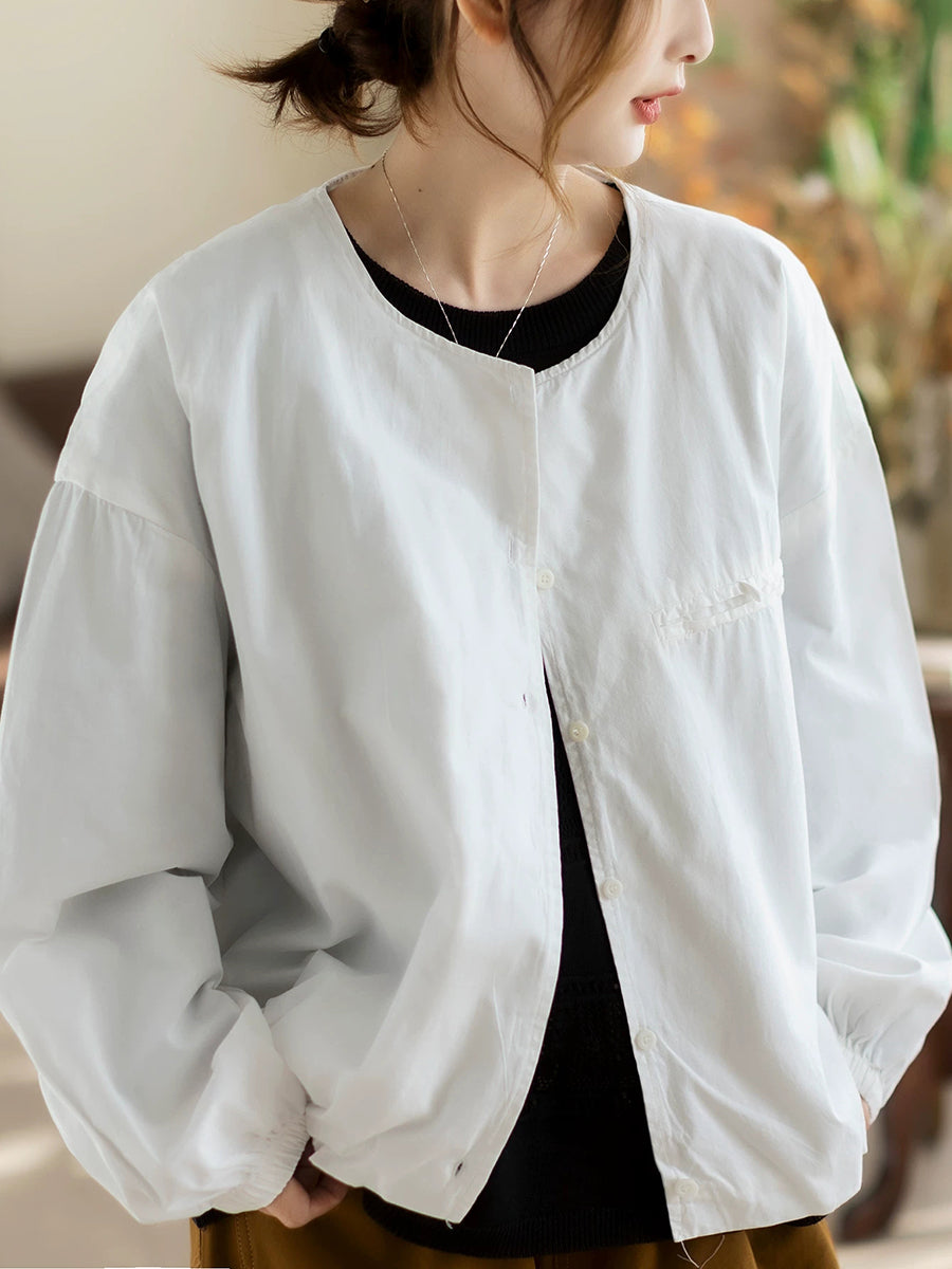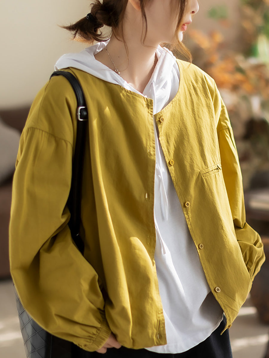 Ženski proljetni kaput od čistog pamuka s O-izrezom