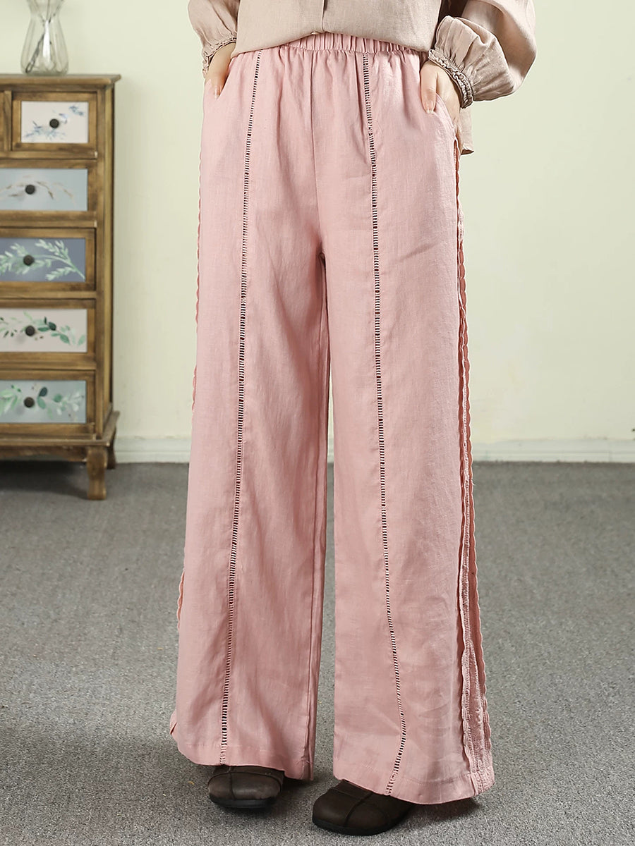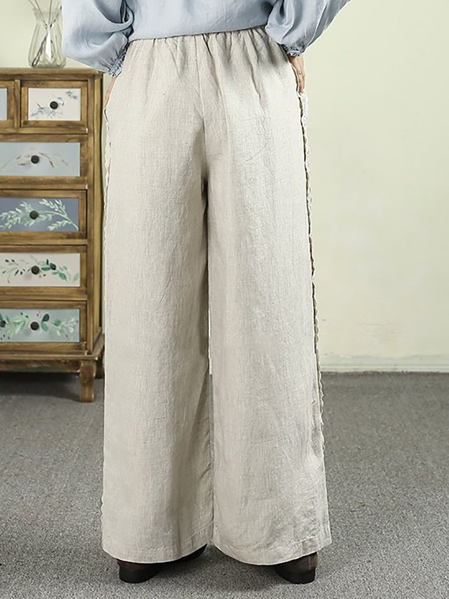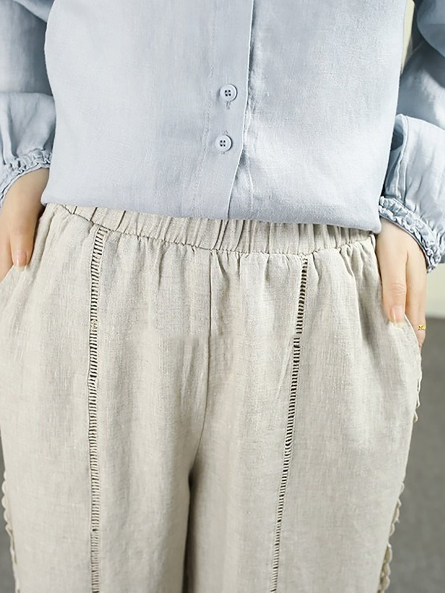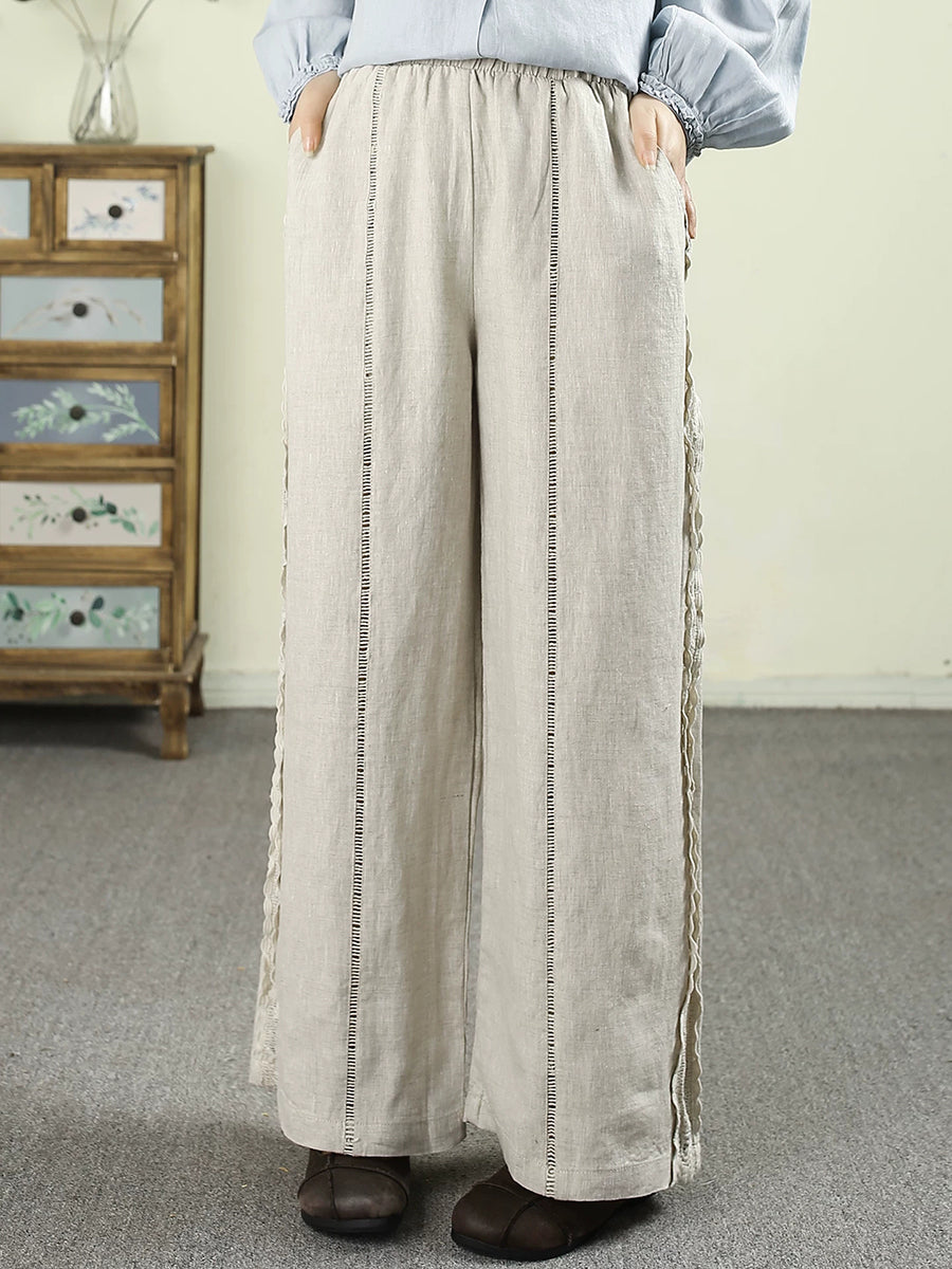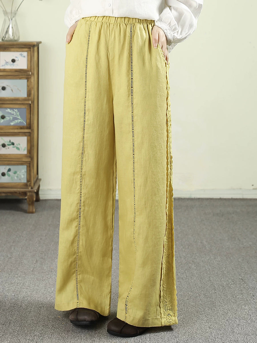 Ženske proljetne ravne hlače od čiste čipke, 100% lan