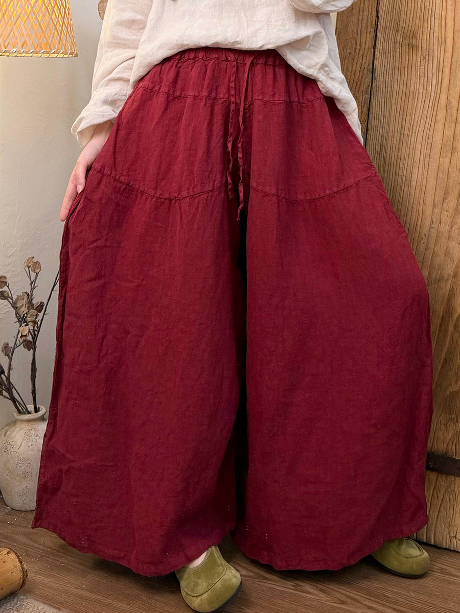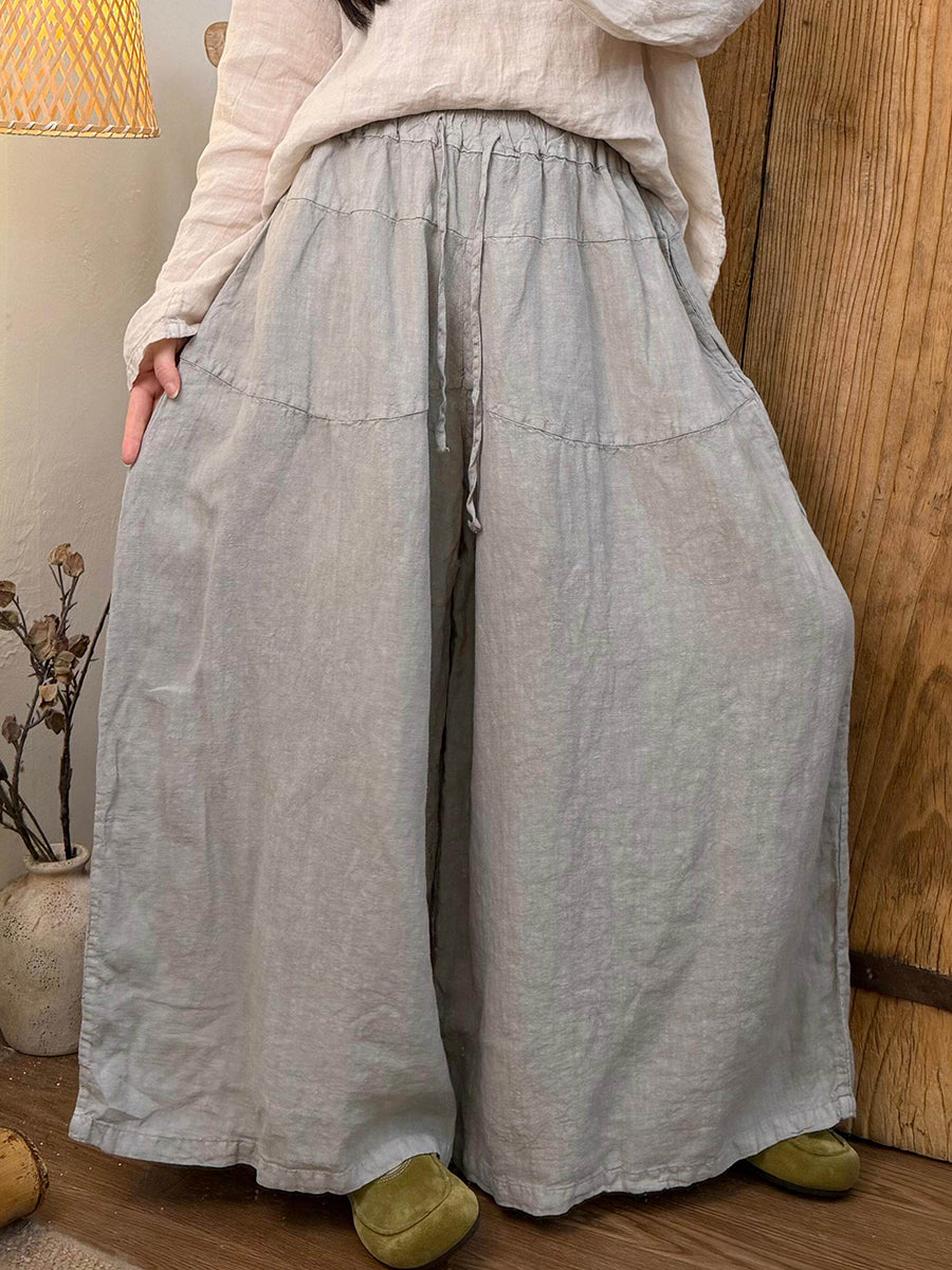 Ženske proljetne hlače od čistog lana širokih nogavica