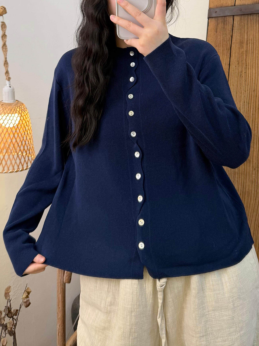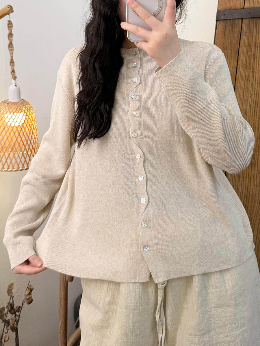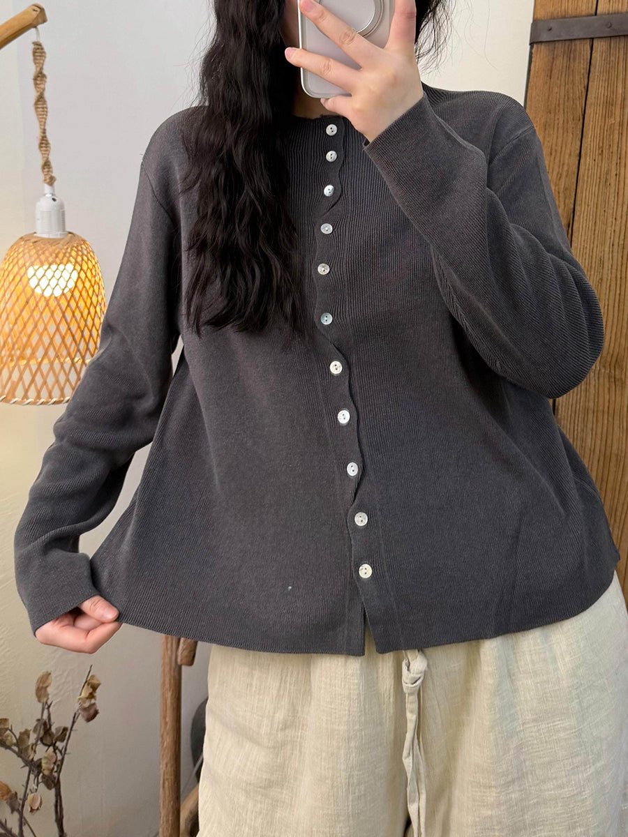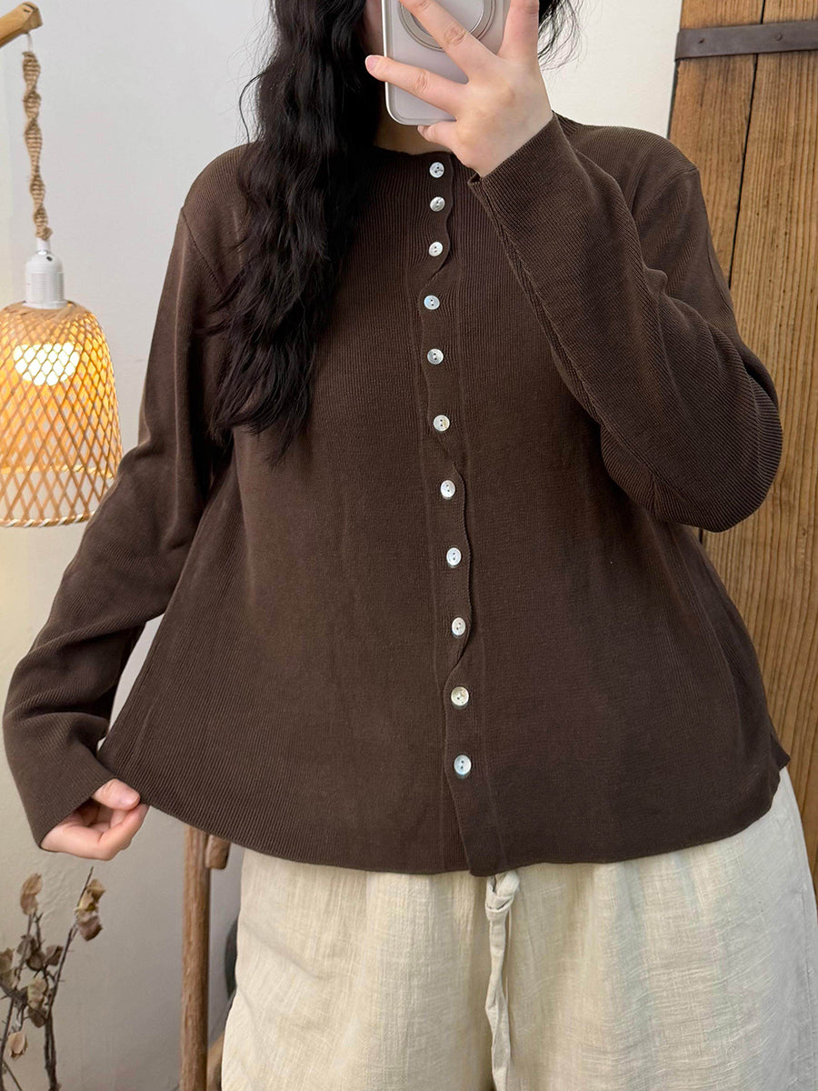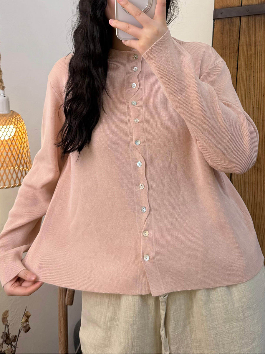 Ženska proljetna pletena košulja s O-izrezom u čistim bojama