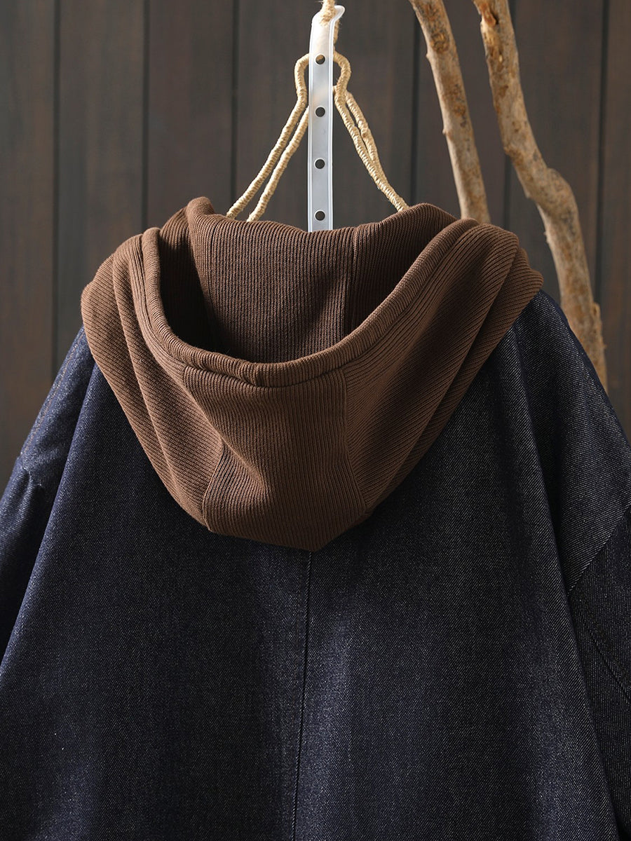 Ženska proljetna retro traper jakna s kapuljačom u boji